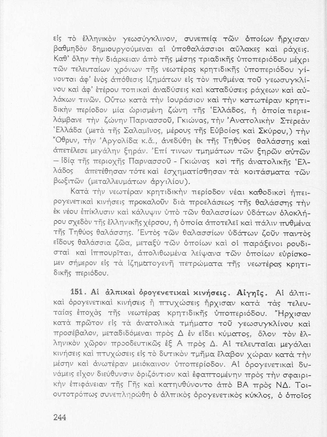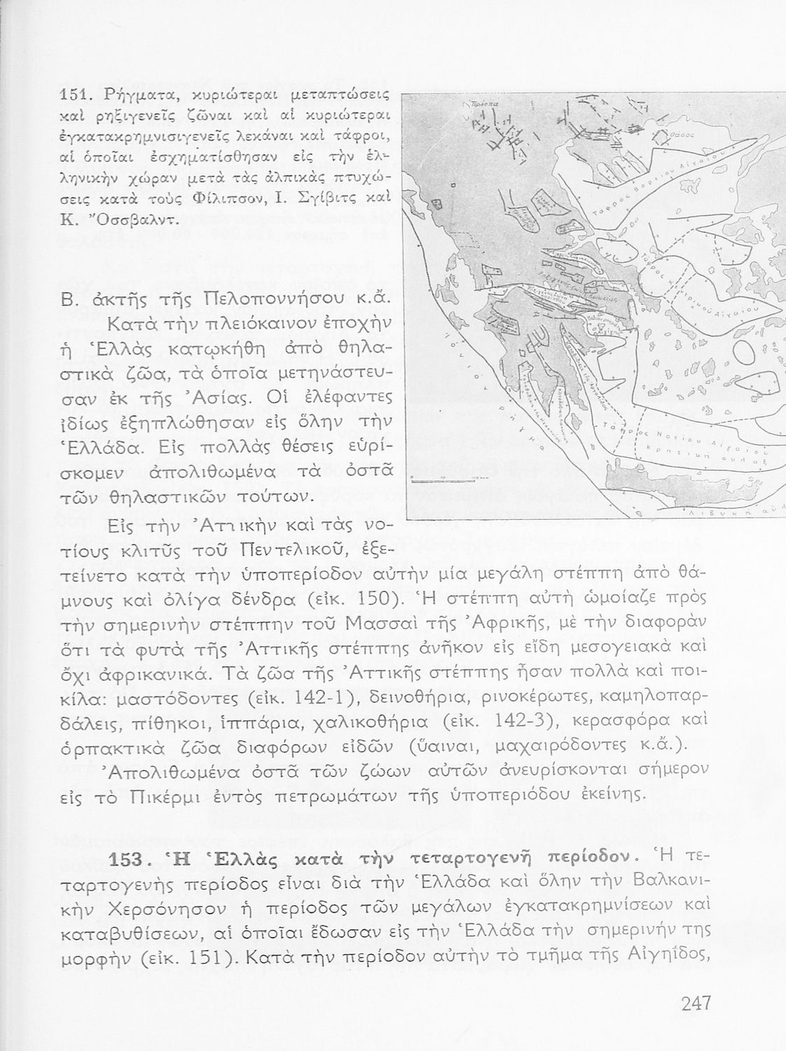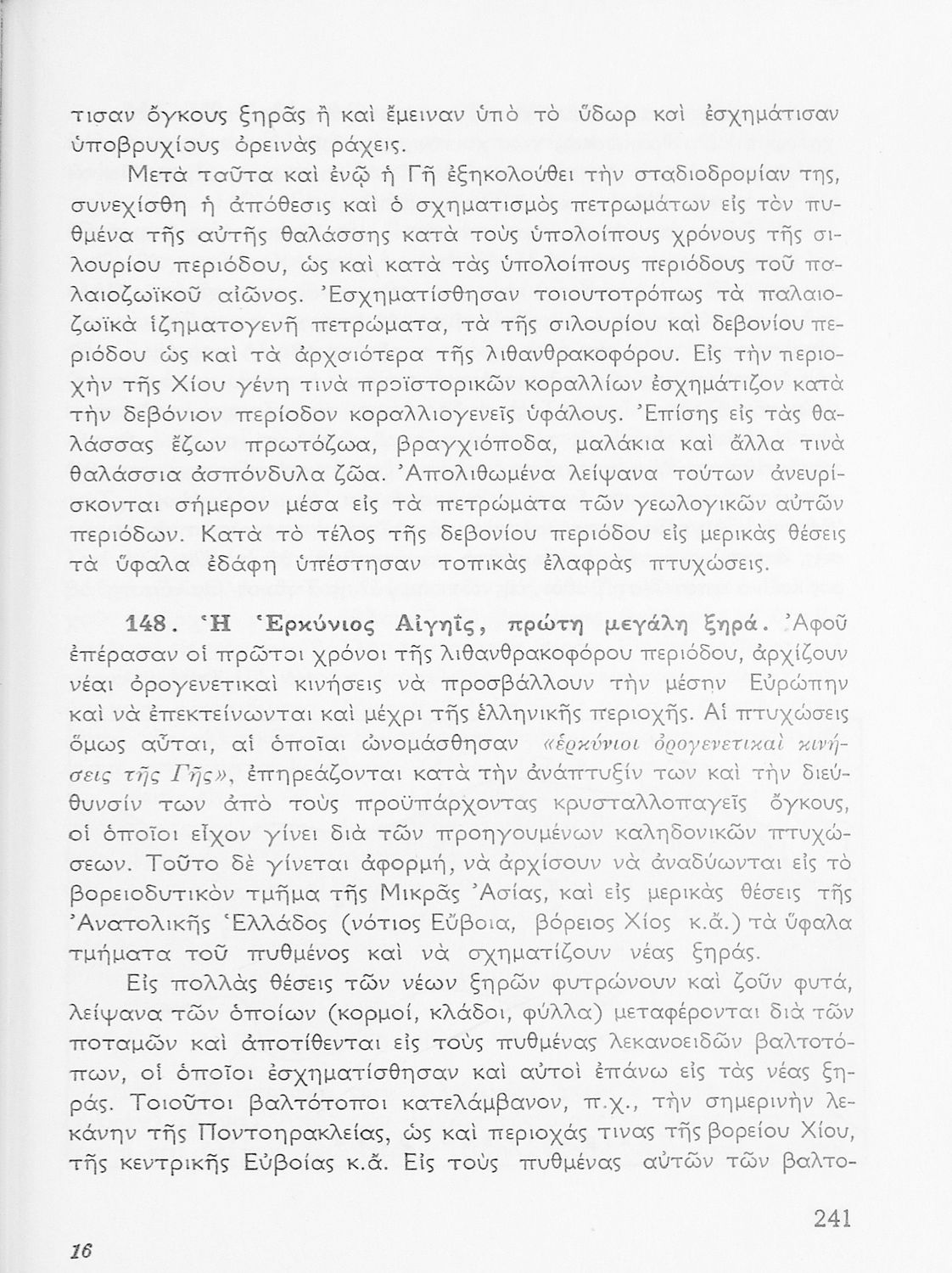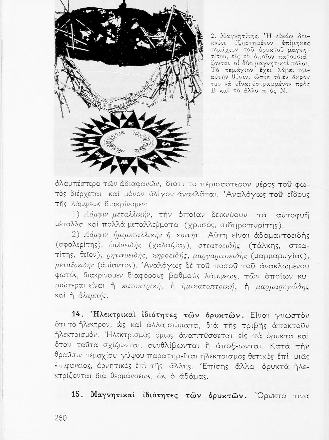 Σχολικό εγχειρίδιο Γεωλογίας/Ορυκτολογίας για την Δ΄ Γυμνασίου που περιλαμβάνει χθονογραφική, δυναμική και ιστορική γεωλογία, και γενική και ειδική ορυκτολογία. Ο συγγραφέας ήταν καθηγητής πανεπιστήμιου και η συγγραφέας φυσικός. Περιέχει παράρτημα με «Στοιχεία Μαθηματικής Γεωγραφίας» από τη γεωγραφία Δ’ τάξης του Αλκίνοου Μάζη (εκδ. 1963).
