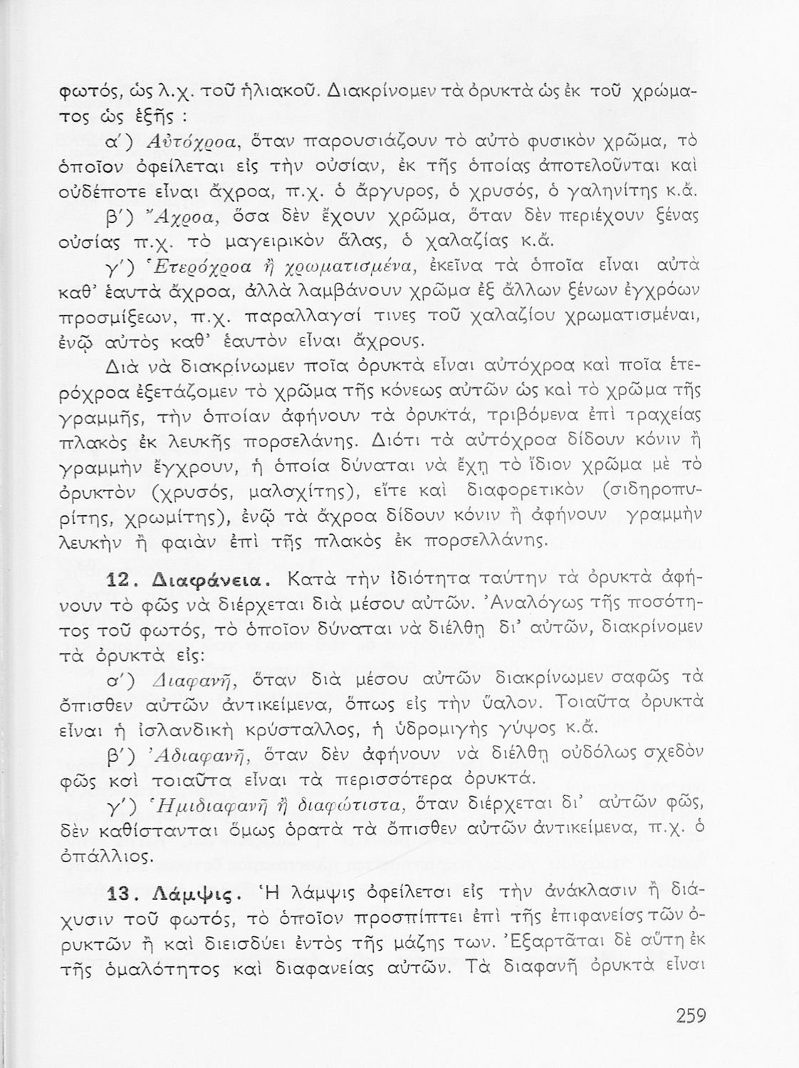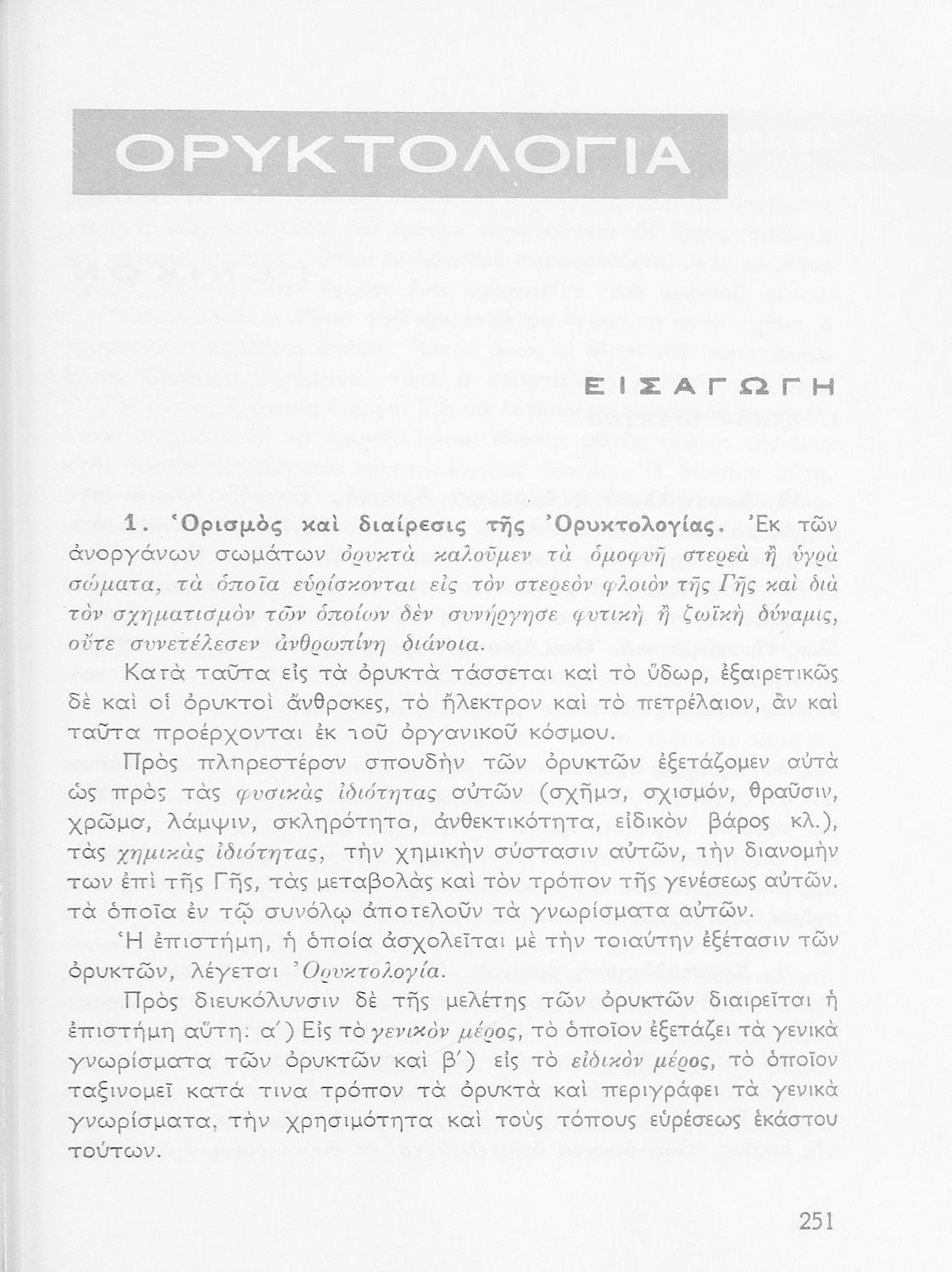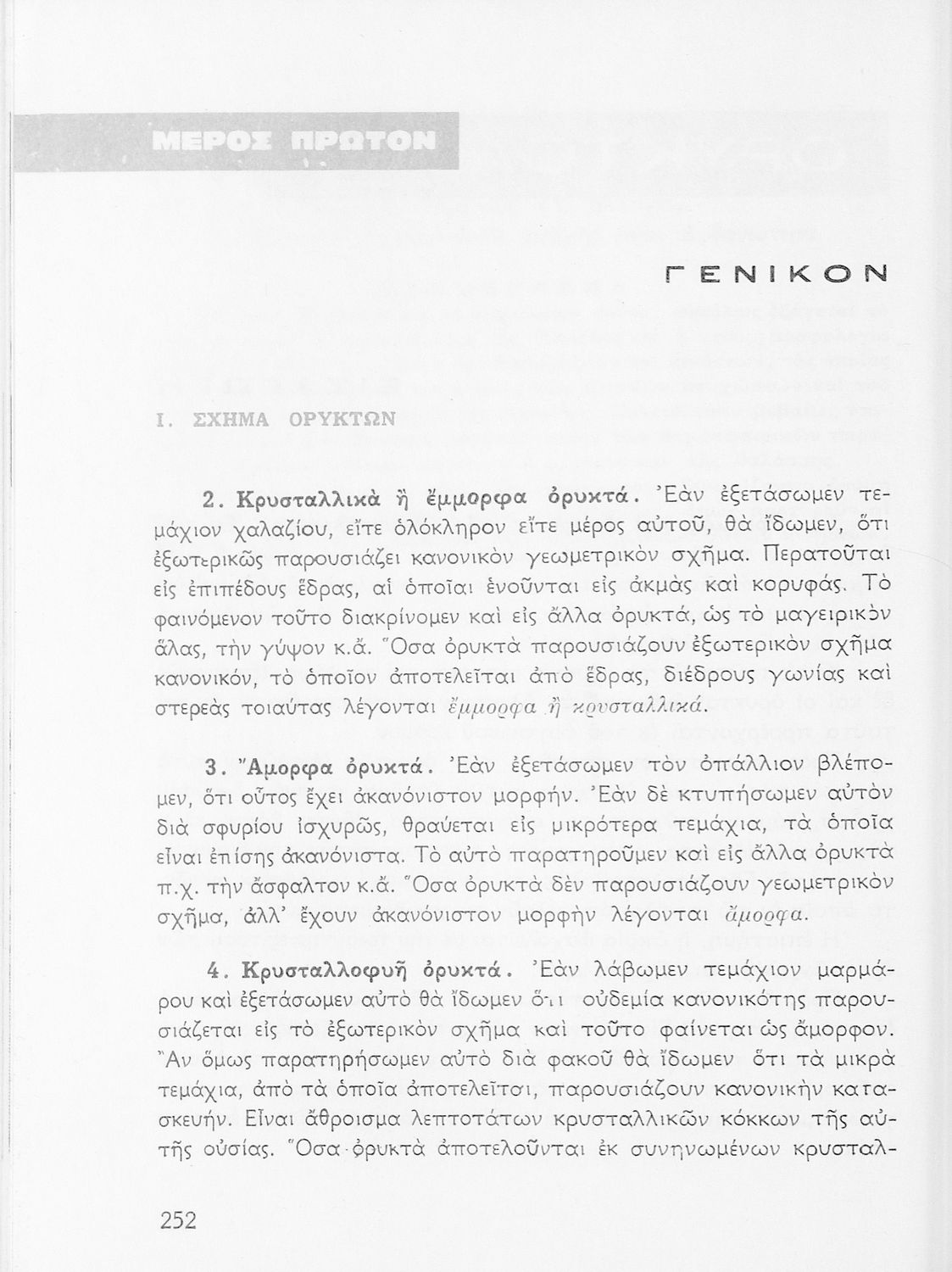 Βιβλίο Γεωλογίας/Ορυκτολογίας για την Δ΄ τάξη των Εξαταξίων Γυμνασίων που παρουσιάζει τα ορυκτά με βάση την κλάση στην οποία ανήκουν. Το τμήμα της γεωλογίας εστιάζει στους γεωλογικούς αιώνες, Ο συγγραφέας ήταν