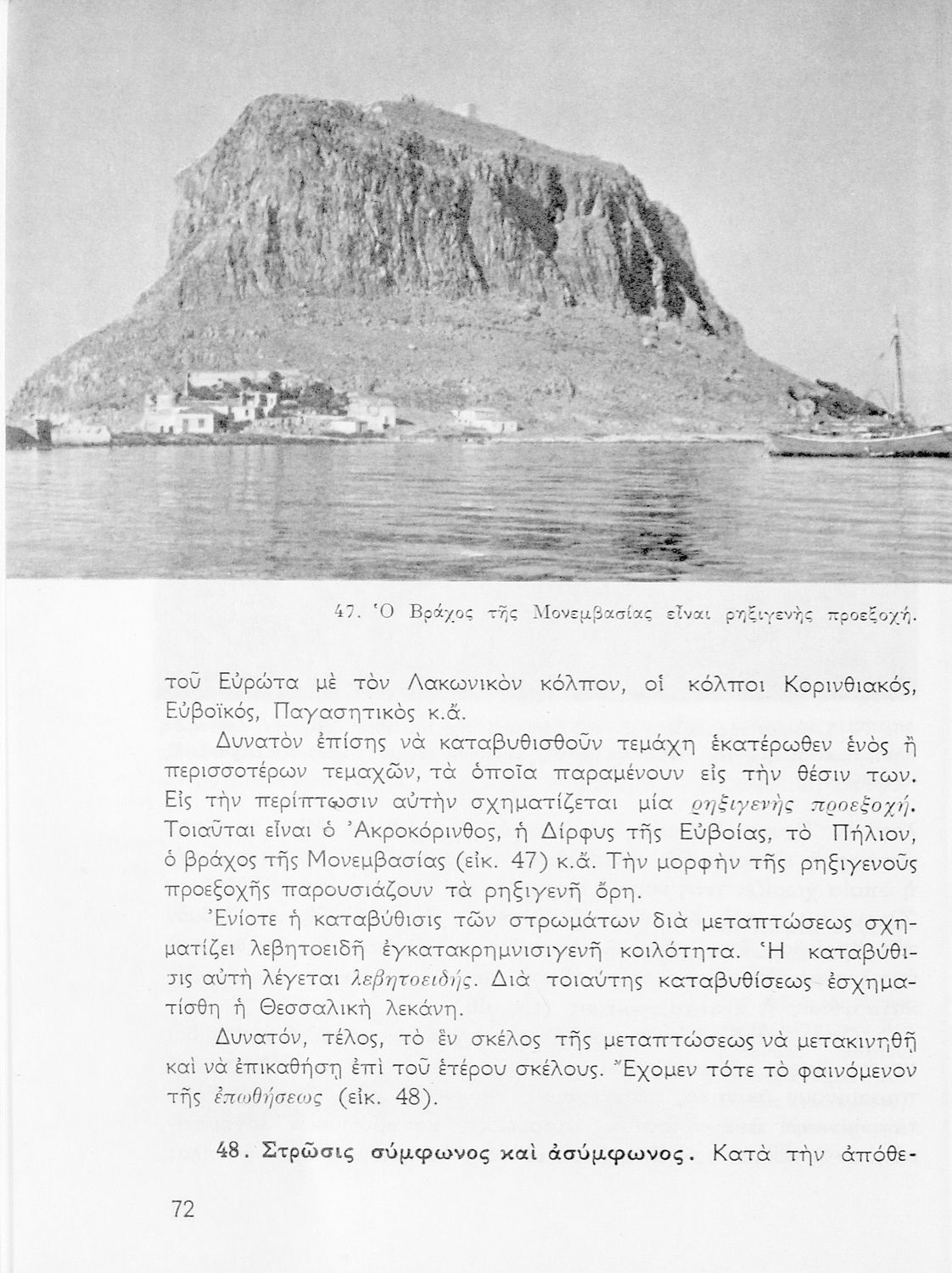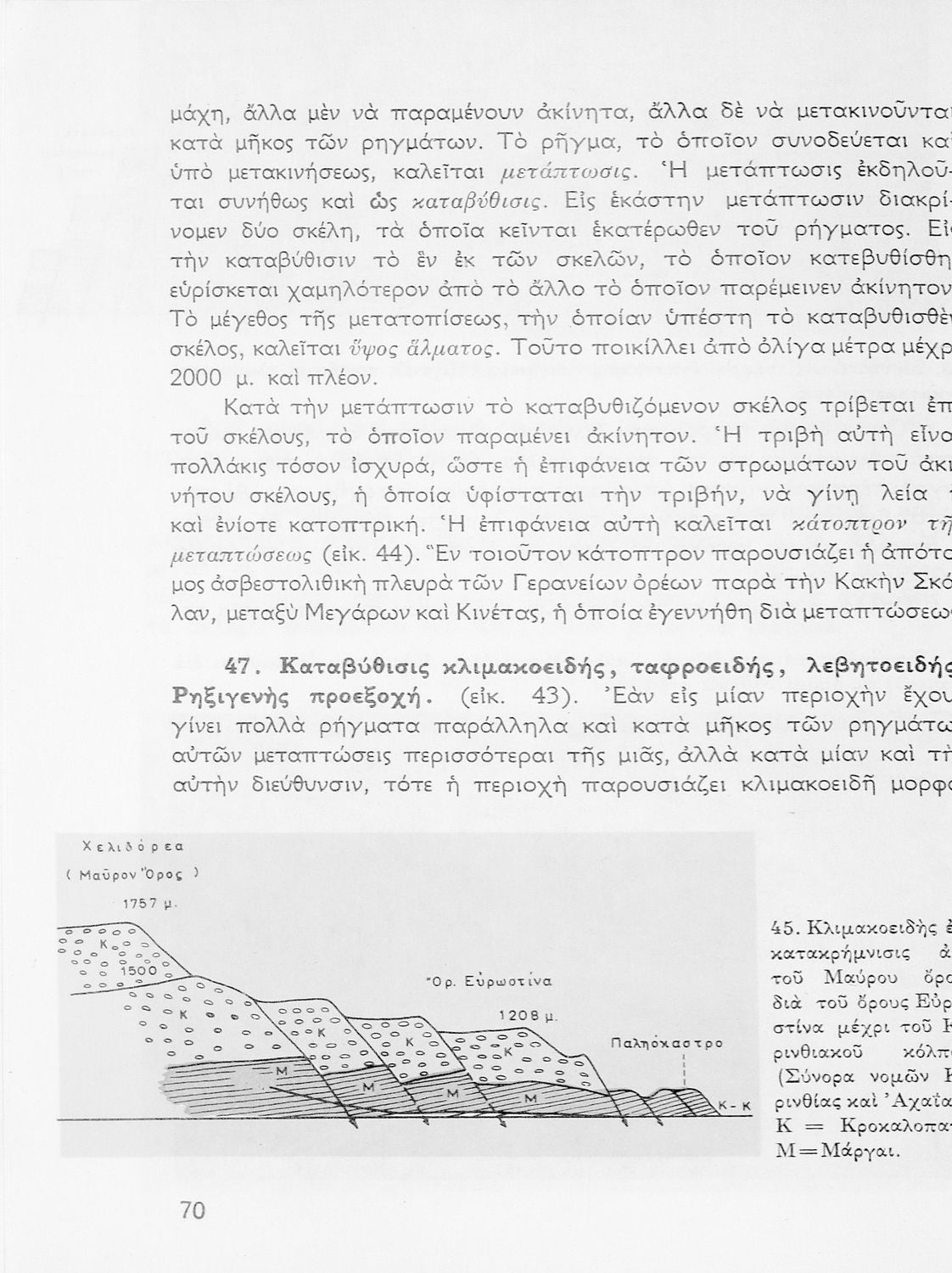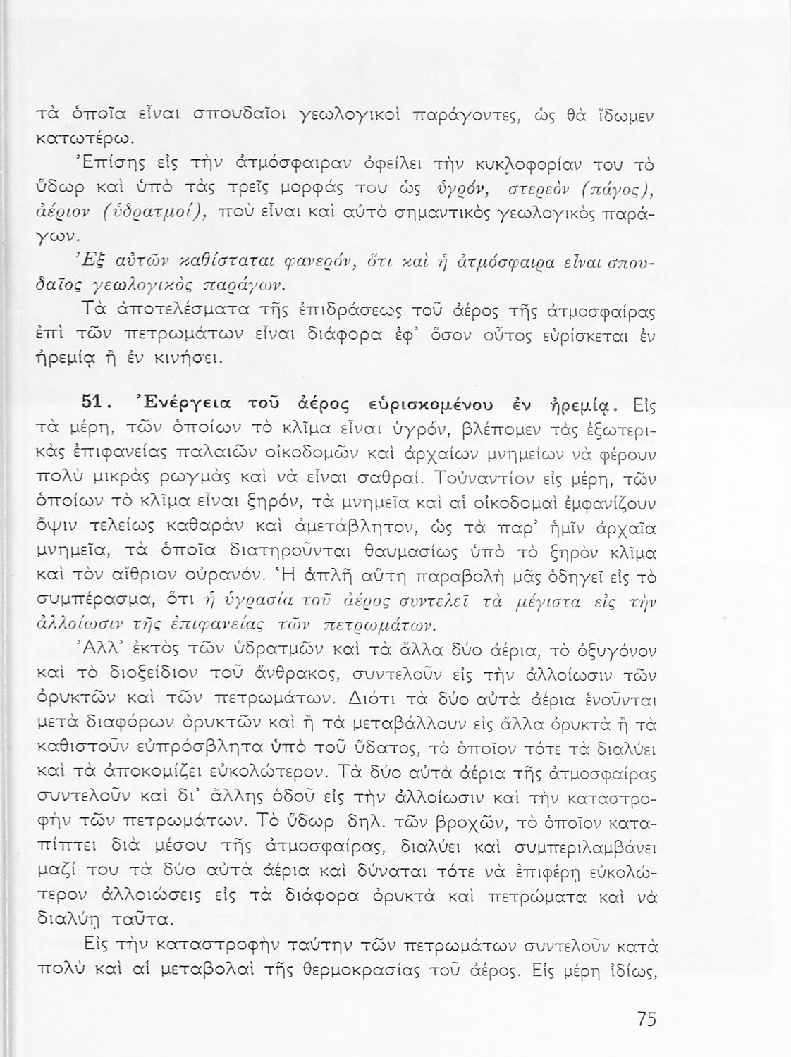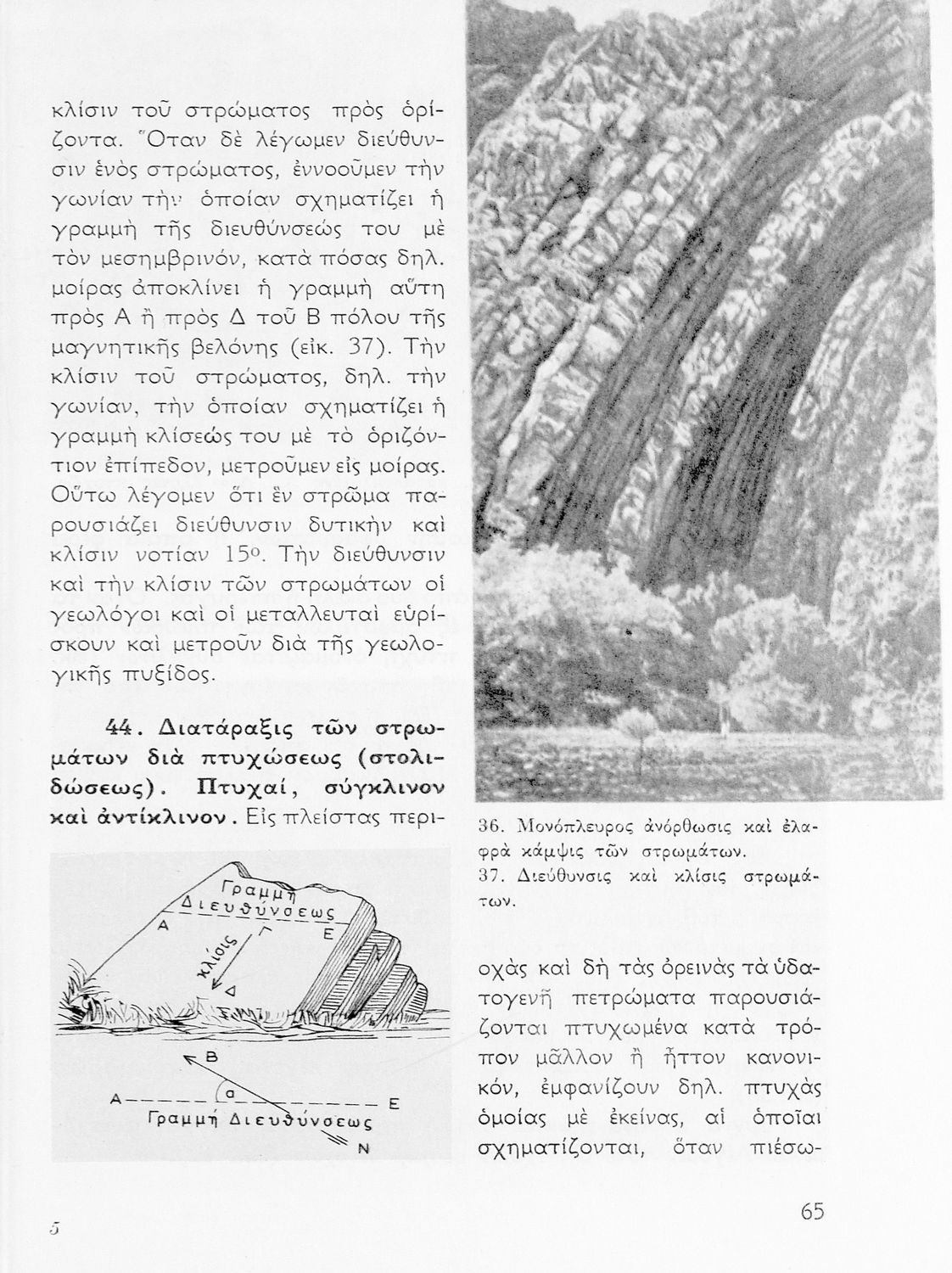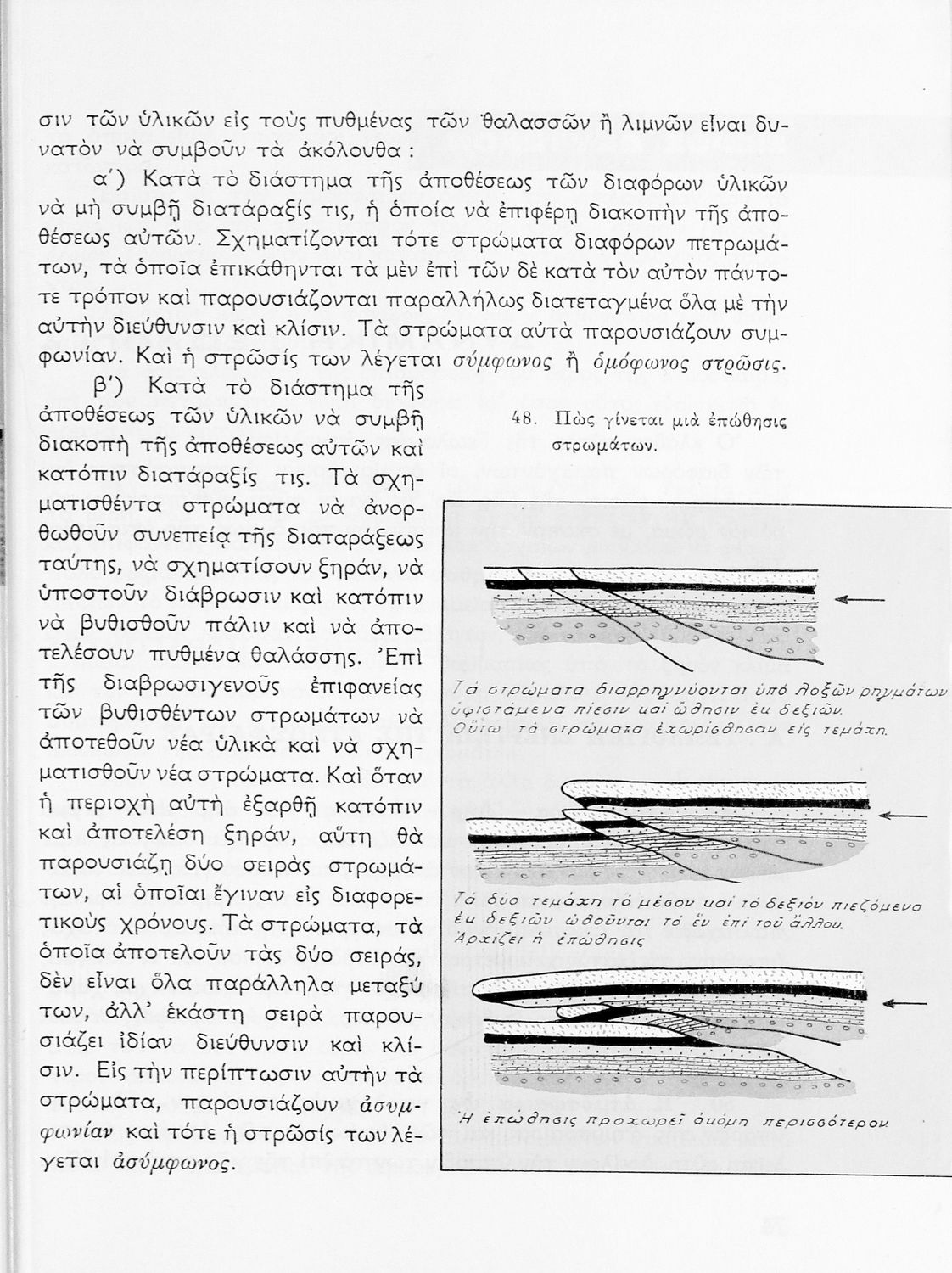 Σχολικό εγχειρίδιο Γεωλογίας/Ορυκτολογίας για την Δ΄ Γυμνασίου που περιλαμβάνει χθονογραφική, δυναμική και ιστορική γεωλογία, και γενική και ειδική ορυκτολογία. Ο συγγραφέας ήταν καθηγητής πανεπιστήμιου και η συγγραφέας φυσικός. Περιέχει παράρτημα με «Στοιχεία Μαθηματικής Γεωγραφίας» από τη γεωγραφία Δ’ τάξης του Αλκίνοου Μάζη (εκδ. 1963).