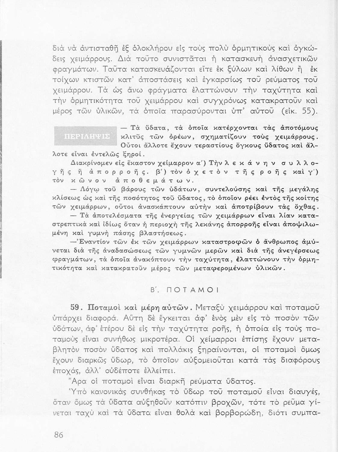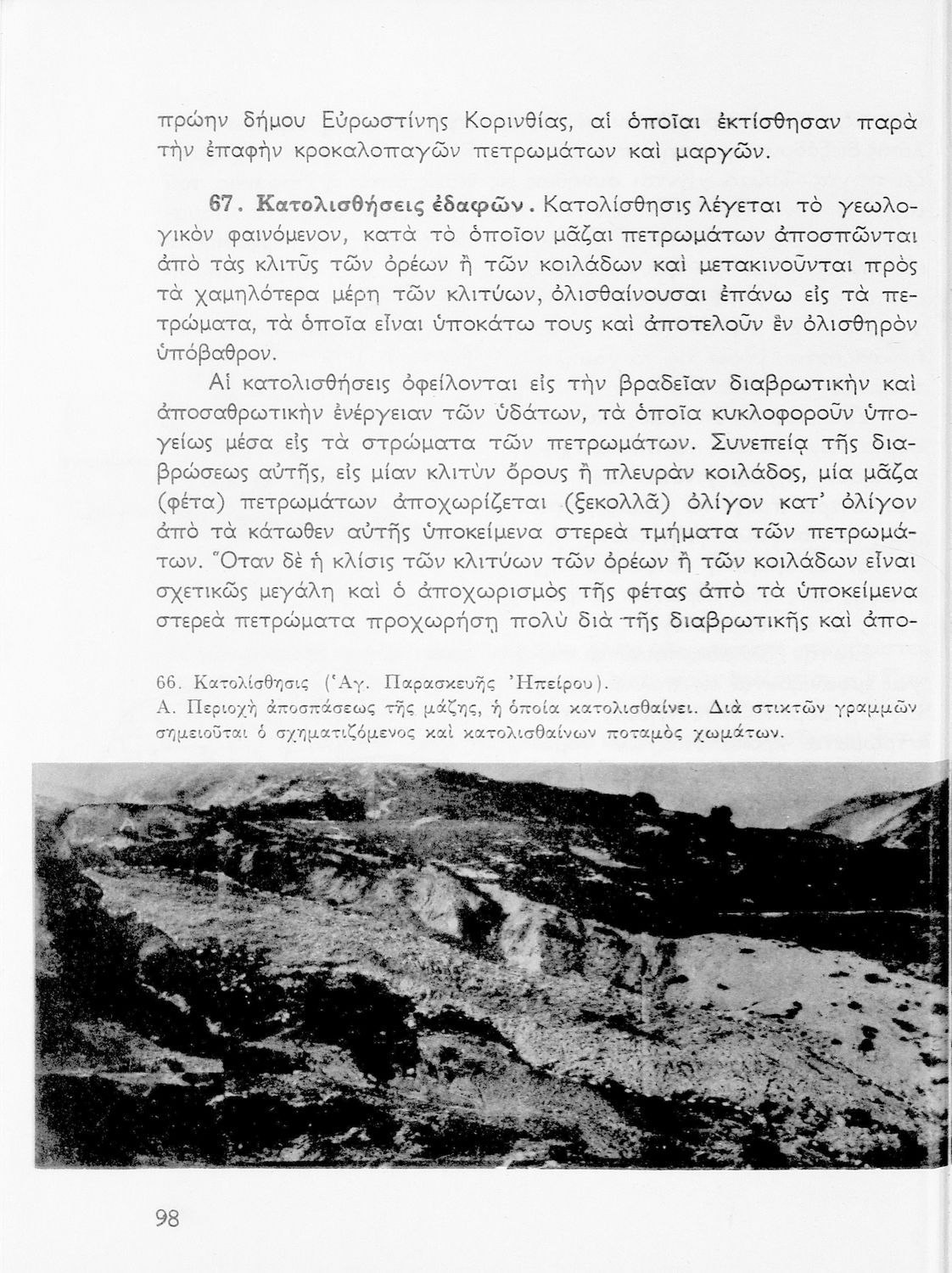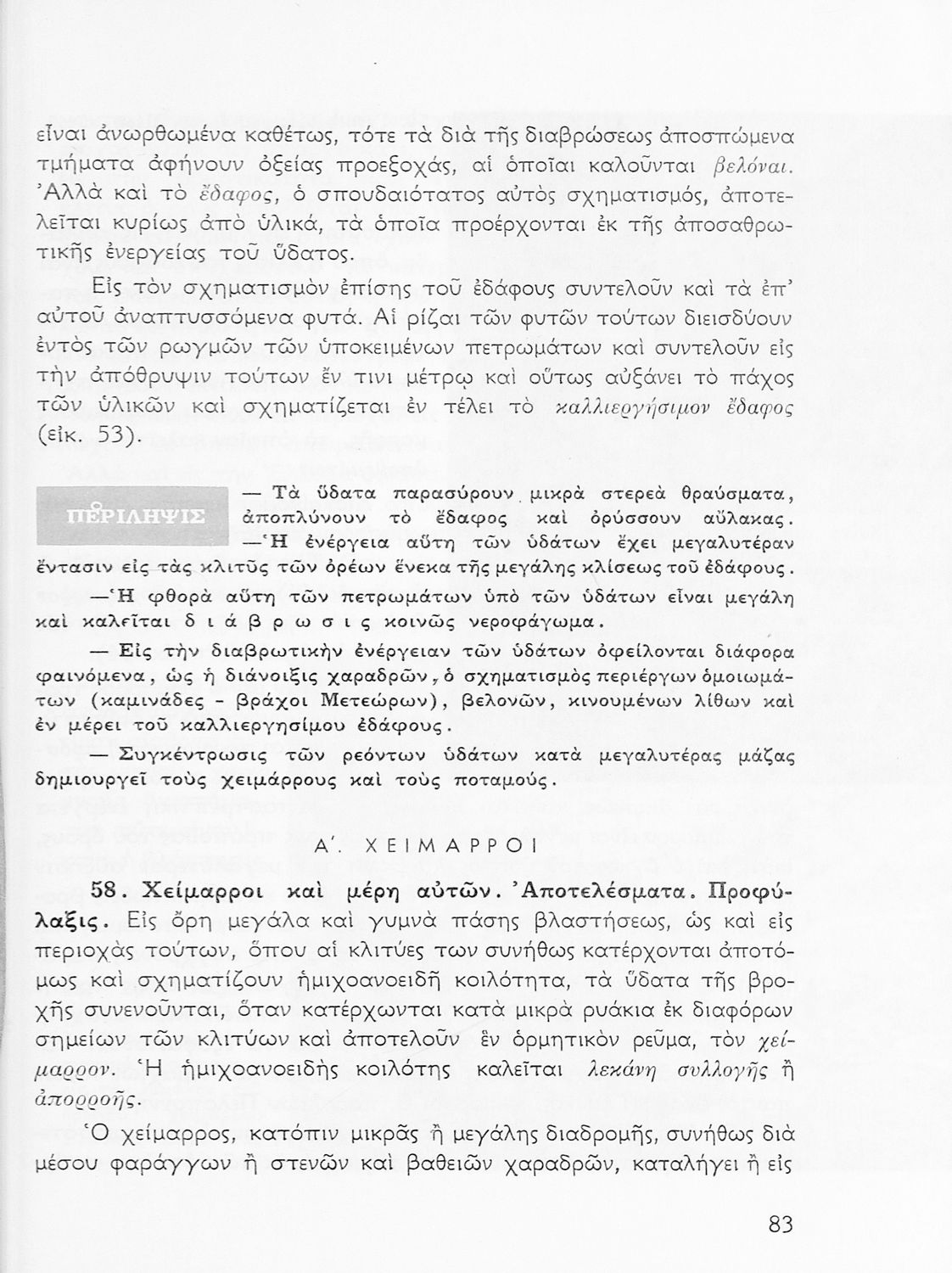 Σχολικό εγχειρίδιο Γεωλογίας/Ορυκτολογίας για την Δ΄ Γυμνασίου που περιλαμβάνει χθονογραφική, δυναμική και ιστορική γεωλογία, και γενική και ειδική ορυκτολογία. Ο συγγραφέας ήταν καθηγητής πανεπιστήμιου και η συγγραφέας φυσικός. Περιέχει παράρτημα με «Στοιχεία Μαθηματικής Γεωγραφίας» από τη γεωγραφία Δ’ τάξης του Αλκίνοου Μάζη (εκδ. 1963).