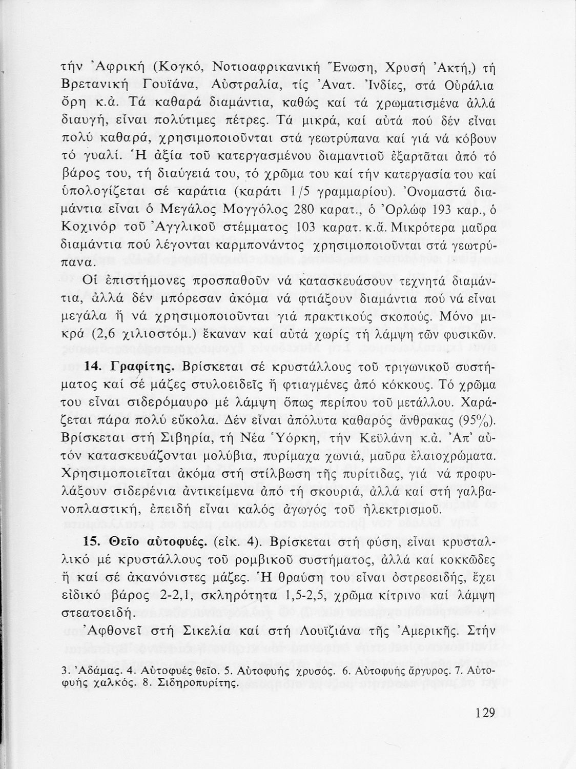 Σχολικό εγχειρίδιο Γεωλογίας/Ορυκτολογίας για την Α΄ Λυκείου που περιλαμβάνει χθονογραφική, δυναμική και ιστορική γεωλογία, και γενική και ειδική ορυκτολογία. Ο συγγραφέας ήταν καθηγητής πανεπιστημίου και η συγγραφέας φυσικός.