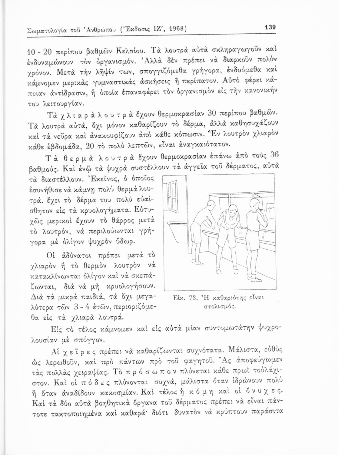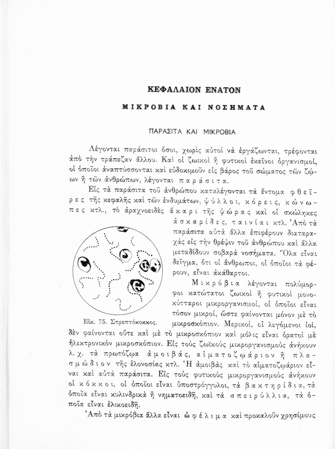 Βαθμίδα εκπαίδευσης: Δευτεροβάθμια Μάθημα: Ανθρωπολογία Γλώσσα: Απλή καθαρεύουσα Παρουσίαση περιεχομένου: Σχολικό εγχειρίδιο Ανθρωπολογίας που εστιάζει στην ανατομία και φυσιολογία του ανθρώπινου σώματος καθώς και στα μικρόβια και νοσήματα. |