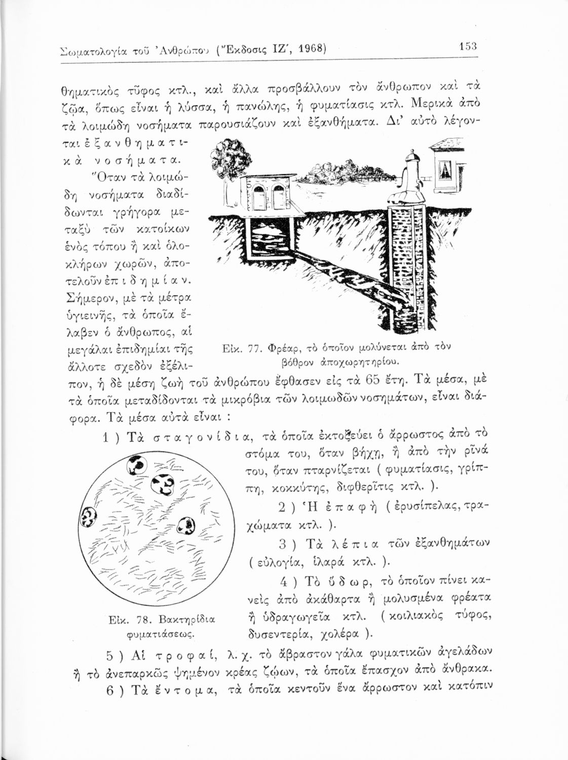 Σχολικό εγχειρίδιο Ανθρωπολογίας που εστιάζει στην ανατομία και φυσιολογία του ανθρώπινου σώματος καθώς και στα μικρόβια και νοσήματα.