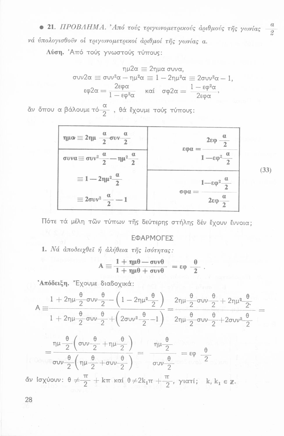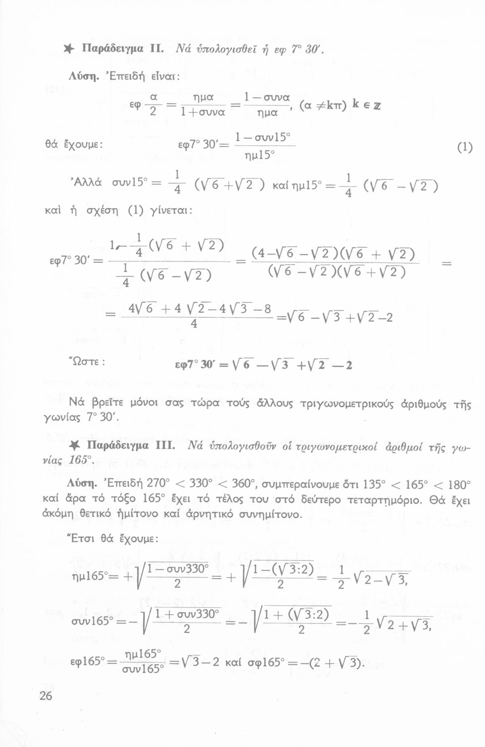 Μαθητικό βοήθημα Τριγωνομετρίας Γυμνασίου και Λυκείου που περιέχει τις λύσεις ασκήσεων.