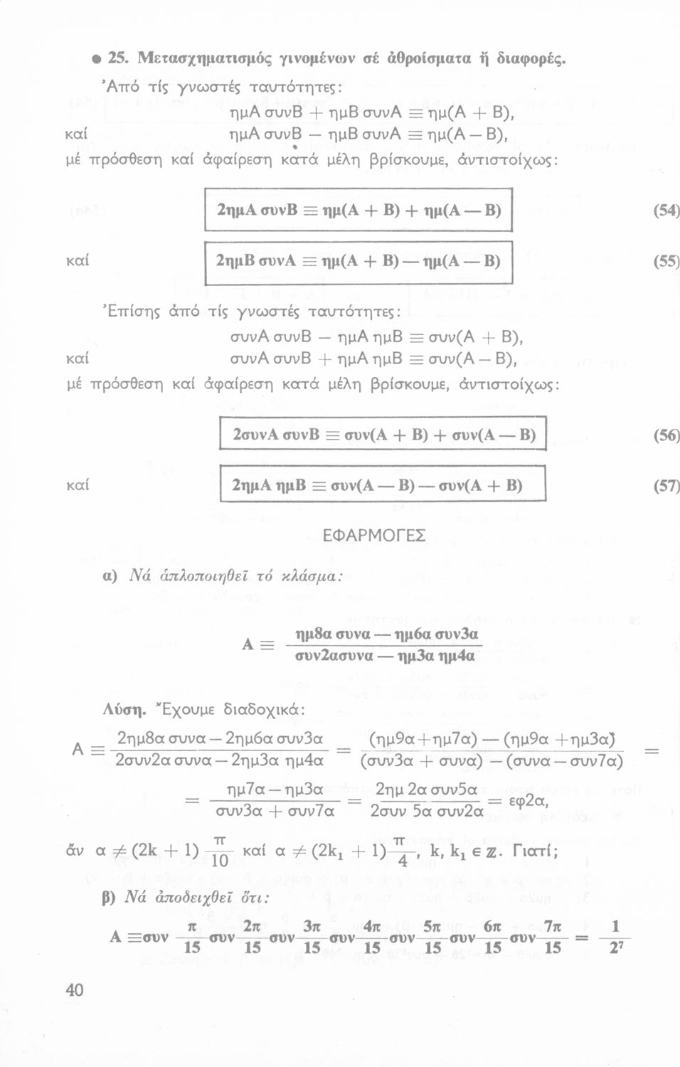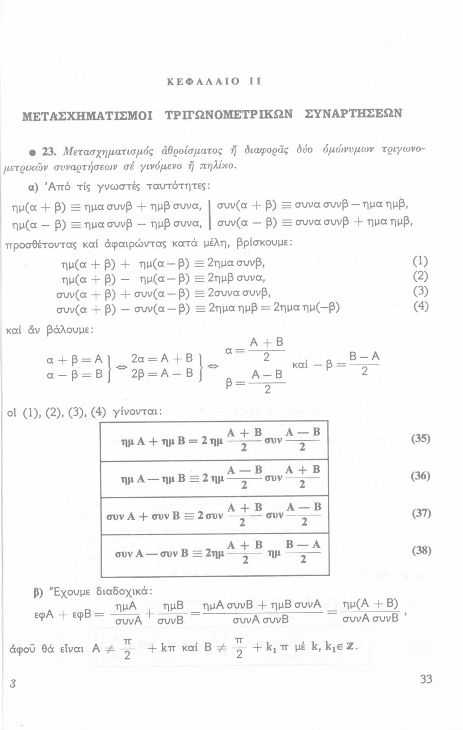 Σχολικό εγχειρίδιο Μαθηματικών Β΄ Λυκείου που περιλαμβάνει Άλγεβρα και Τριγωνομετρία και είναι χωρισμένο σε θεωρήματα, παρατηρήσεις, παραδείγματα και ασκήσεις.