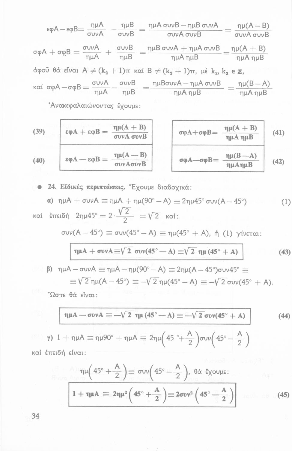Μαθηματικά Β΄ Λυκείου τριγωνομετρία