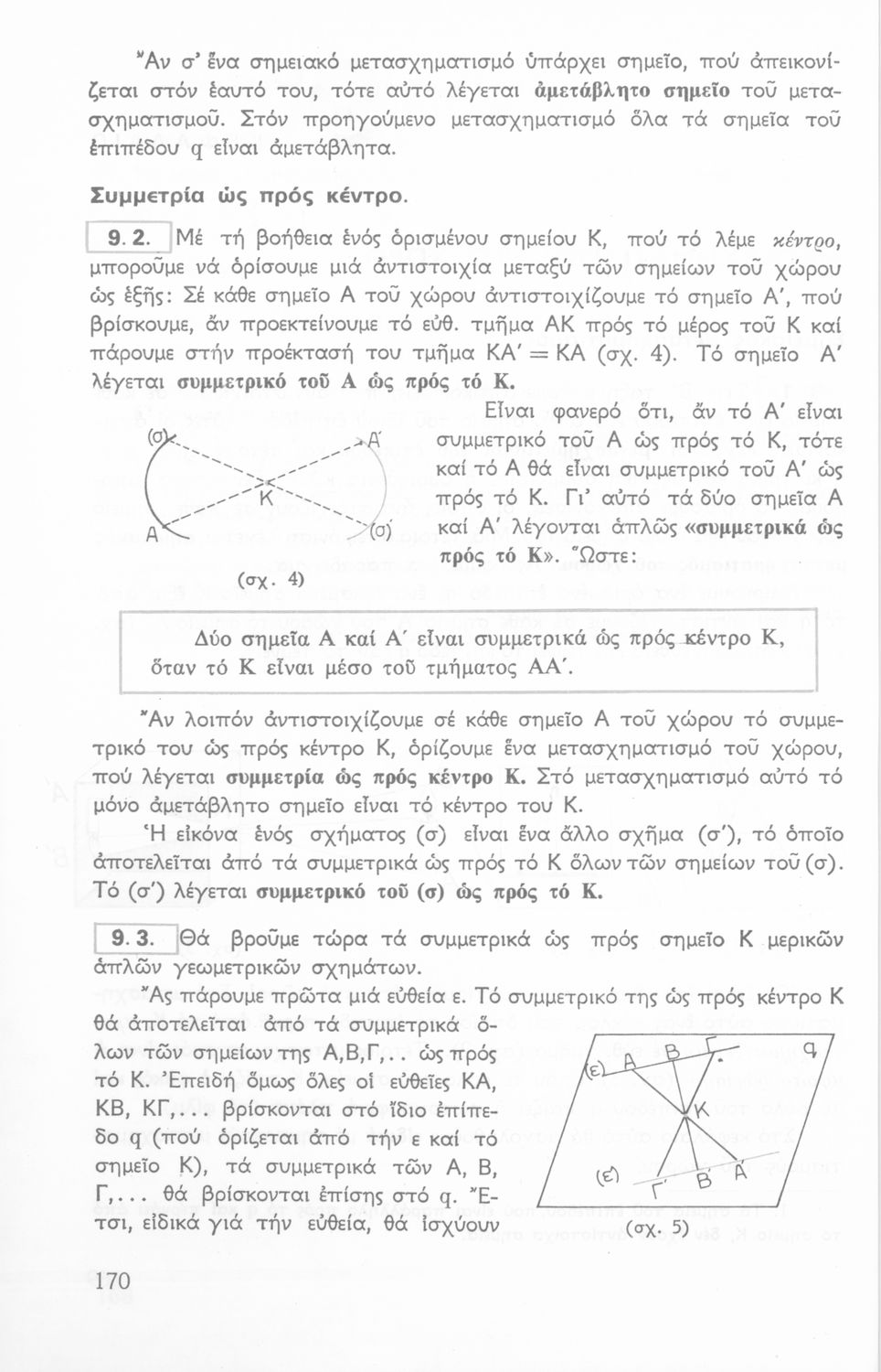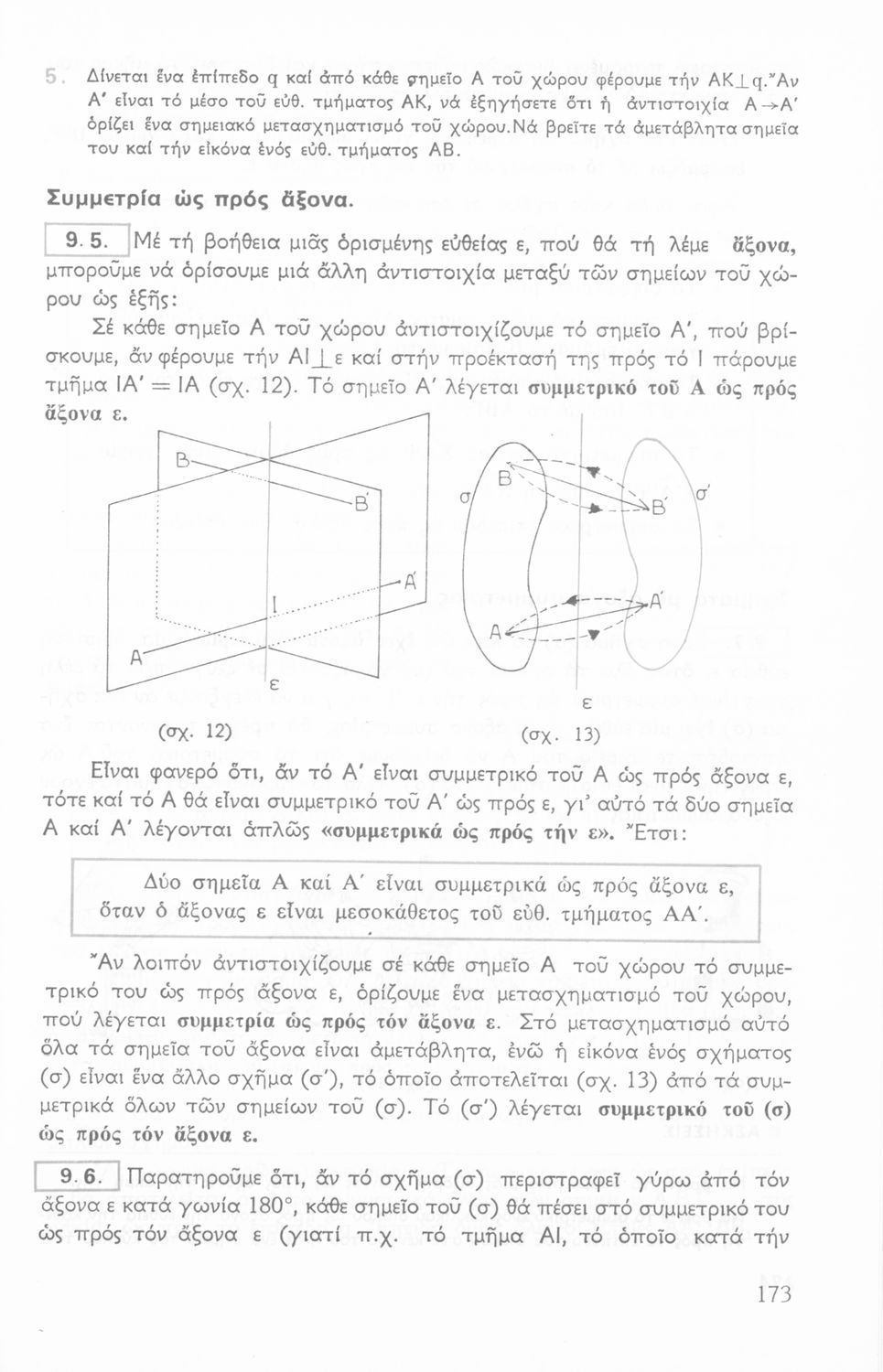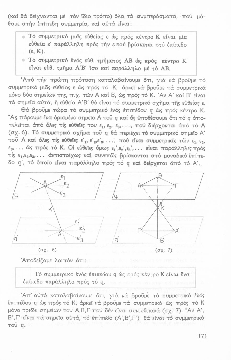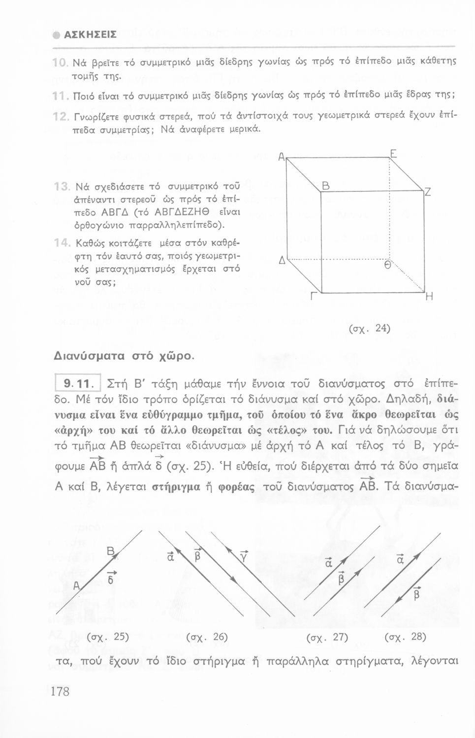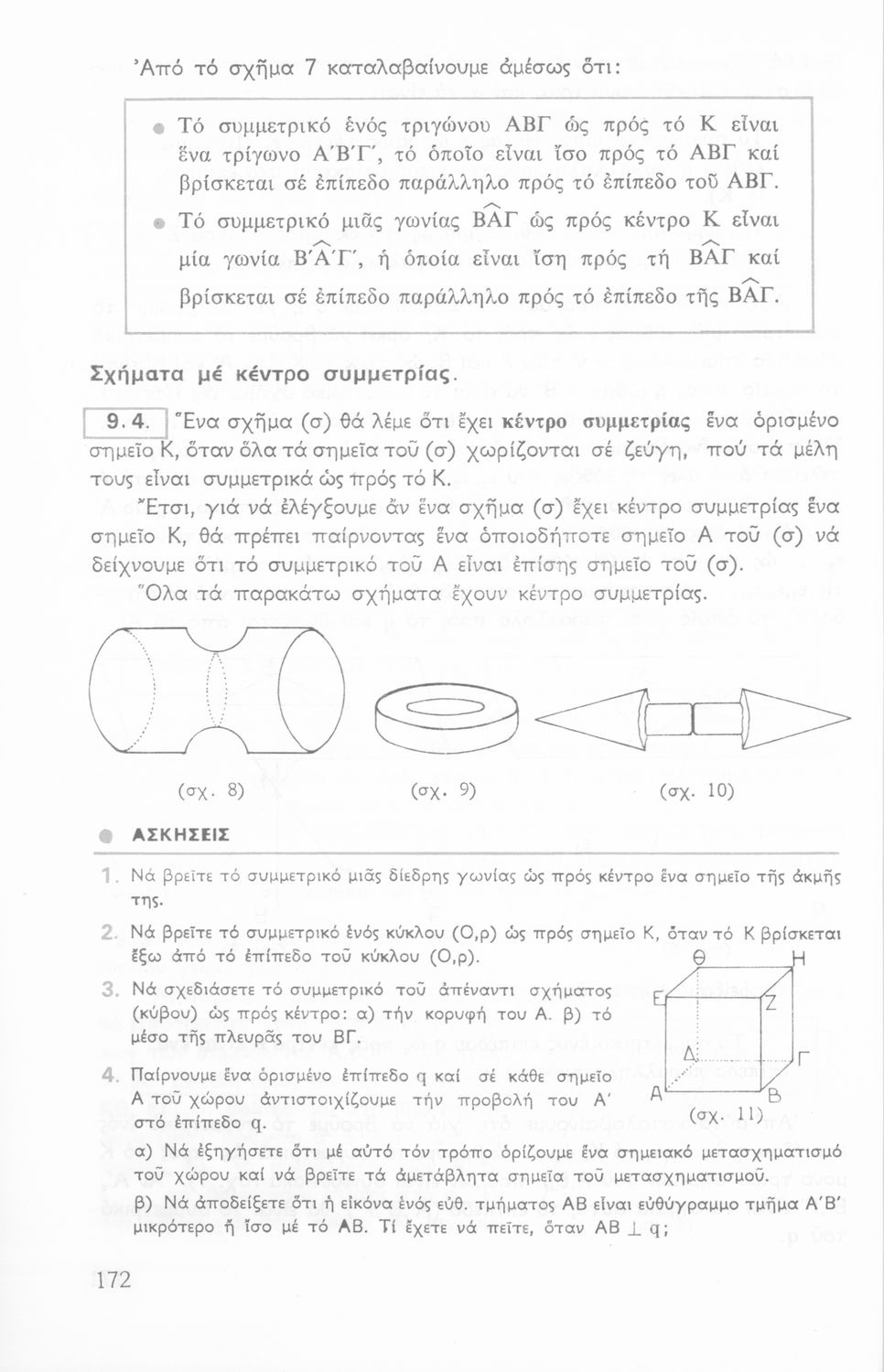 Σχολικό εγχειρίδιο Γεωμετρίας για τις Γ΄, Δ΄, Ε΄, ΣΤ΄ Γυμνασίου που περιλαμβάνει θεωρία και ασκήσεις και είναι χωρισμένο σε Επιπεδομετρία και Στερεομετρία.