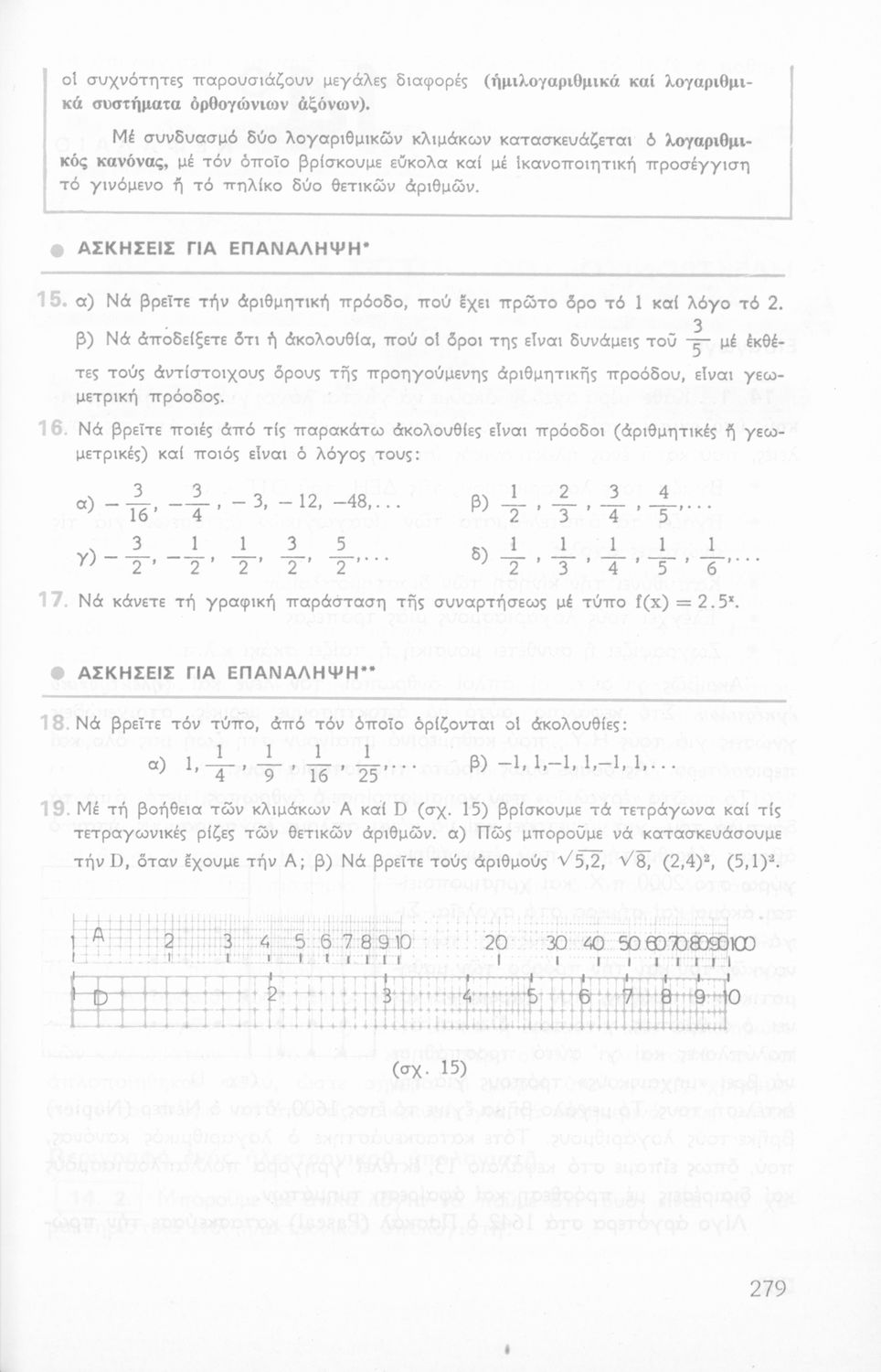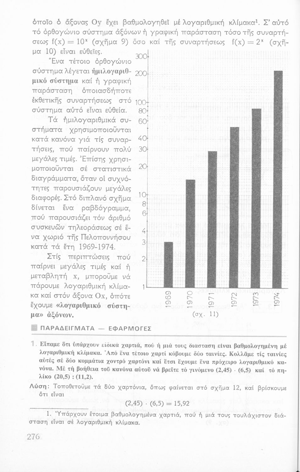 Σχολικό εγχειρίδιο Μαθηματικών για την Ε΄ Γυμνασίου, χωρισμένο σε προβλήματα, εφαρμογές και ασκήσεις, που εστιάζει στην Τριγωνομετρία. Φέρει το σύμβολο της δικτατορίας.