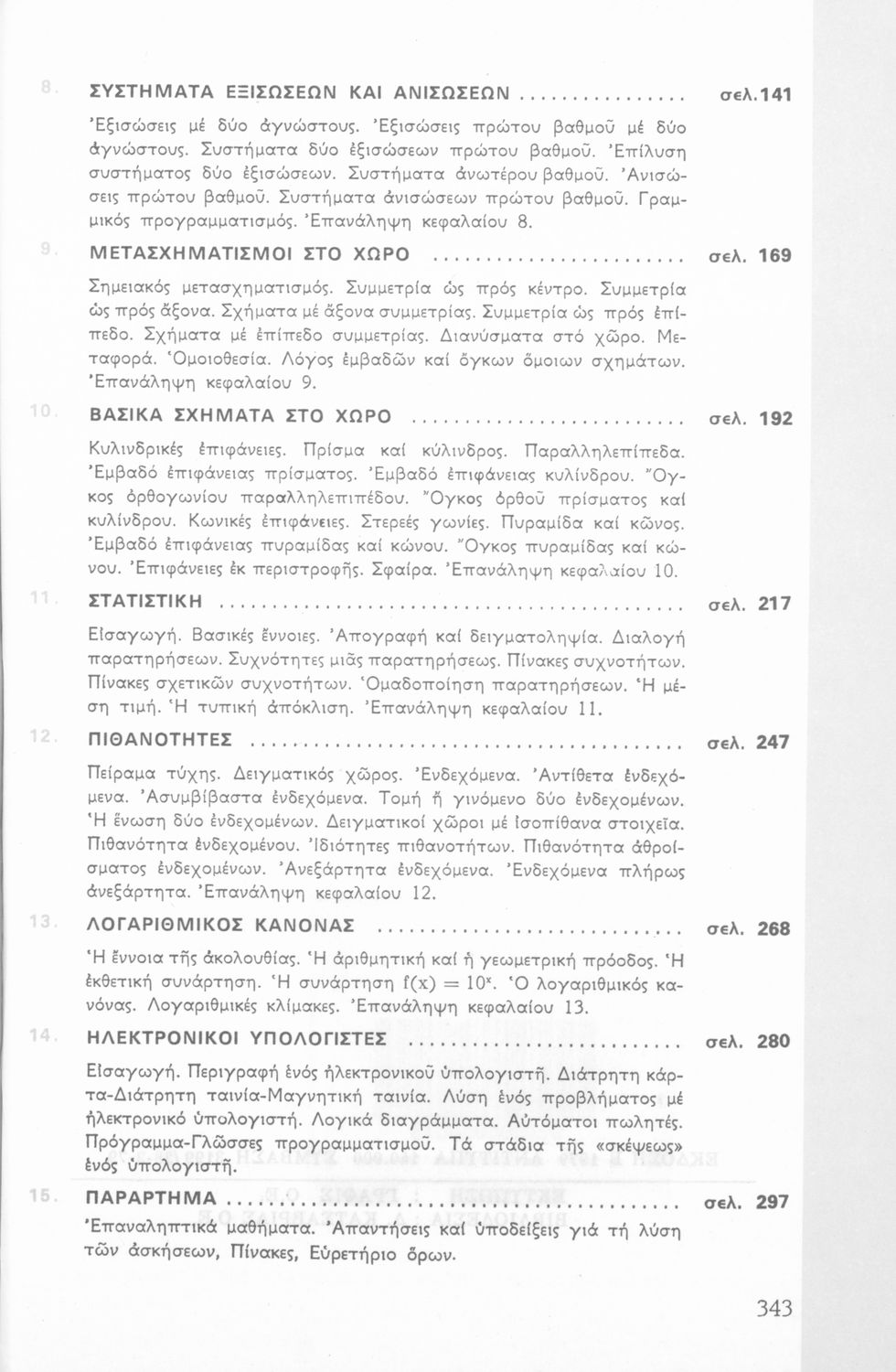 Παρουσίαση περιεχομένου: Σχολικό εγχειρίδιο Μαθηματικών Γ΄ Γυμνασίου που εστιάζει στις συναρτήσεις και τις εξισώσεις και αναλύει θέματα στατιστικής και πιθανοτήτων και τις εφαρμογές τους στους ηλεκτρονικούς υπολογιστές και τον ηλεκτρονικό προγραμματισμό.