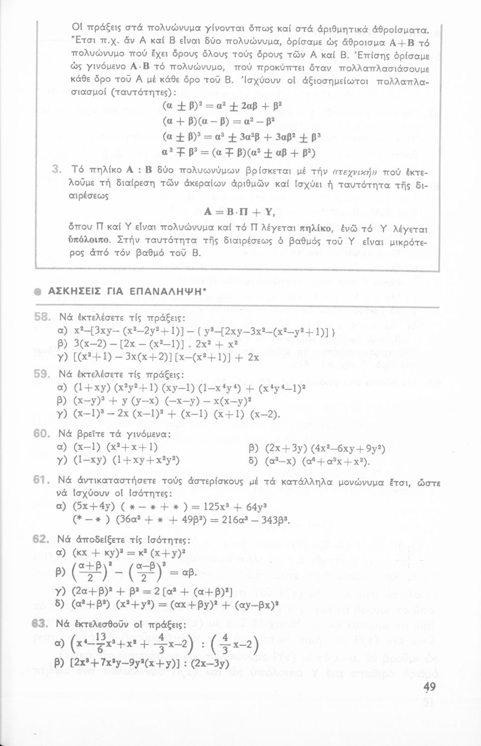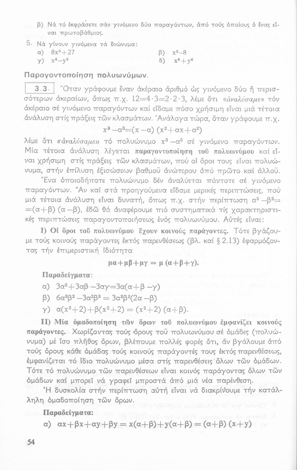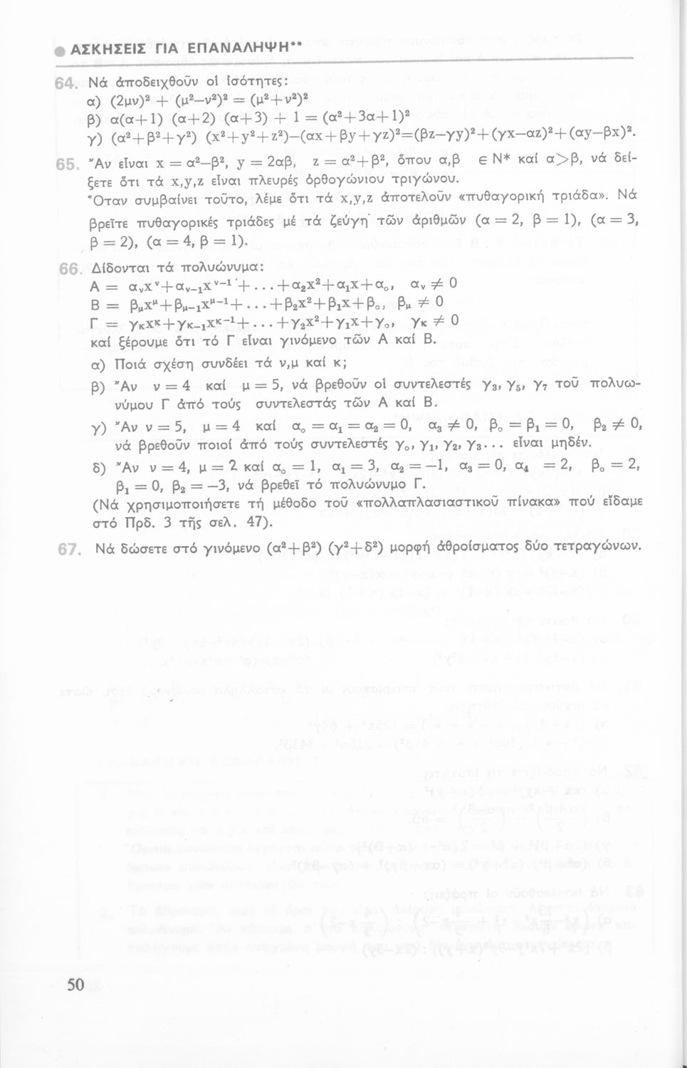 Σχολικό εγχειρίδιο Μαθηματικών Γ΄ Γυμνασίου που περιλαμβάνει θεωρία, παραδείγματα και ασκήσεις. Φέρει το σύμβολο της δικτατορίας.