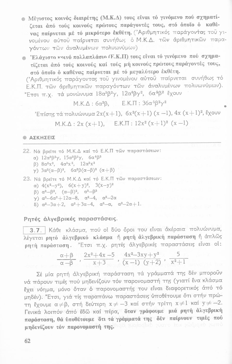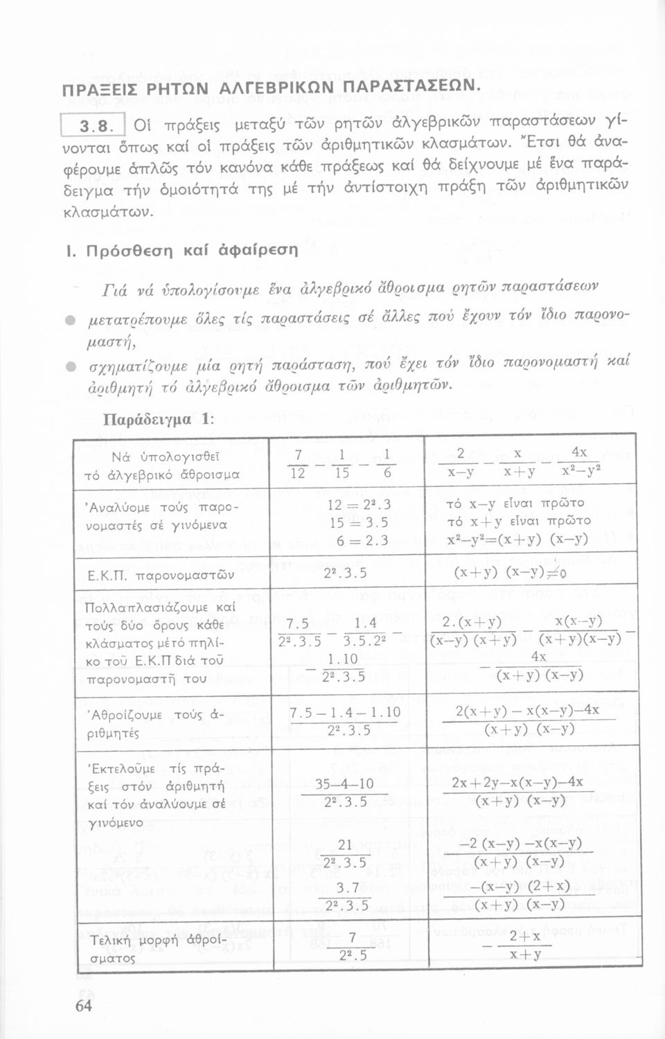 Σχολικό εγχειρίδιο Αριθμητικής για τις Α΄, Β΄, Γ΄ Γυμνασίου που είναι χωρισμένο σε ορισμούς και ασκήσεις και εστιάζει στις ιδιότητες των αριθμητικών πράξεων, τα κλάσματα και την τετραγωνική ρίζα.