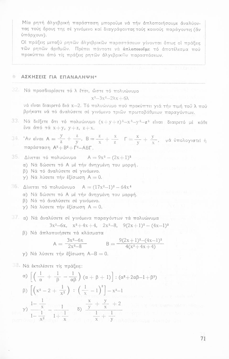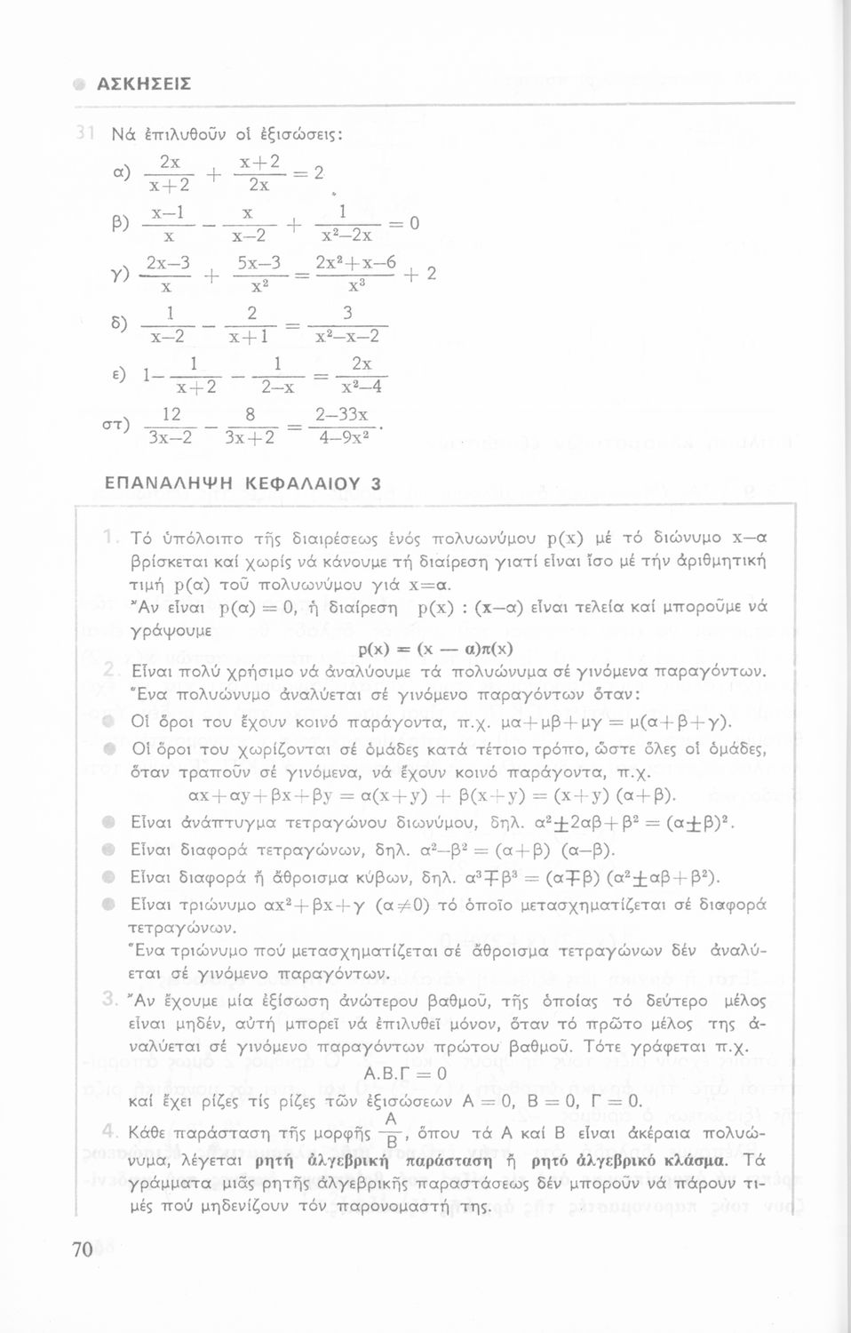 Σχολικό εγχειρίδιο Μαθηματικών Γ΄ Γυμνασίου που περιλαμβάνει θεωρία, παραδείγματα και ασκήσεις. Φέρει το σύμβολο της δικτατορίας.