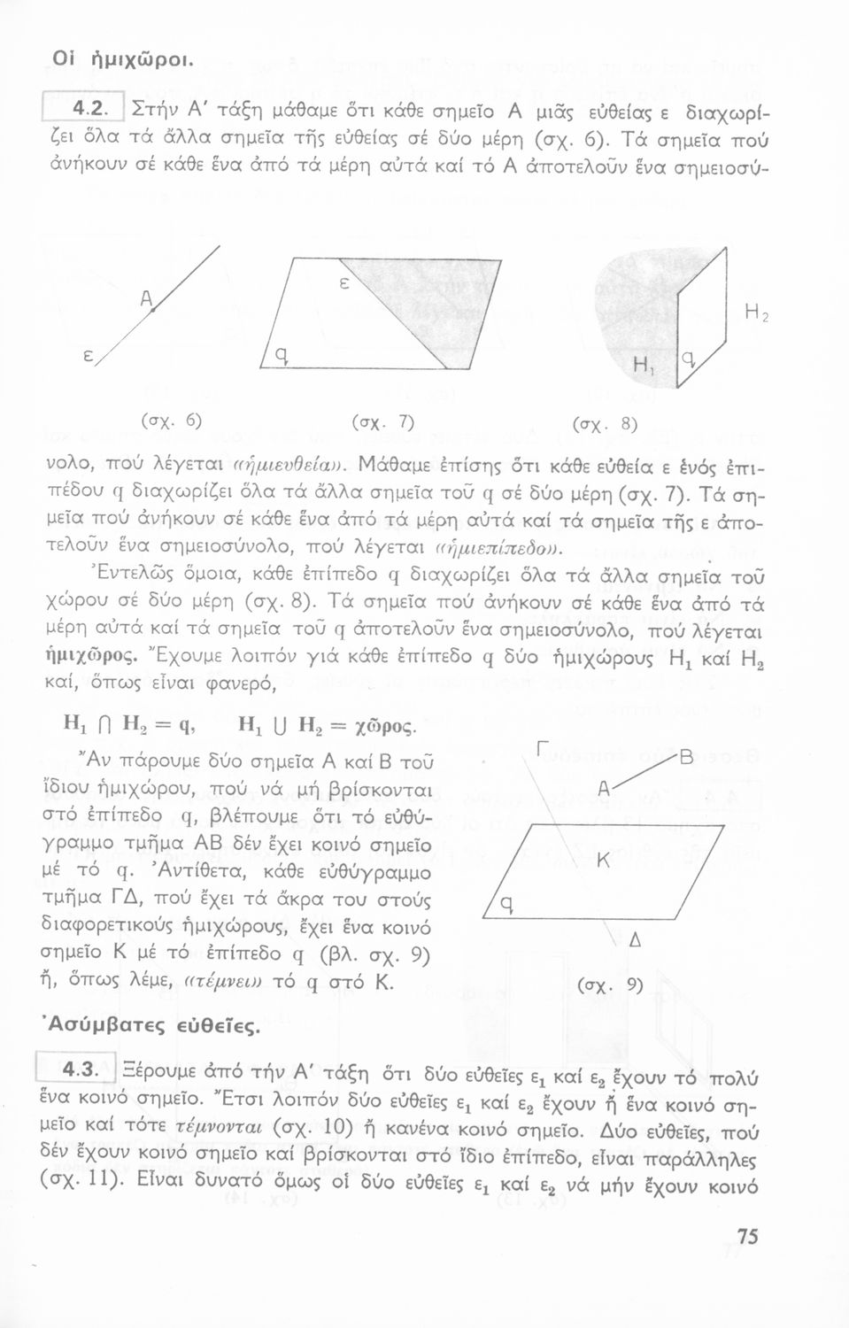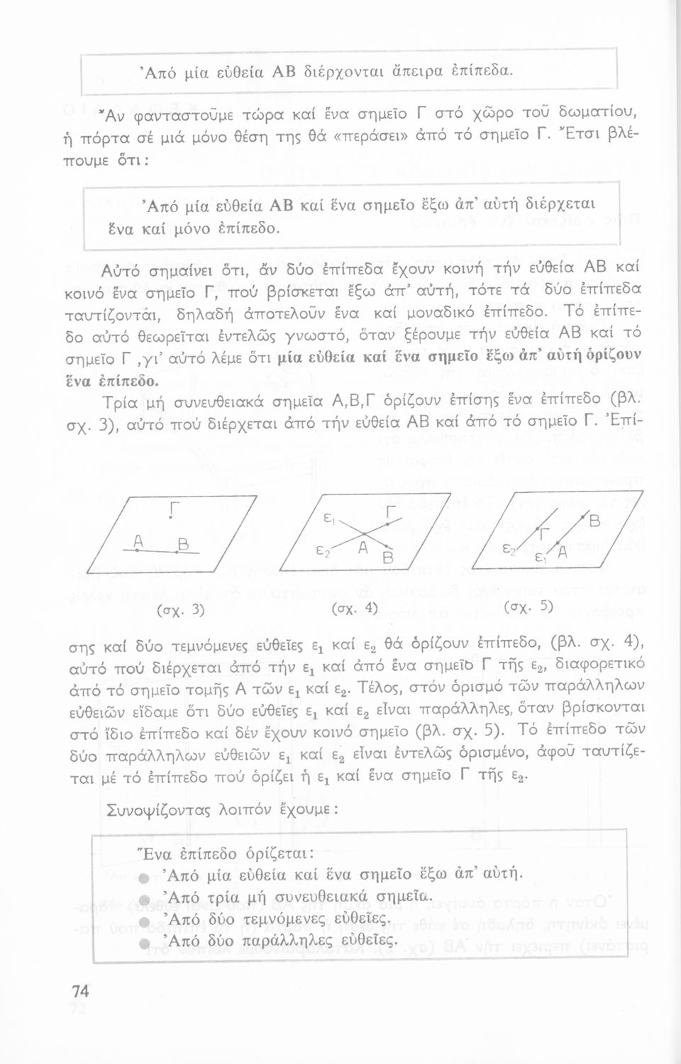 Σχολικό εγχειρίδιο Γεωμετρίας για τις Γ΄, Δ΄, Ε΄, ΣΤ΄ Γυμνασίου που περιλαμβάνει θεωρία και ασκήσεις και είναι χωρισμένο σε Επιπεδομετρία και Στερεομετρία.