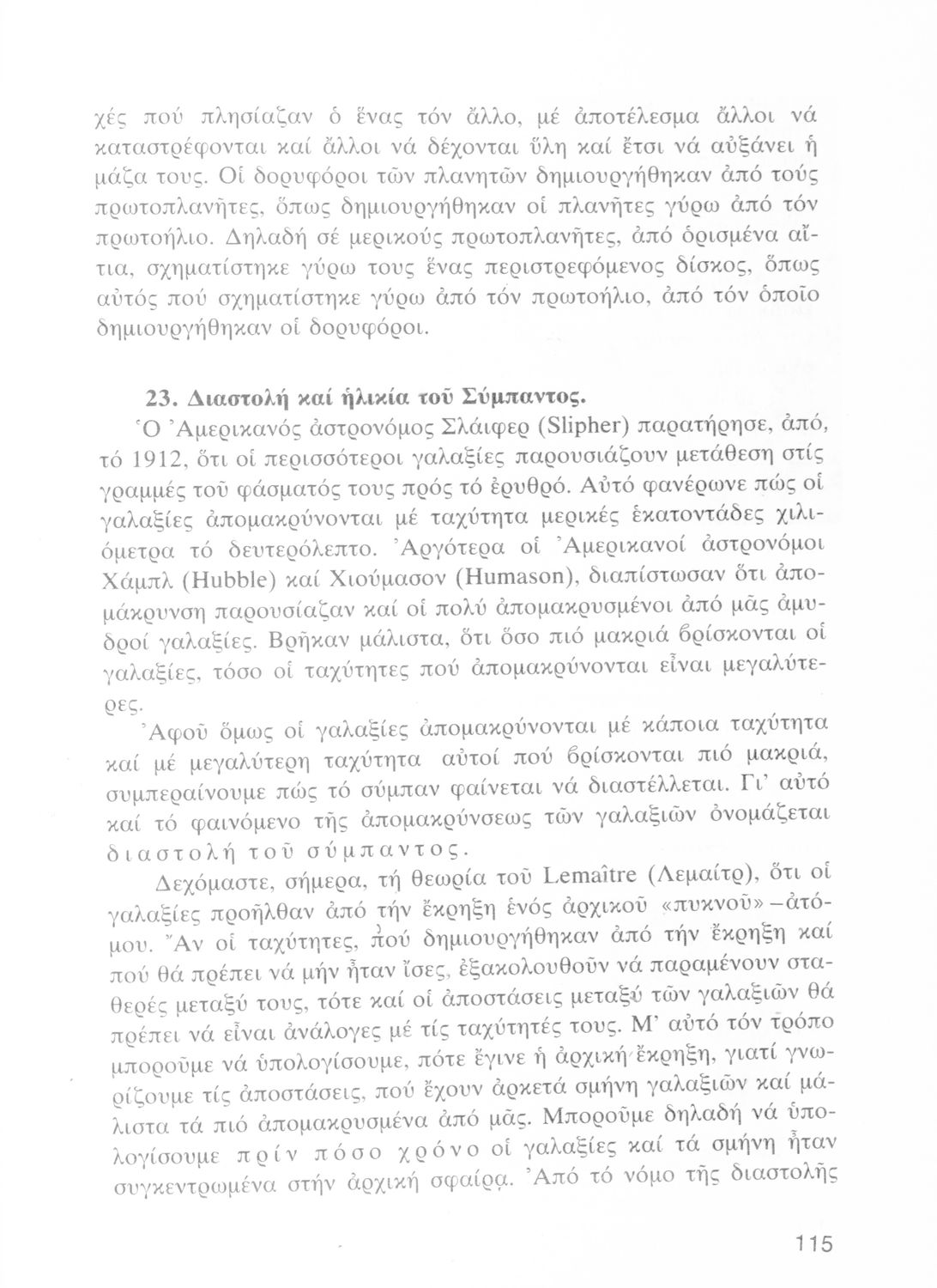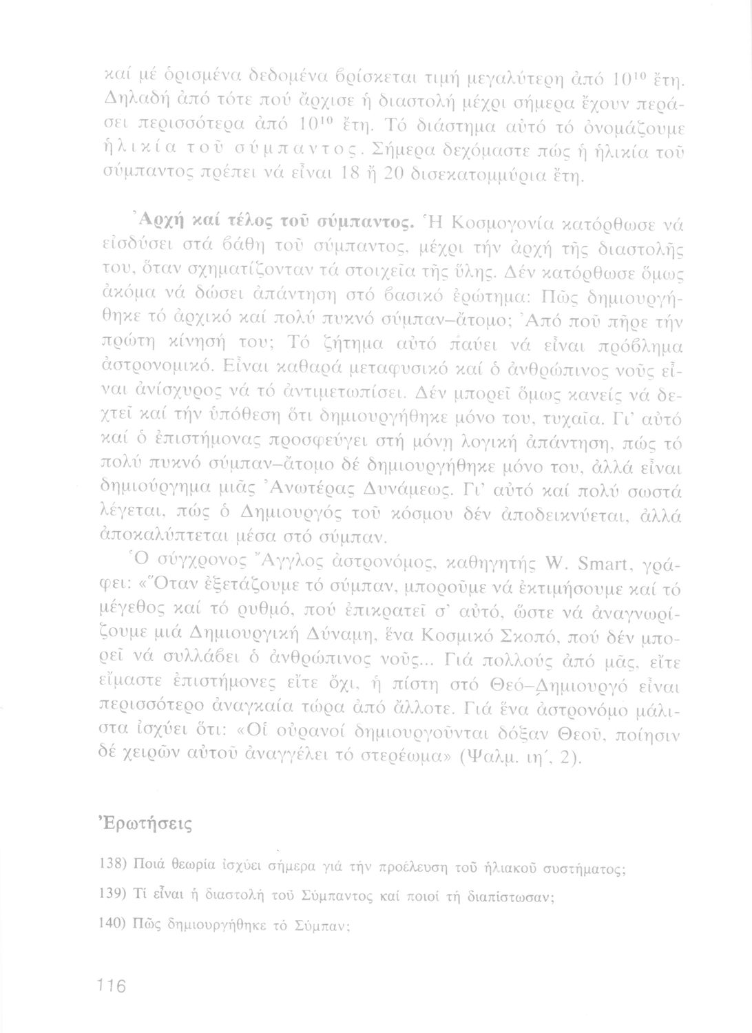 Σχολικό εγχειρίδιο Κοσμογραφίας Γ΄ Λυκείου που πραγματεύεται τη μορφή, σύσταση, μέγεθος και κίνηση των γαλαξιών και των πλανητών. Περιέχει στοιχεία αστροναυτικής και πίνακα με 88 αστερισμούς, τα διεθνή ονόματα και τα σύμβολά τους.
