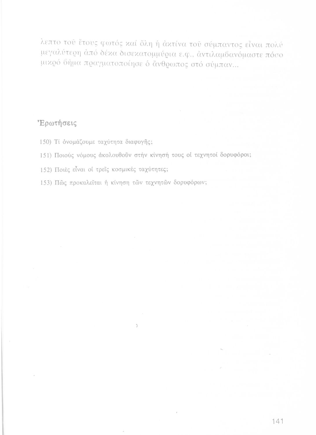 Σχολικό εγχειρίδιο Κοσμογραφίας Γ΄ Λυκείου που πραγματεύεται τη μορφή, σύσταση, μέγεθος και κίνηση των γαλαξιών και των πλανητών. Περιέχει στοιχεία αστροναυτικής και πίνακα με 88 αστερισμούς, τα διεθνή ονόματα και τα σύμβολά τους.