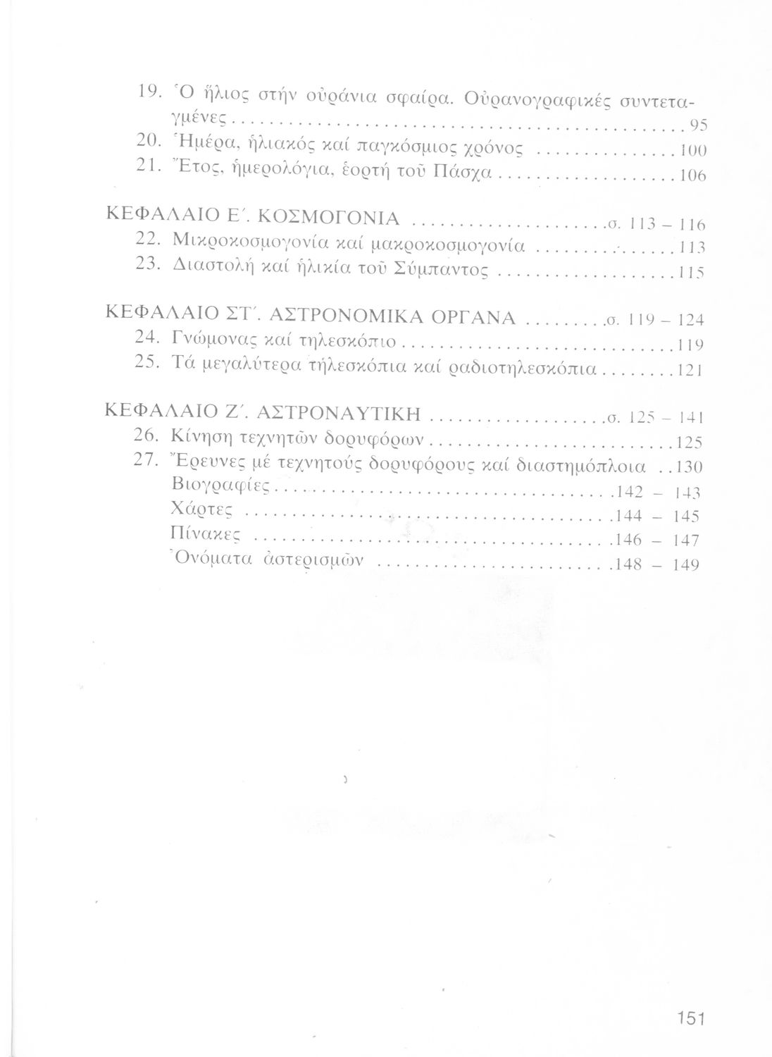 Σχολικό εγχειρίδιο Κοσμογραφίας Γ΄ Λυκείου που πραγματεύεται τη μορφή, σύσταση, μέγεθος και κίνηση των γαλαξιών και των πλανητών. Περιέχει στοιχεία αστροναυτικής και πίνακα με 88 αστερισμούς, τα διεθνή ονόματα