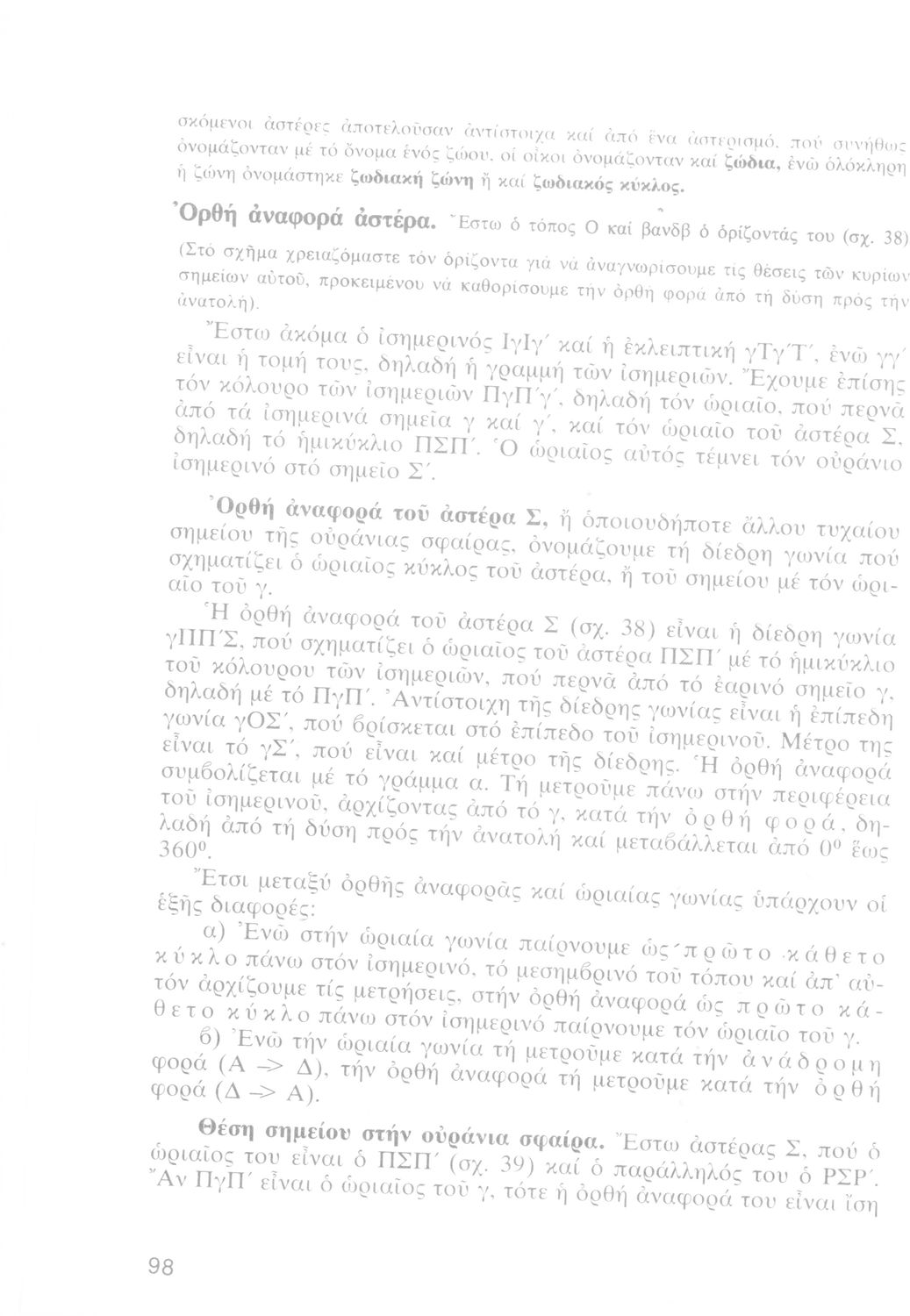 Βαθμίδα εκπαίδευσης: Δευτεροβάθμια Τάξη: Γ' Λυκείου Μάθημα: Κοσμογραφία Γλώσσα: Δημοτική Παρουσίαση περιεχομένου: Σχολικό εγχειρίδιο Κοσμογραφίας Γ΄ Λυκείου που πραγματεύεται τη μορφή, σύσταση, μέγεθος και κίνηση των γαλαξιών και των πλανητών. Περιέχει στοιχεία αστροναυτικής και πίνακα με 88 αστερισμούς, τα διεθνή ονόματα και τα σύμβολά τους. |