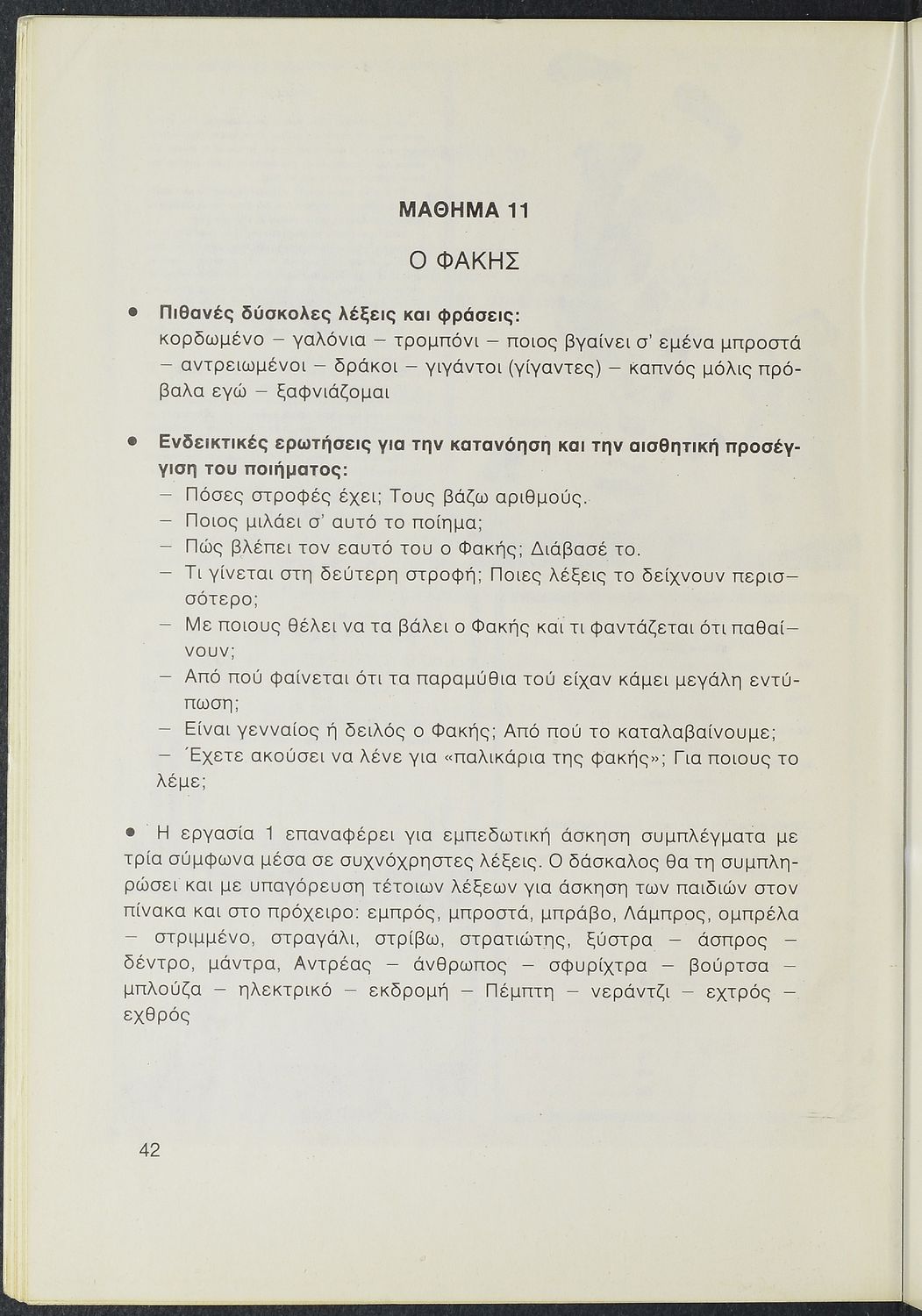 Παιδαγωγικό βοήθημα Γλώσσας για τον δάσκαλο. Περιέχει πεζά και ποιήματα Ελλήνων λογοτεχνών για την εκμάθηση της Ελληνικής γλώσσας.