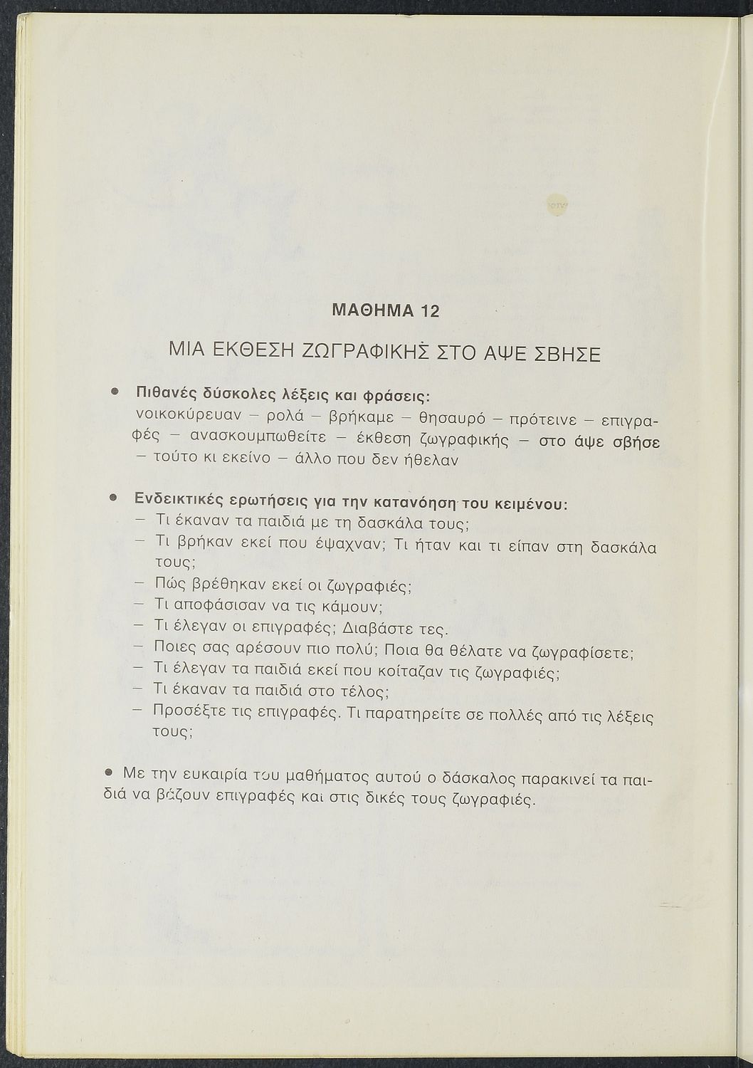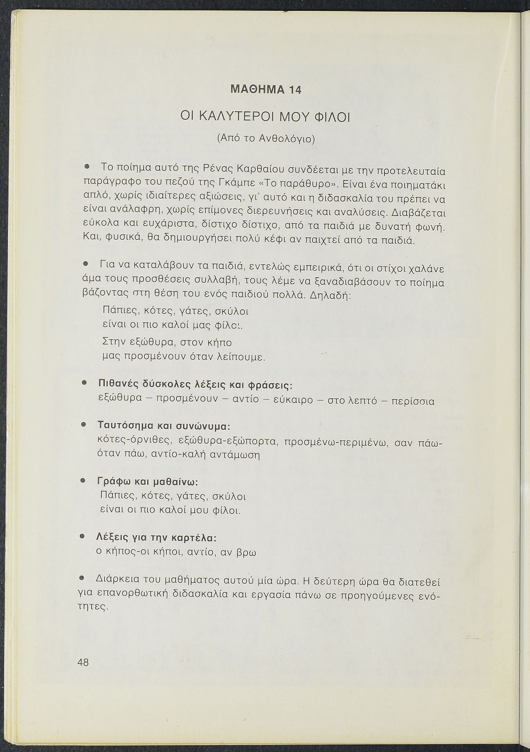 Παιδαγωγικό βοήθημα Γλώσσας για τον δάσκαλο. Περιέχει πεζά και ποιήματα Ελλήνων λογοτεχνών για την εκμάθηση της Ελληνικής γλώσσας.