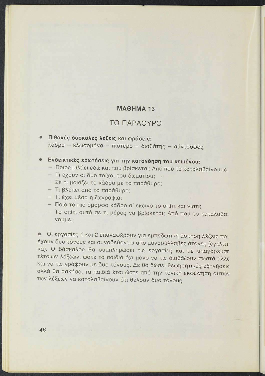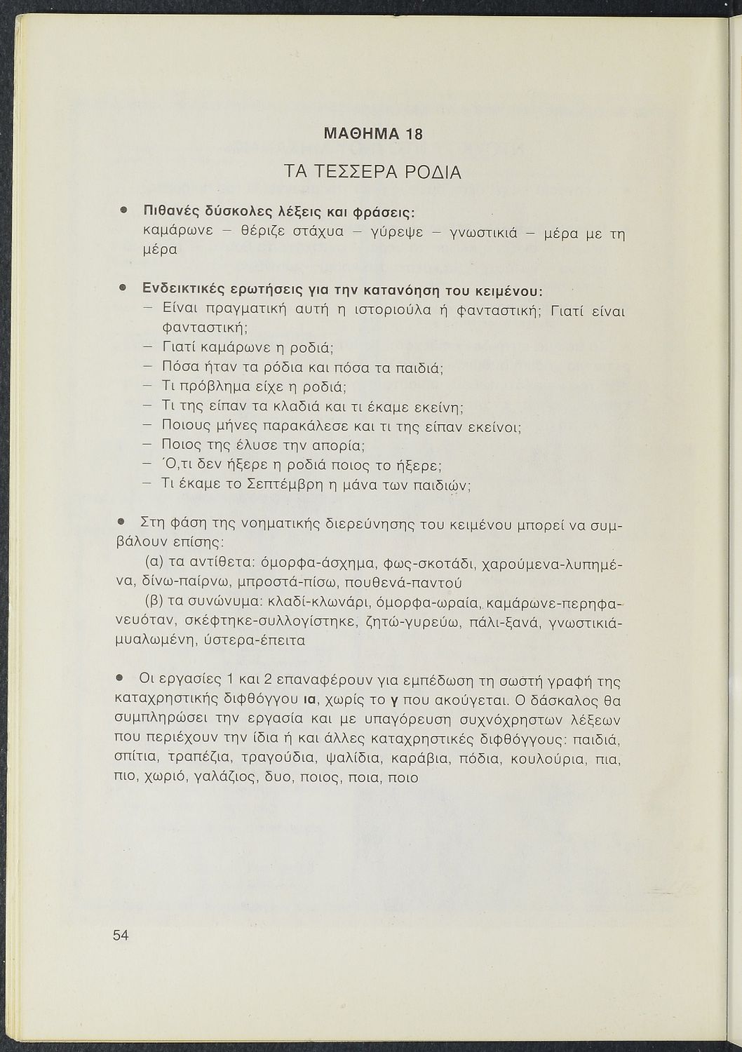Νεοελληνική Γλώσσα Βιβλίο του δασκάλου, Τάξη Β΄,Πρώτο τεύχος