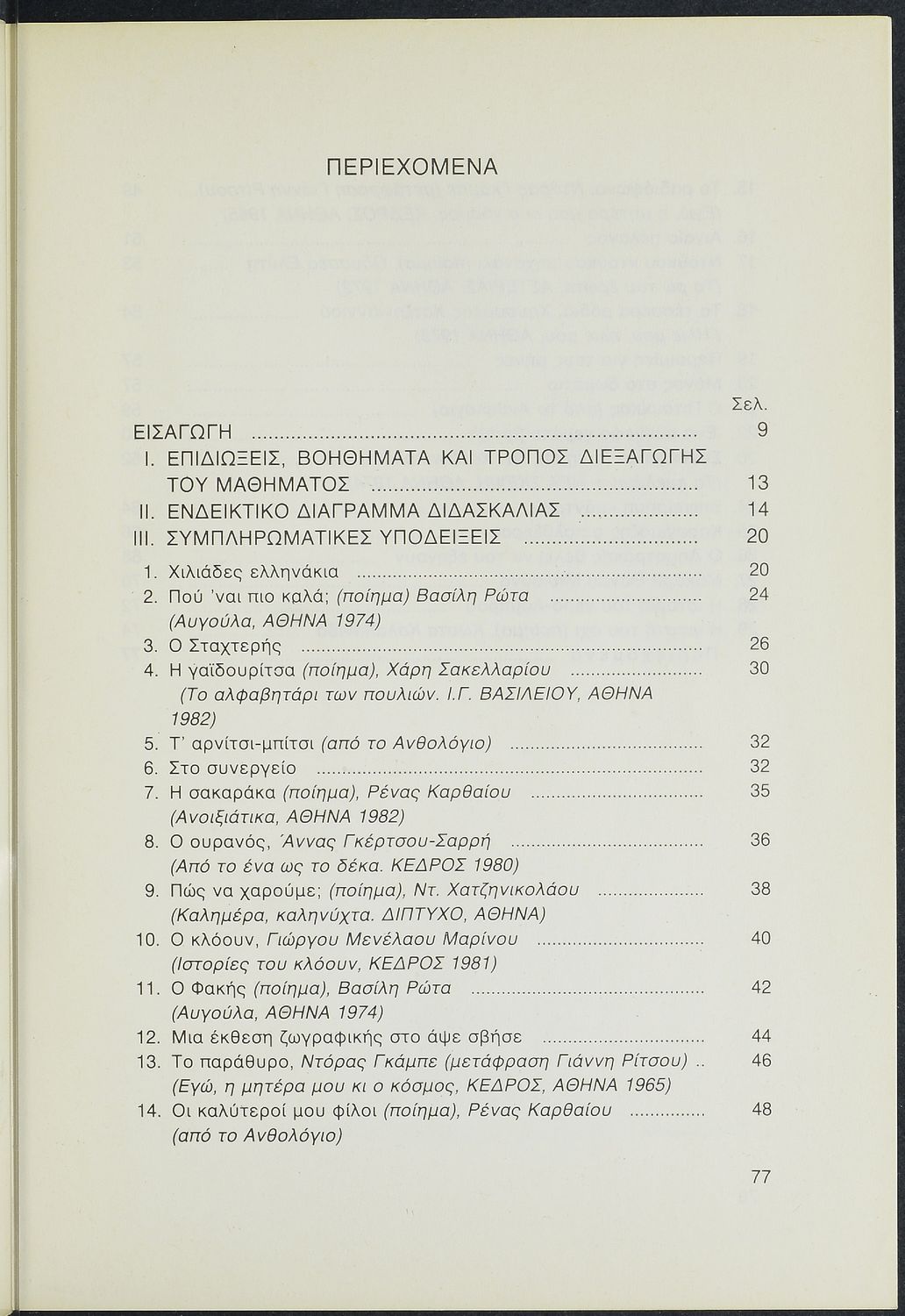 Παιδαγωγικό βοήθημα Γλώσσας για τον δάσκαλο. Περιέχει πεζά και ποιήματα Ελλήνων λογοτεχνών για την εκμάθηση της Ελληνικής γλώσσας.