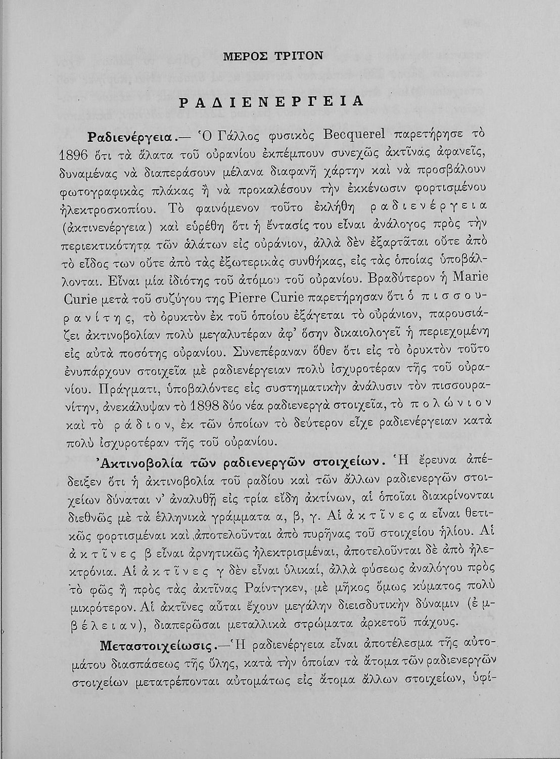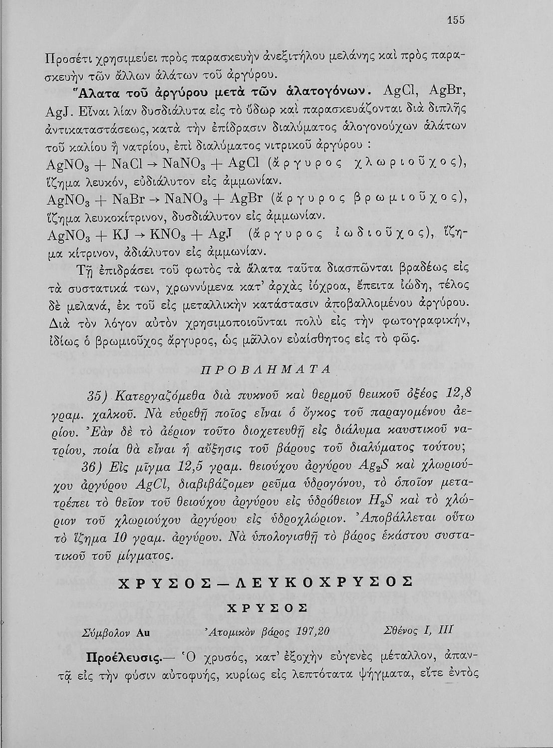 Σχολικό εγχειρίδιο Χημείας για τους μαθητές της Ε' Γυμνασίου. Χωρίζεται σε τρία μέρη. Στο πρώτο μέρος είναι μια γενική εισαγωγή στους θεμελιώδεις νόμους της Χημείας, τις χημικές αντιδράσεις, τα χημικά σύμβολα.
