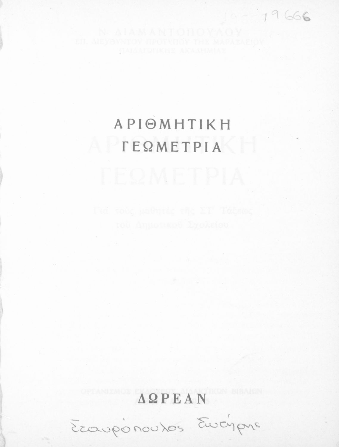 Τίτλος: Αριθμητική γεωμετρία για τους μαθητές της ΣΤ΄ τάξεως του Δημοτικού Σχολείου