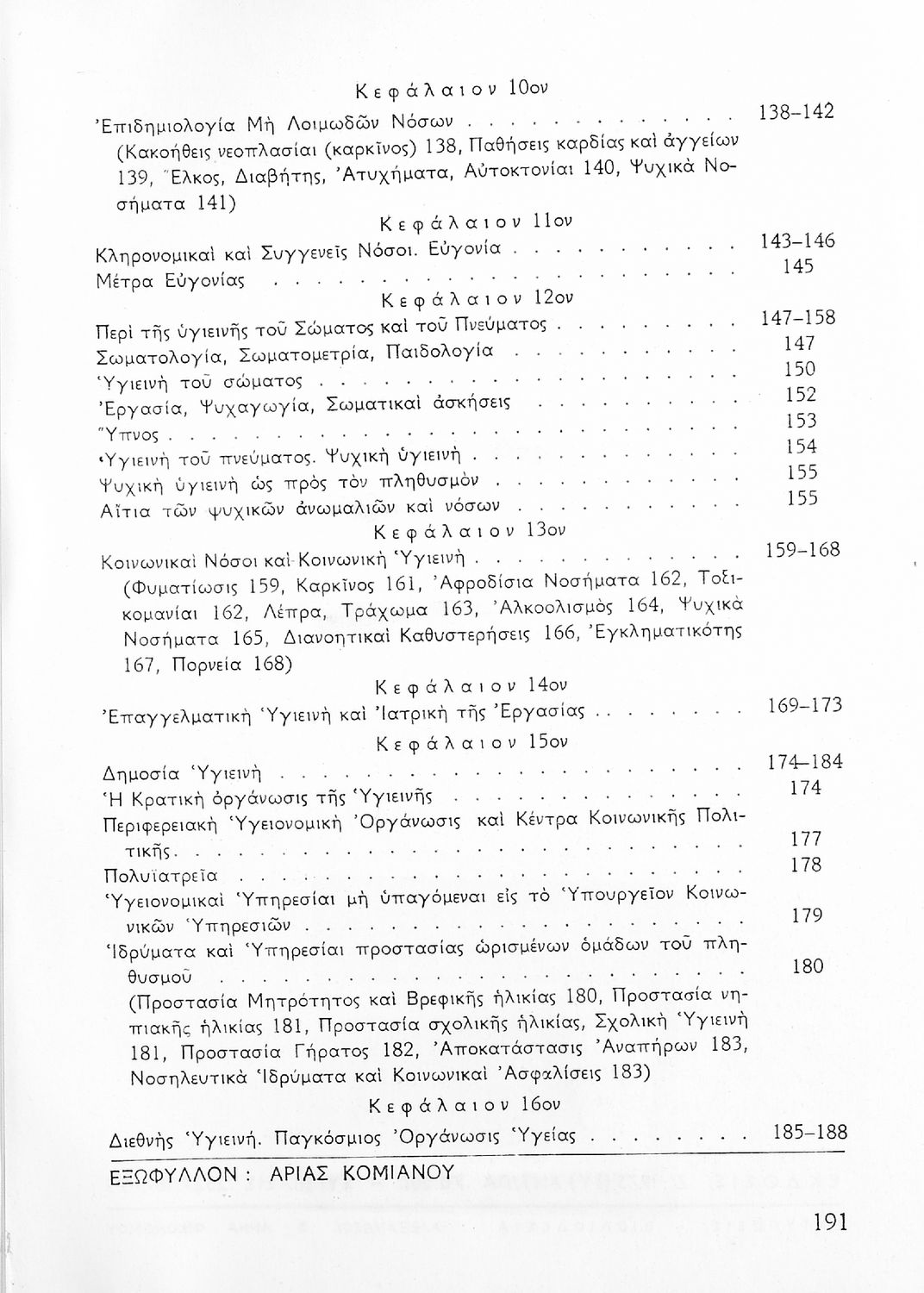 Σχολικό εγχειρίδιο Υγιεινής για την Ε΄ Γυμνασίου που εστιάζει περιβαντολλογική διάσταση της υγιεινής, τα λοιμώδη νοσήματα, και την κοινωνική υγιεινή.