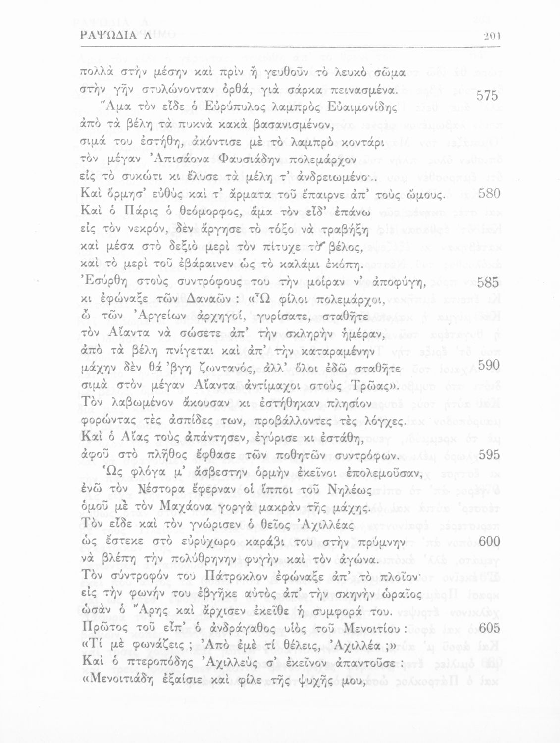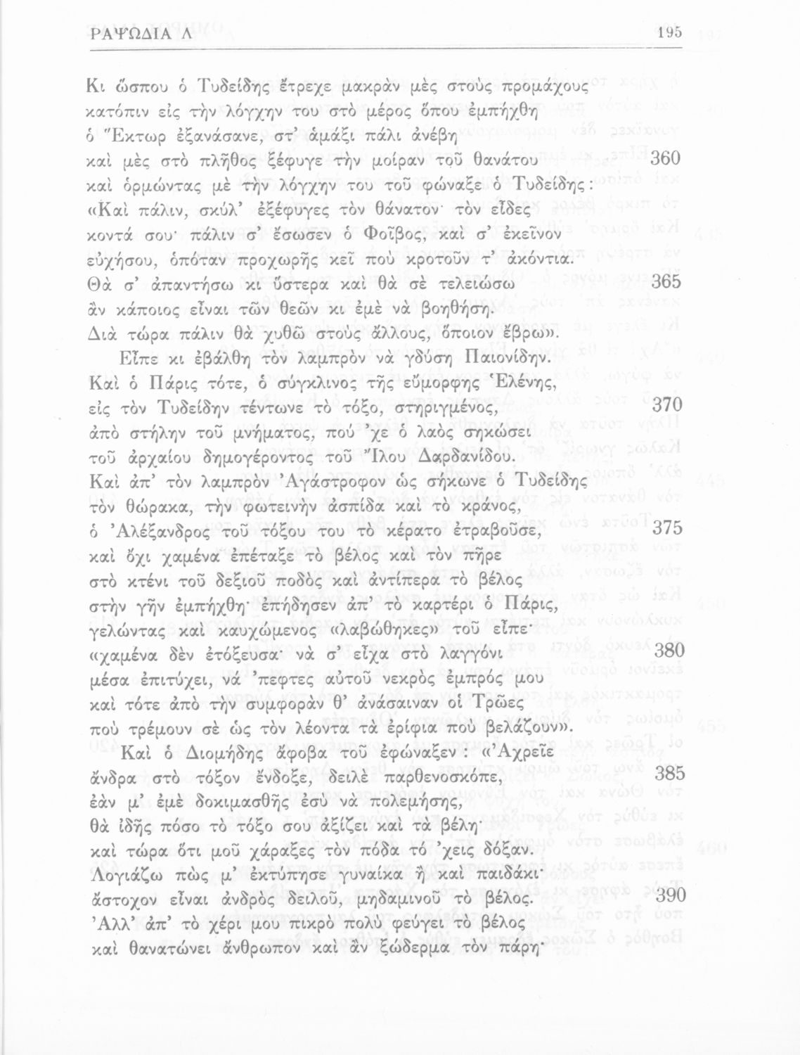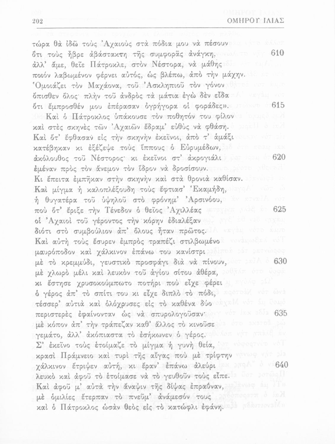 Σχολικό εγχειρίδιο Αρχαίων Ελληνικών. Στο βιβλίο περιλαμβάνεται η Ιλιάδα του Ομήρου σε μετάφραση του Ιάκωβου Πολυλά καθώς και ενδεικτικό Λεξιλόγιο