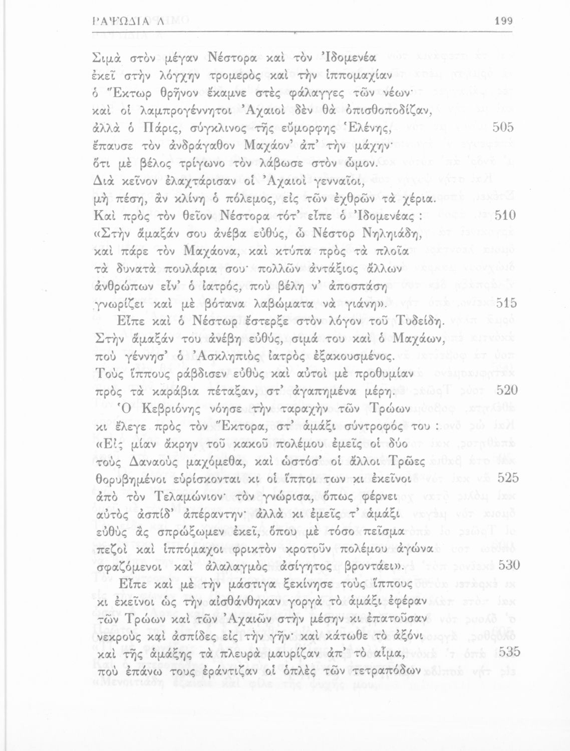 Μαθητικό βοήθημα του Ελληνικού Σχολείου, των Παρθεναγωγείων και του Γυμνασίου για το μάθημα των Αρχαίων Ελληνικών. Περιέχει τις ραψωδίες Ο, Π, Ρ, Σ, Τ, Χ, ψ, Ω από το πρωτότυπο με σχόλια και ερμηνευτικές ...