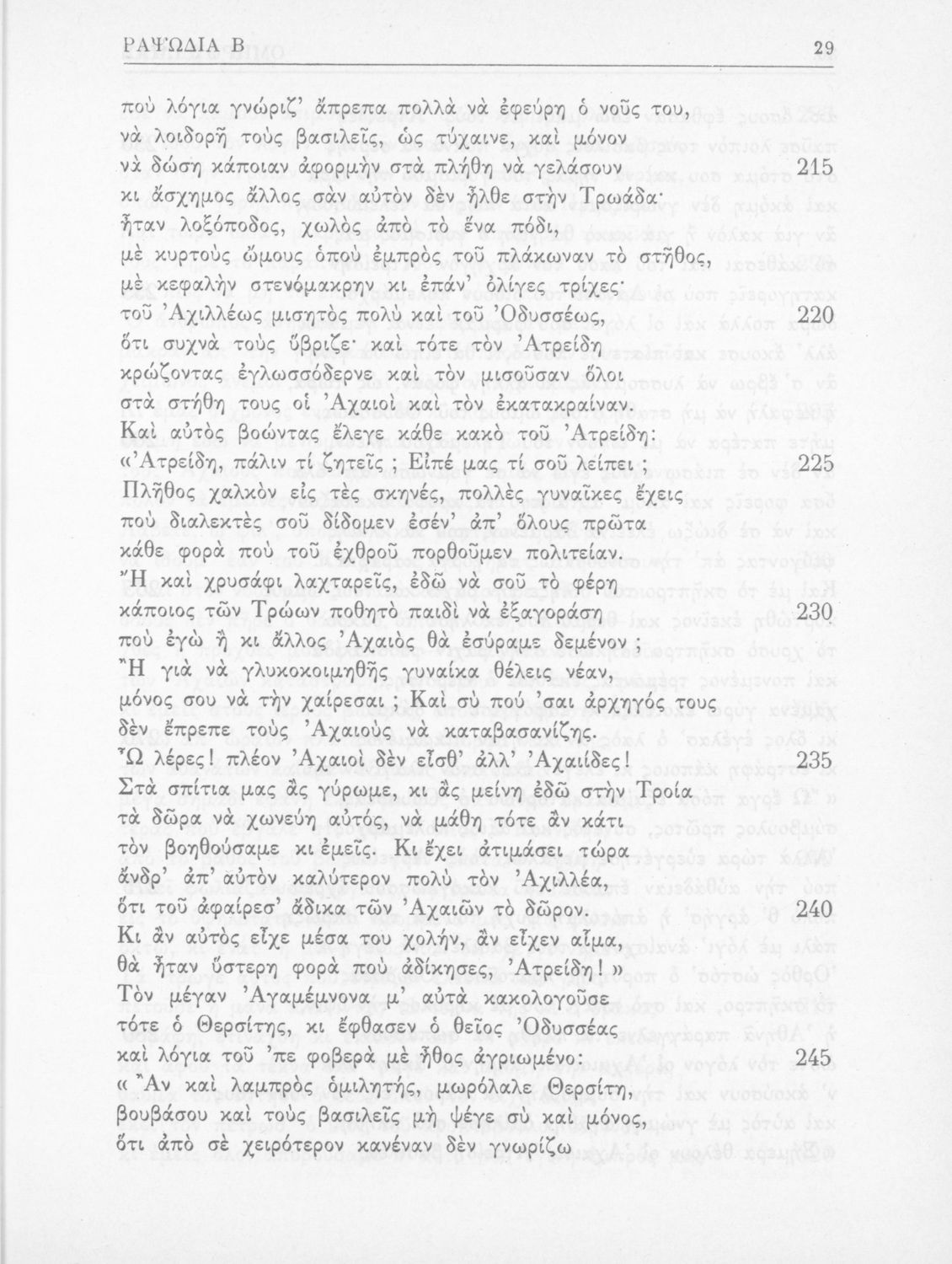 Σχολικό εγχειρίδιο Αρχαίων Ελληνικών. Στο βιβλίο περιλαμβάνεται η Ιλιάδα του Ομήρου σε μετάφραση του Ιάκωβου Πολυλά καθώς και ενδεικτικό Λεξιλόγιο