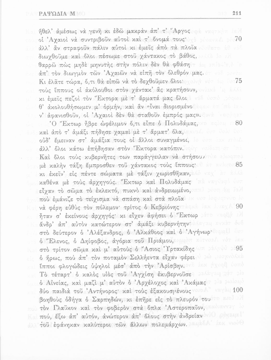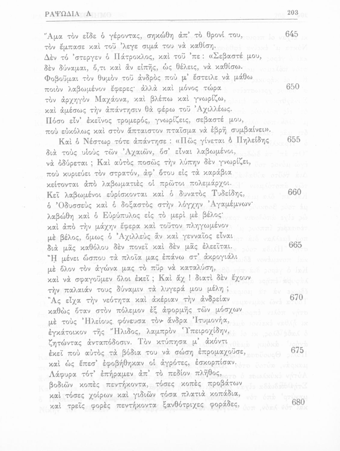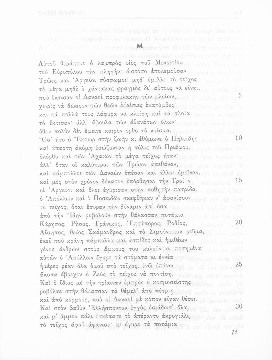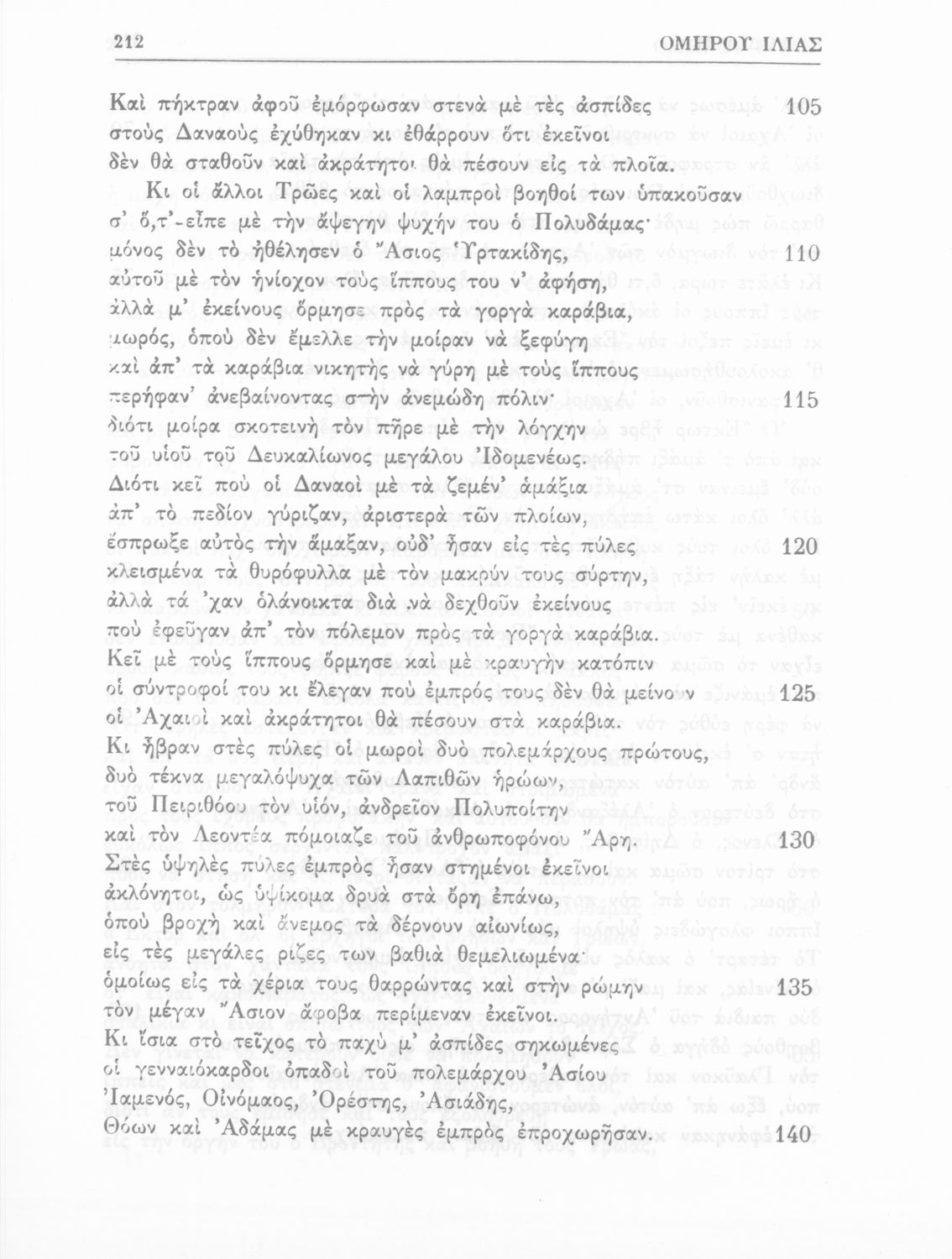 Σχολικό εγχειρίδιο Αρχαίων Ελληνικών. Στο βιβλίο περιλαμβάνεται η Ιλιάδα του Ομήρου σε μετάφραση του Ιάκωβου Πολυλά καθώς και ενδεικτικό Λεξιλόγιο