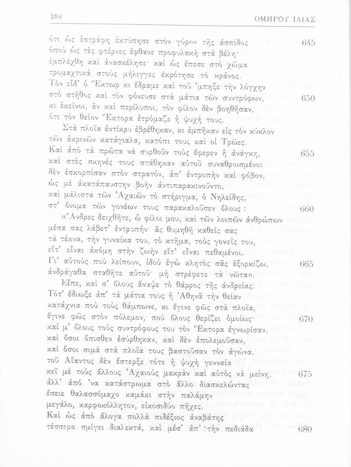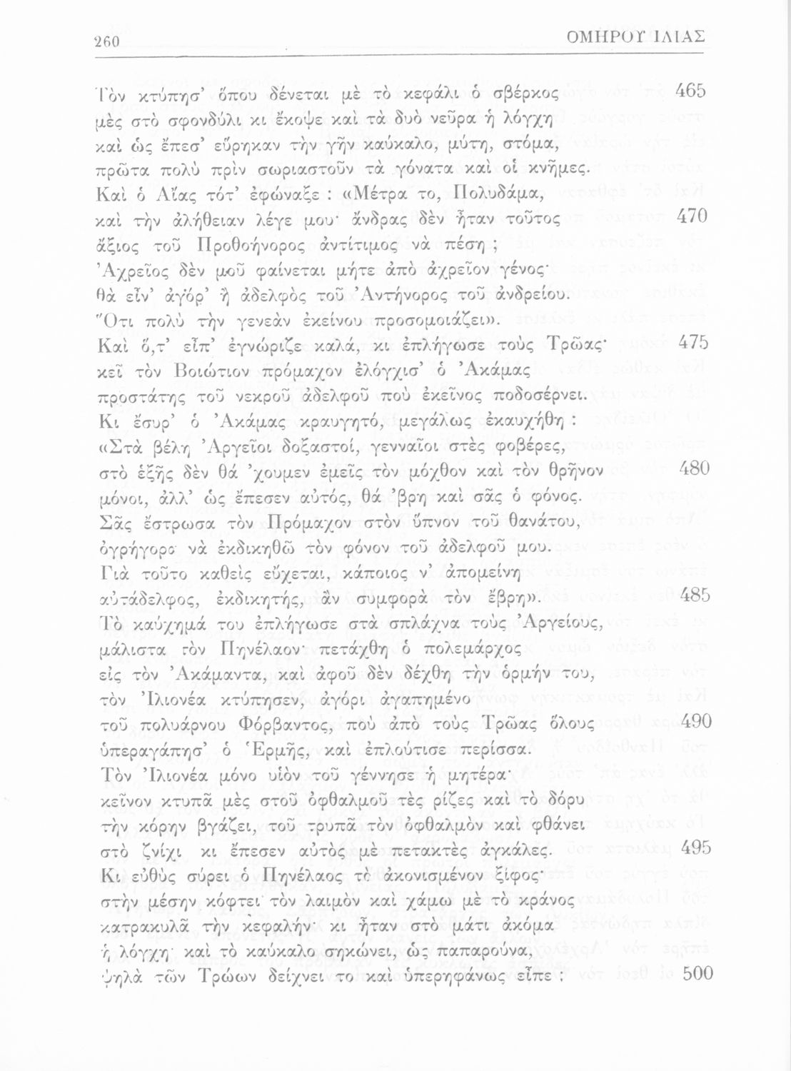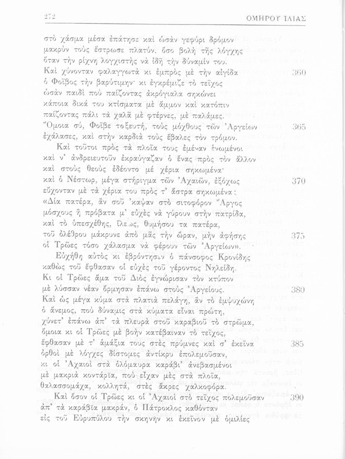 Σχολικό εγχειρίδιο Αρχαίων Ελληνικών. Στο βιβλίο περιλαμβάνεται η Ιλιάδα του Ομήρου σε μετάφραση του Ιάκωβου Πολυλά καθώς και ενδεικτικό Λεξιλόγιο
