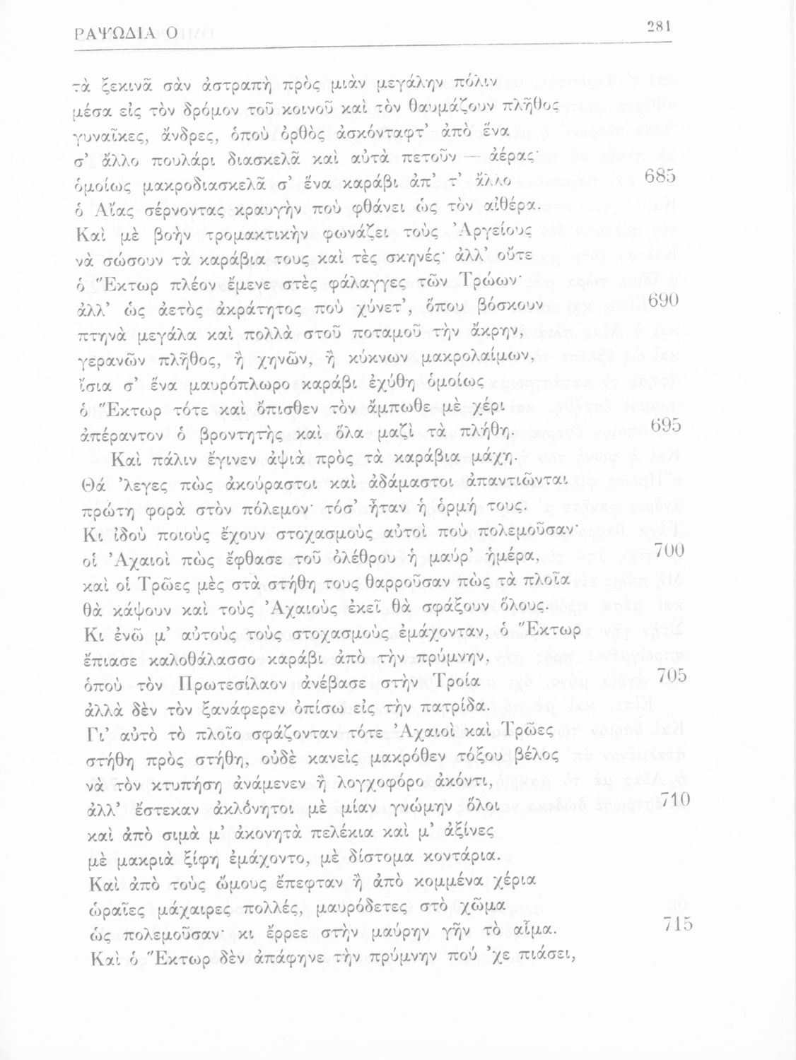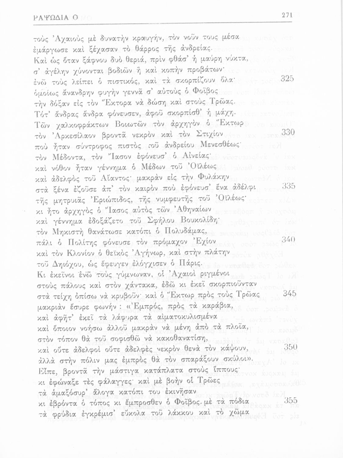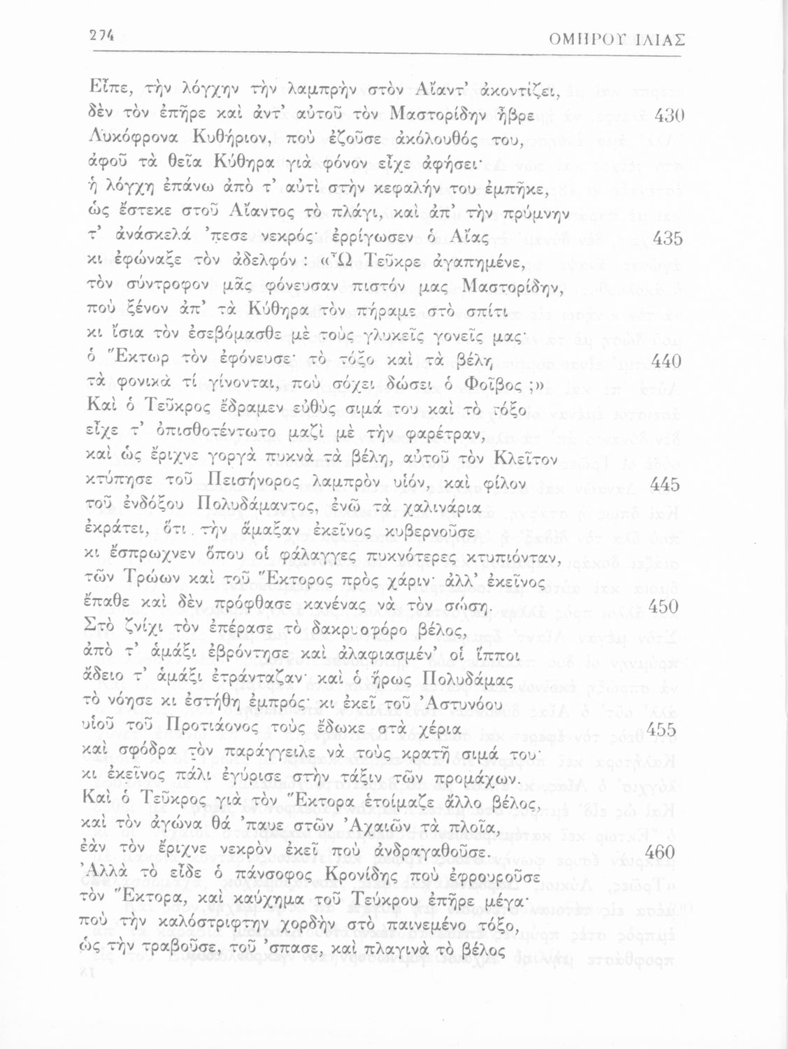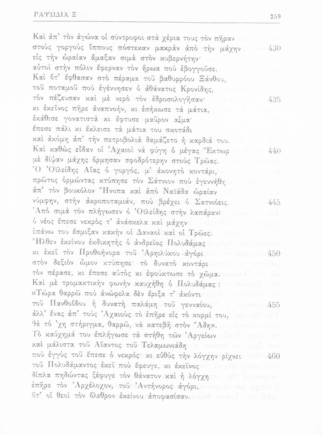 Σχολικό εγχειρίδιο Αρχαίων Ελληνικών. Στο βιβλίο περιλαμβάνεται η Ιλιάδα του Ομήρου σε μετάφραση του Ιάκωβου Πολυλά καθώς και ενδεικτικό Λεξιλόγιο
