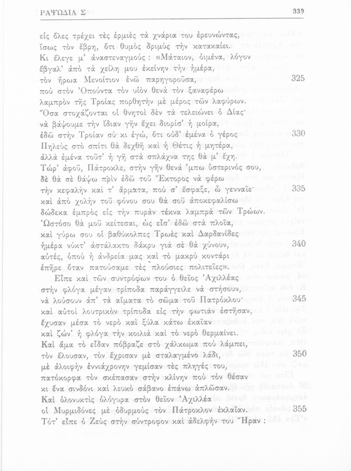 Σχολικό εγχειρίδιο της Δευτεροβάθμιας Εκπαίδευσης για το μάθημα των Αρχαίων Ελληνικών. Πρόκειται για το κείμενο της Ιλιάδας μεταφρασμένο, με πραγματολογικές παρατηρήσεις. Στο τέλος περιλαμβάνει λεξιλόγιο.