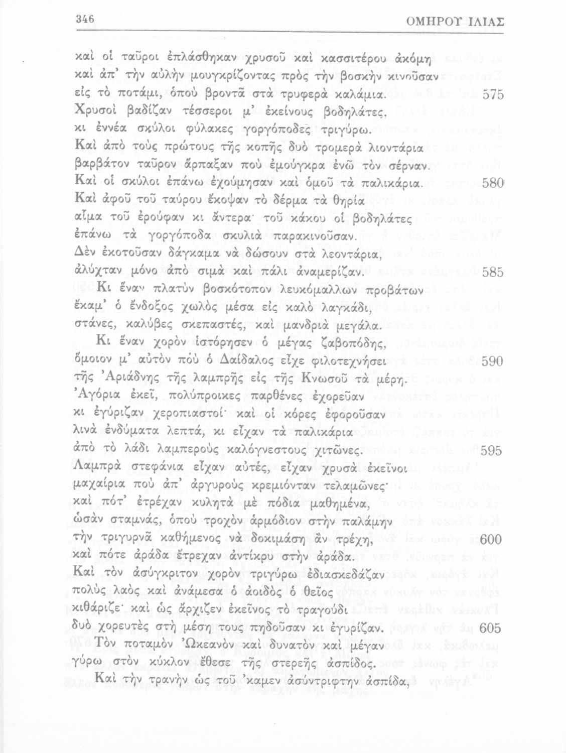 Σχολικό εγχειρίδιο Αρχαίων Ελληνικών Ε΄ Γυμνασίου που περιλαμβάνει αποσπάσματα από την Ιλιάδα, εισαγωγή και ασκήσεις. Περιέχει και παράρτημα εικόνων.