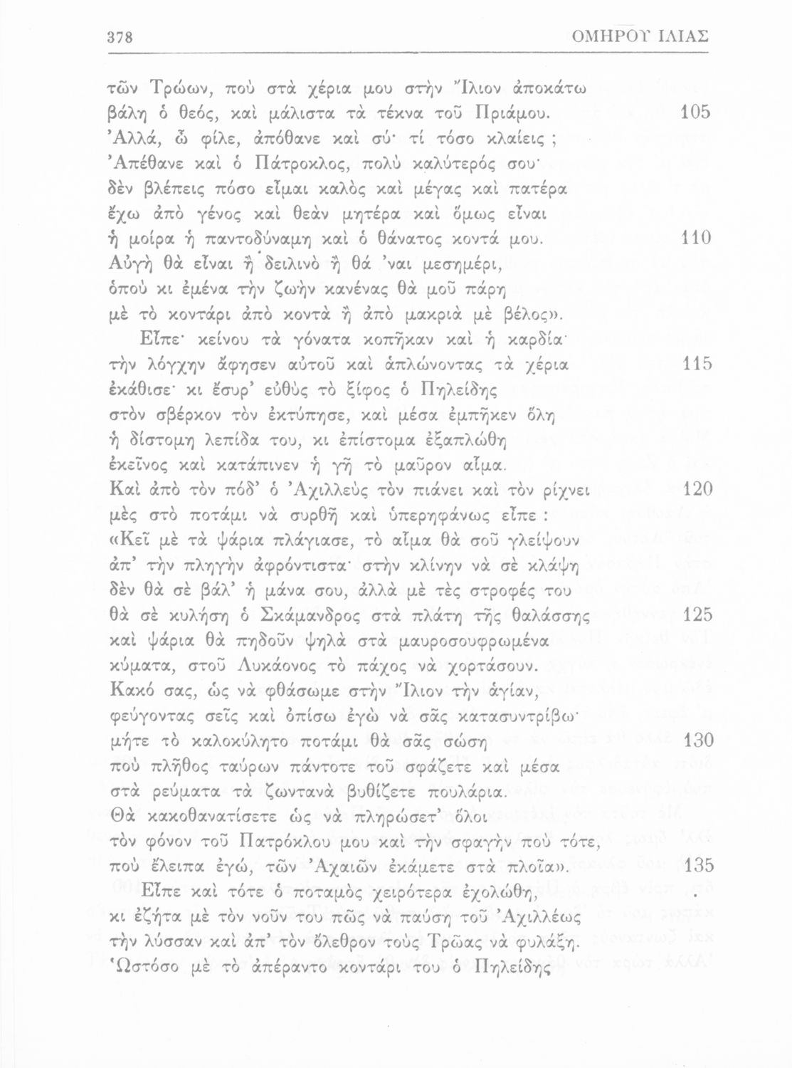 Σχολικό εγχειρίδιο της Δευτεροβάθμιας Εκπαίδευσης για το μάθημα των Αρχαίων Ελληνικών. Πρόκειται για το κείμενο της Ιλιάδας μεταφρασμένο, με πραγματολογικές παρατηρήσεις. Στο τέλος περιλαμβάνει λεξιλόγιο.