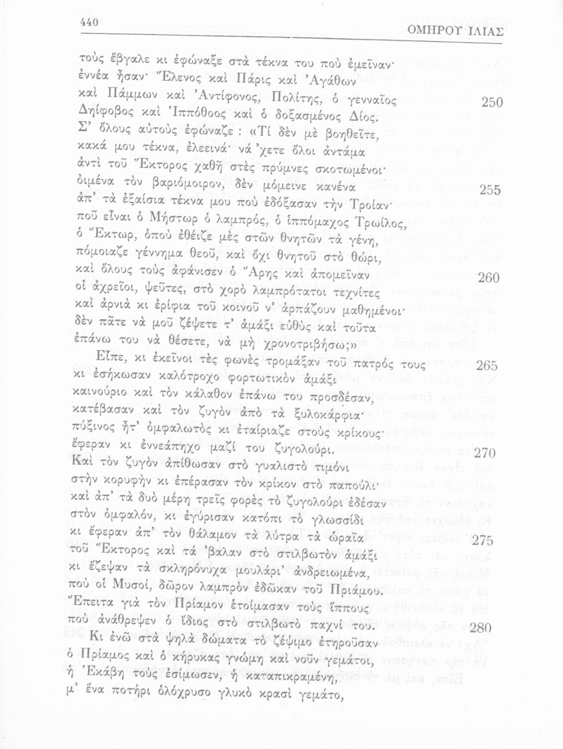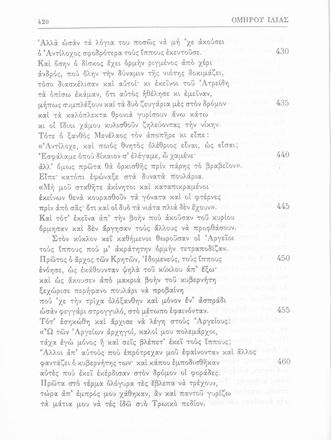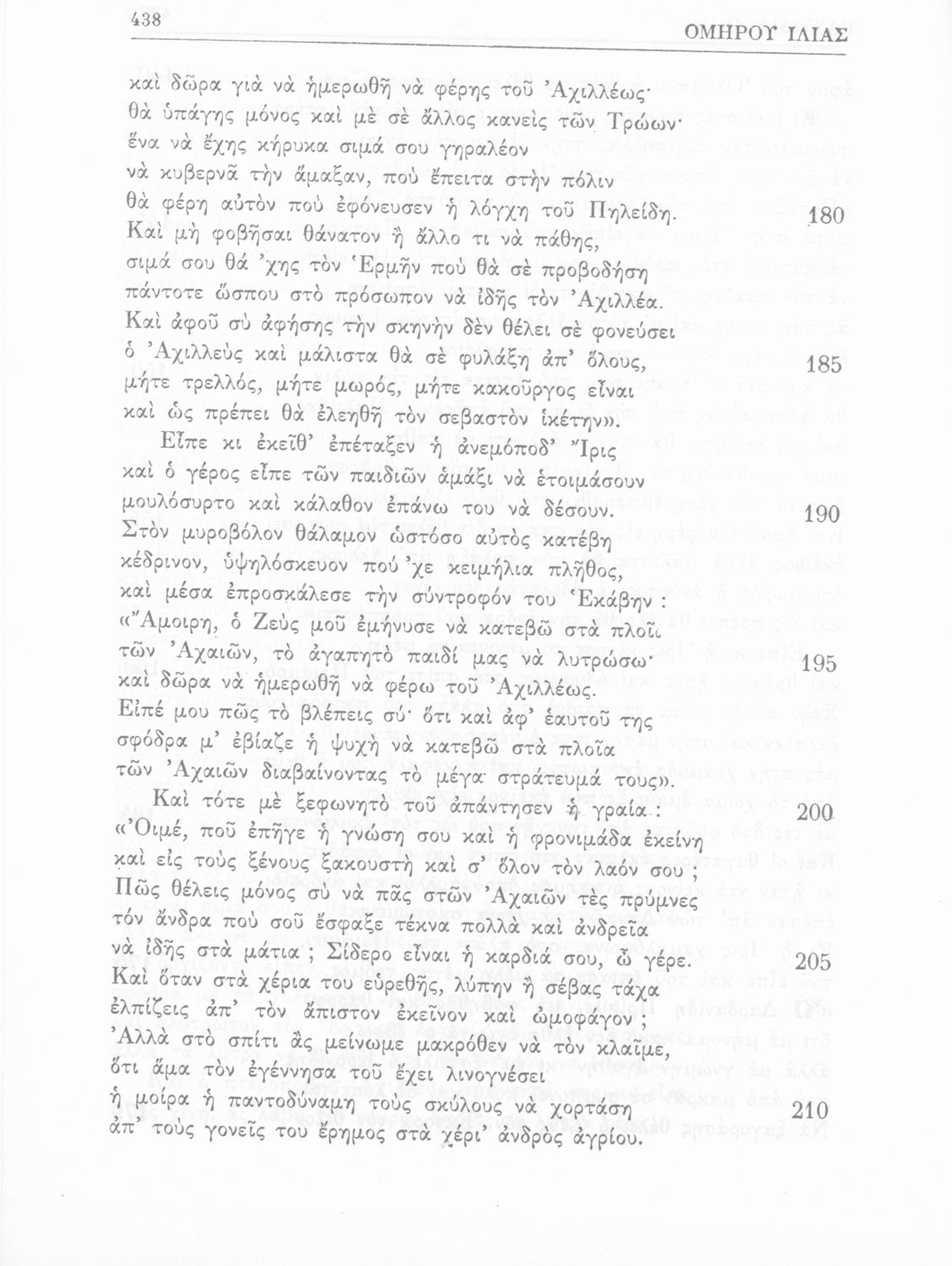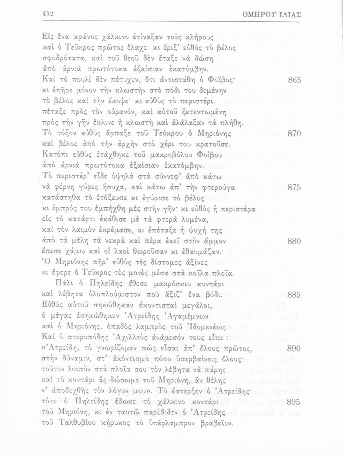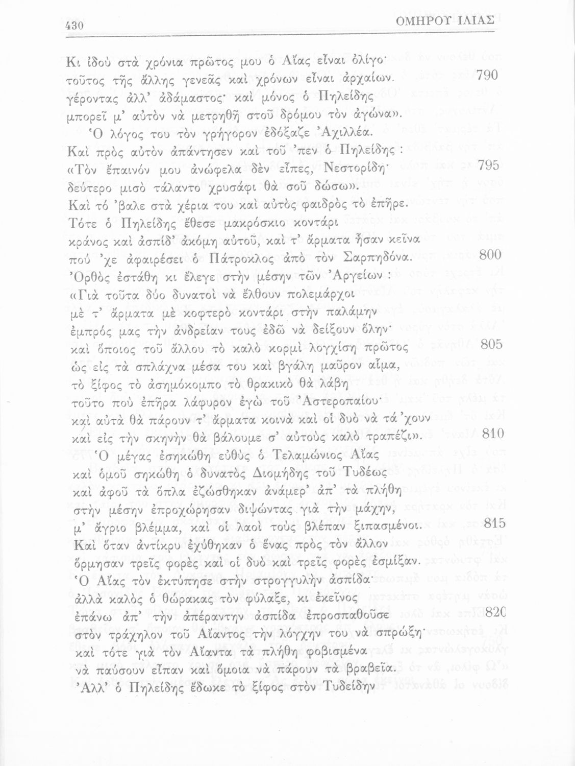 Σχολικό εγχειρίδιο Αρχαίων Ελληνικών. Στο βιβλίο περιλαμβάνεται η Ιλιάδα του Ομήρου σε μετάφραση του Ιάκωβου Πολυλά καθώς και ενδεικτικό Λεξιλόγιο