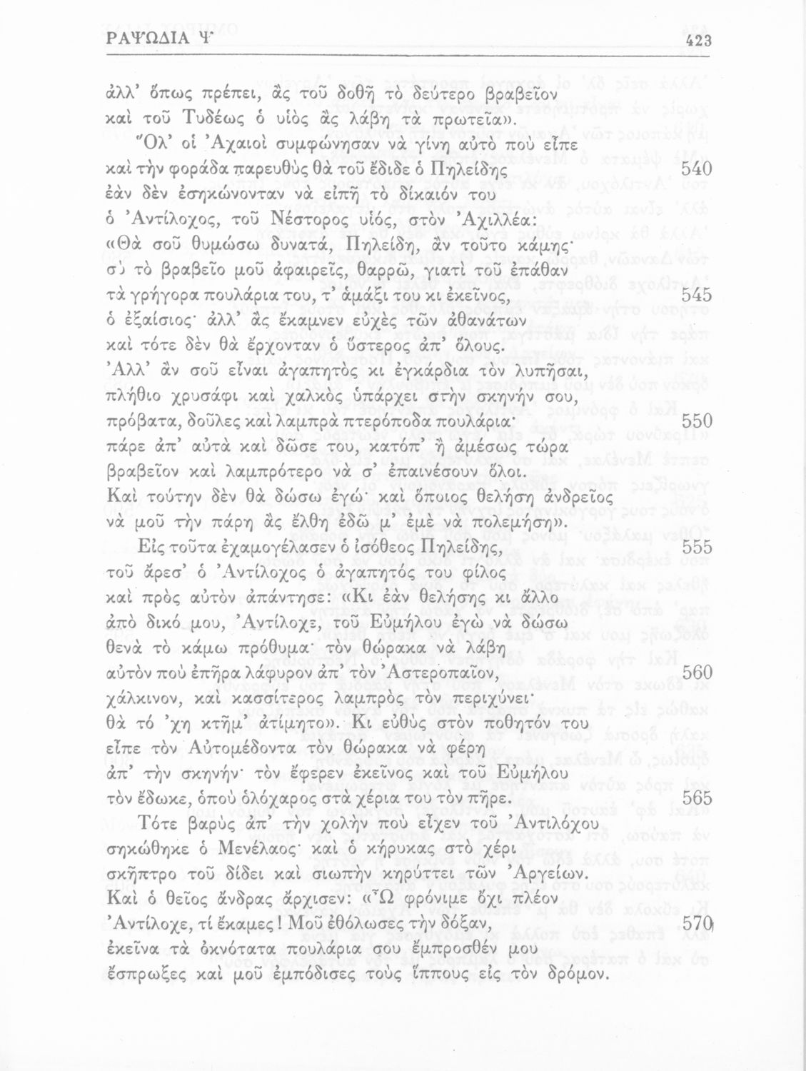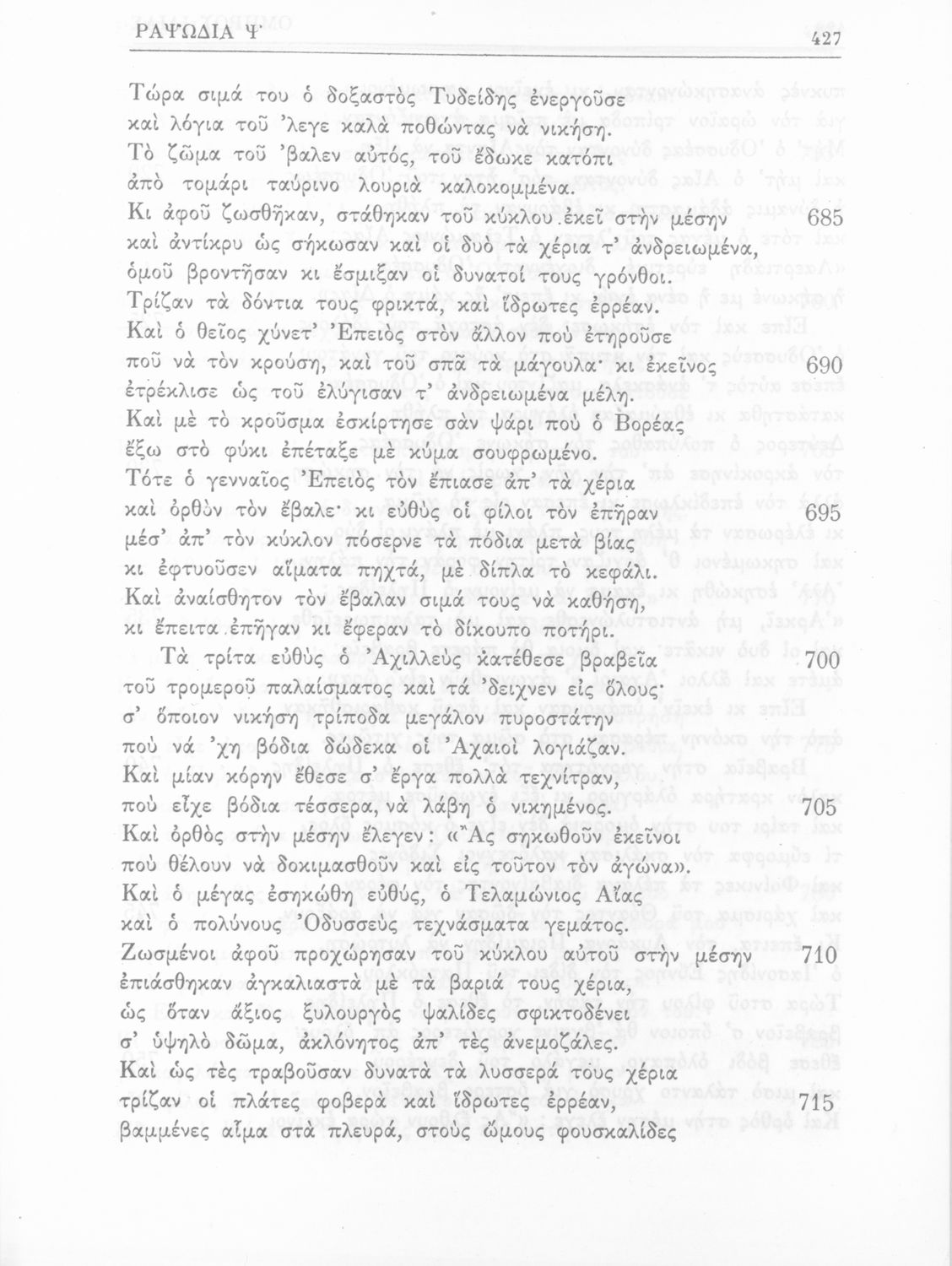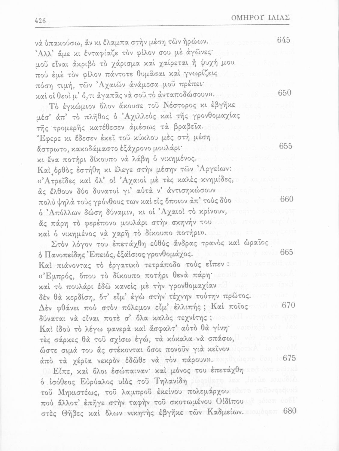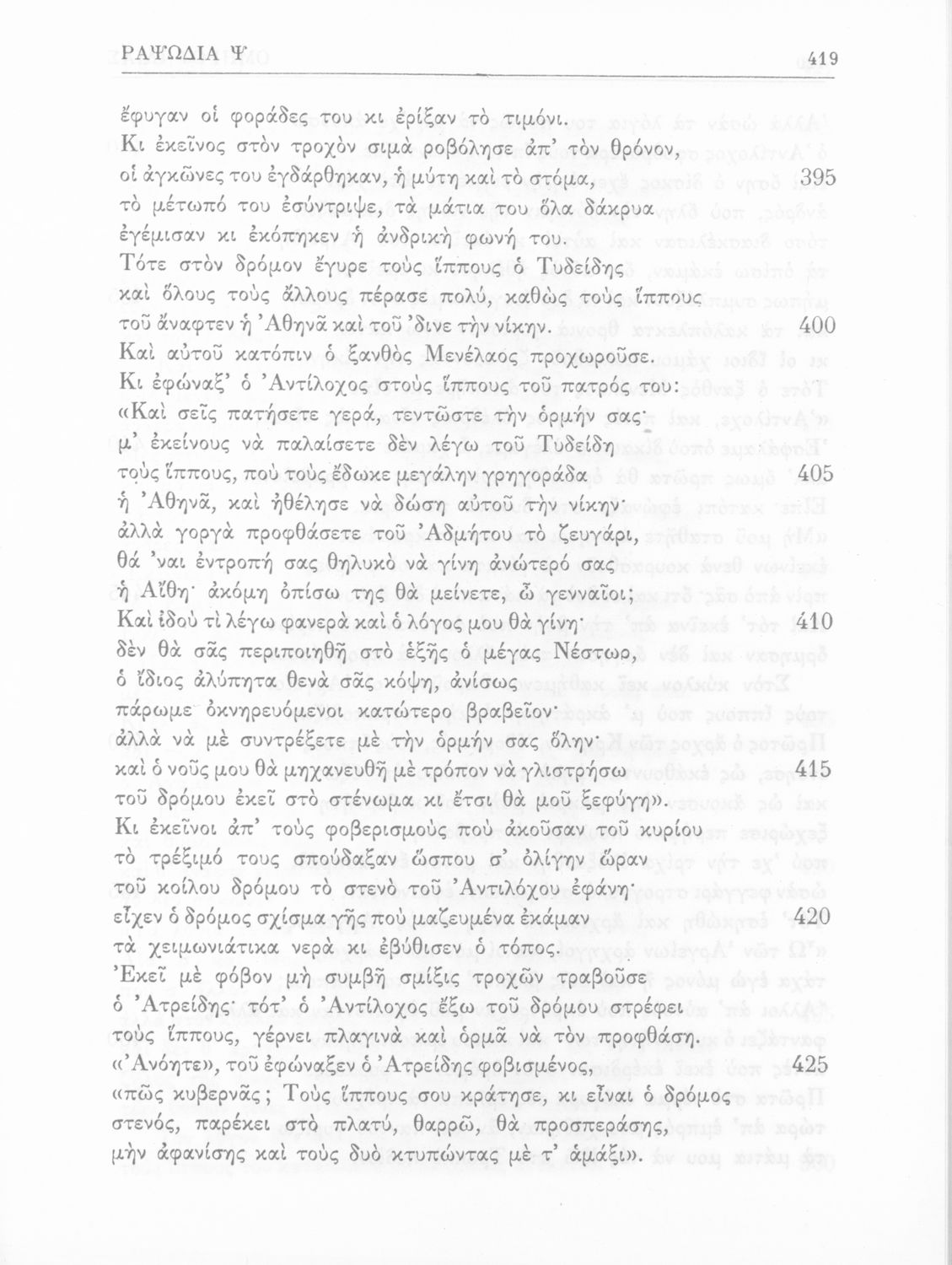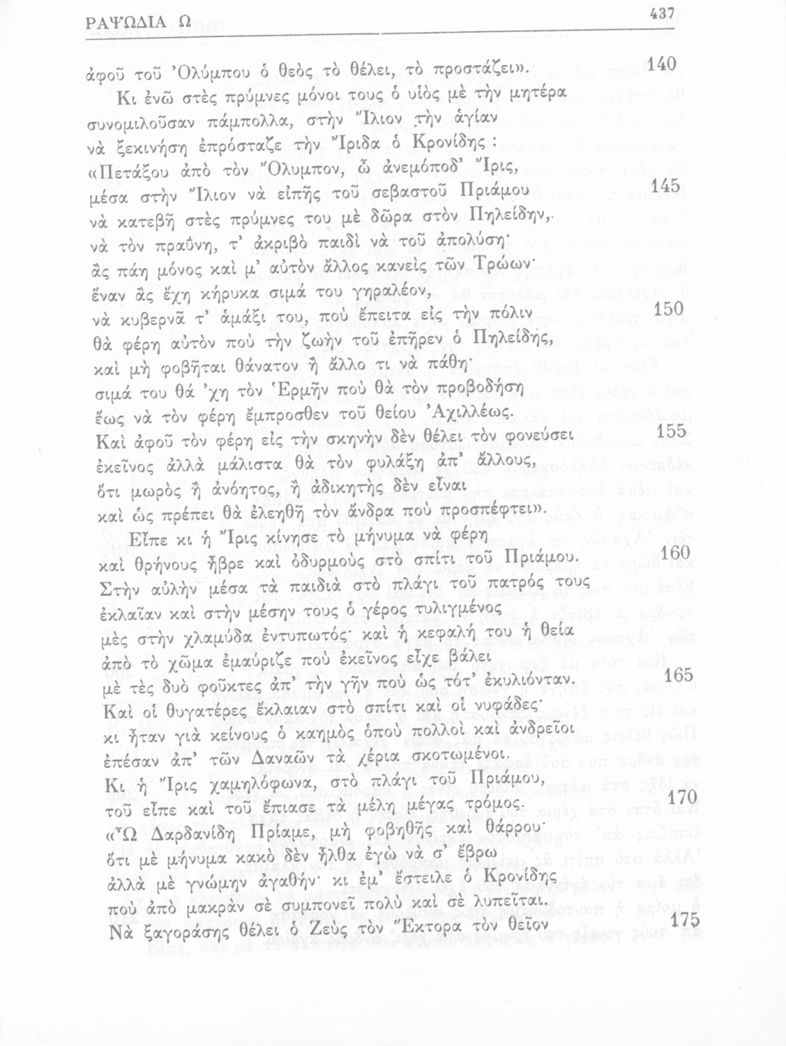 Σχολικό εγχειρίδιο Αρχαίων Ελληνικών. Στο βιβλίο περιλαμβάνεται η Ιλιάδα του Ομήρου σε μετάφραση του Ιάκωβου Πολυλά καθώς και ενδεικτικό Λεξιλόγιο