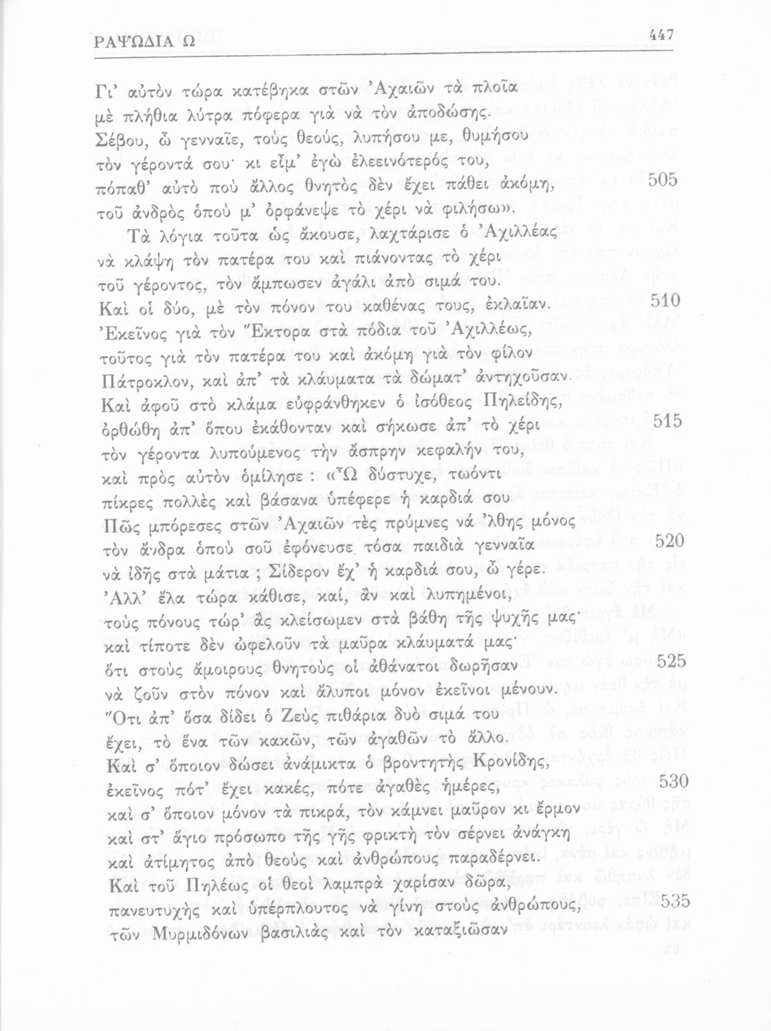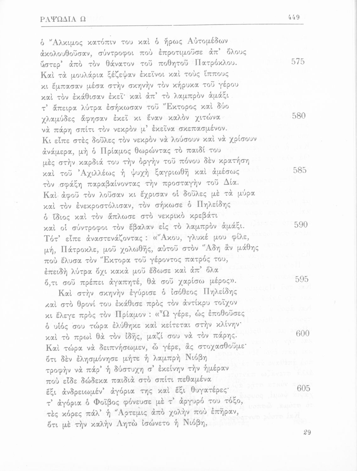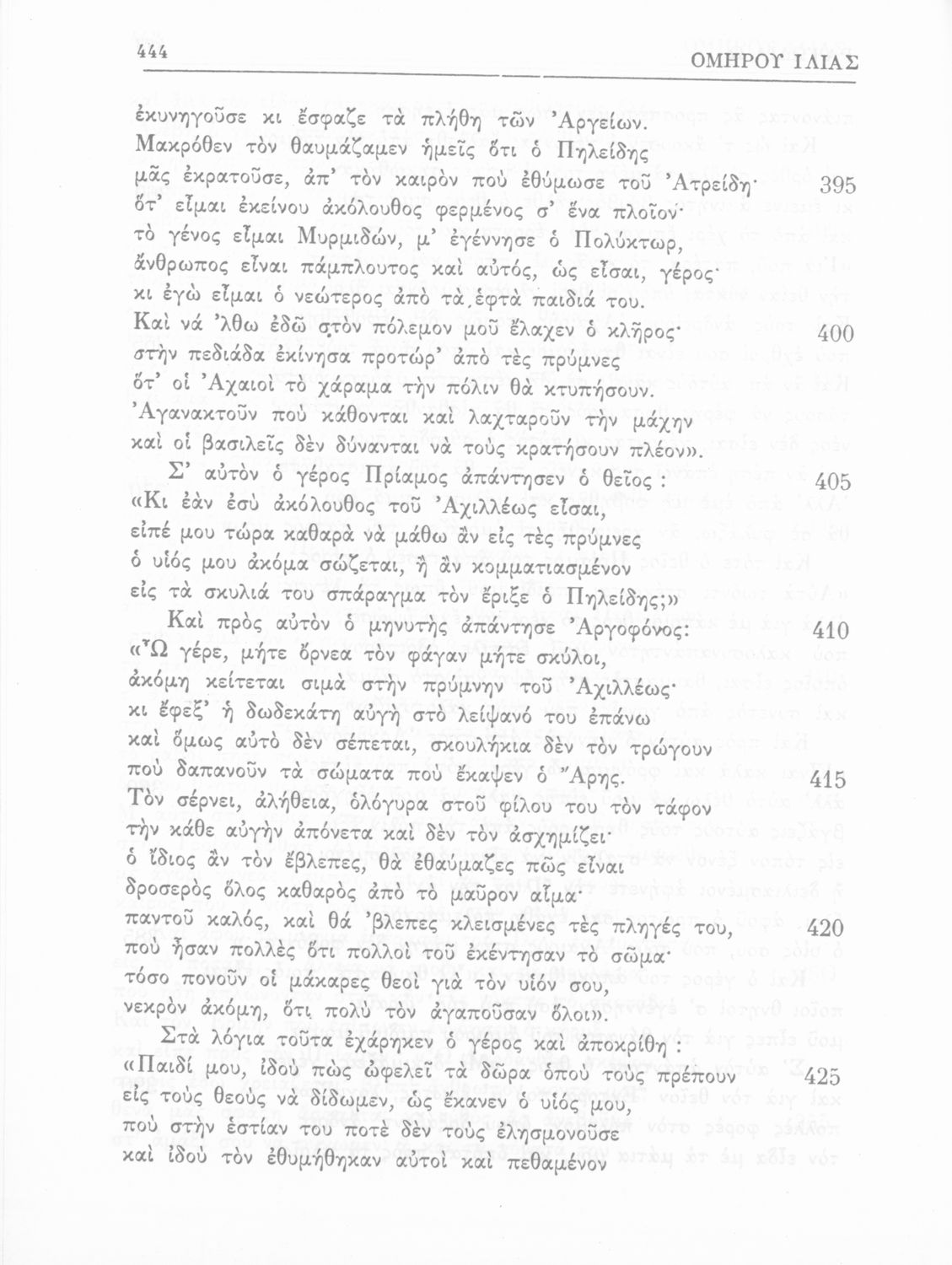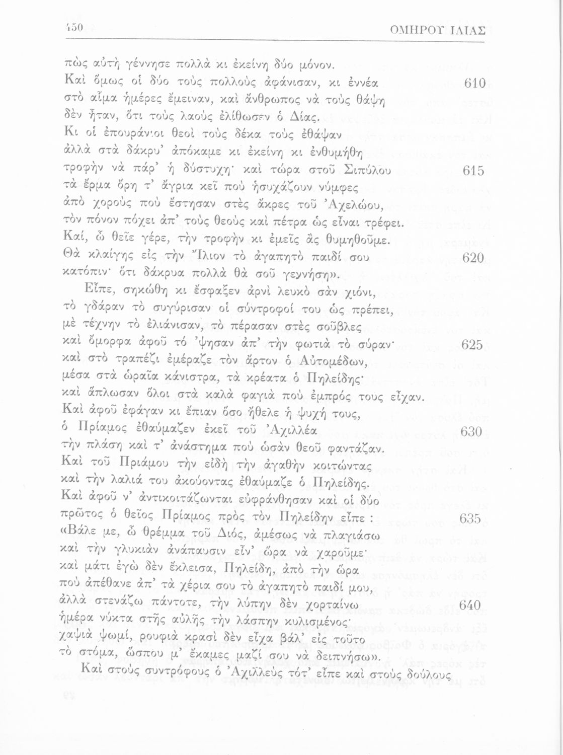 Σχολικό εγχειρίδιο Αρχαίων Ελληνικών. Στο βιβλίο περιλαμβάνεται η Ιλιάδα του Ομήρου σε μετάφραση του Ιάκωβου Πολυλά καθώς και ενδεικτικό Λεξιλόγιο