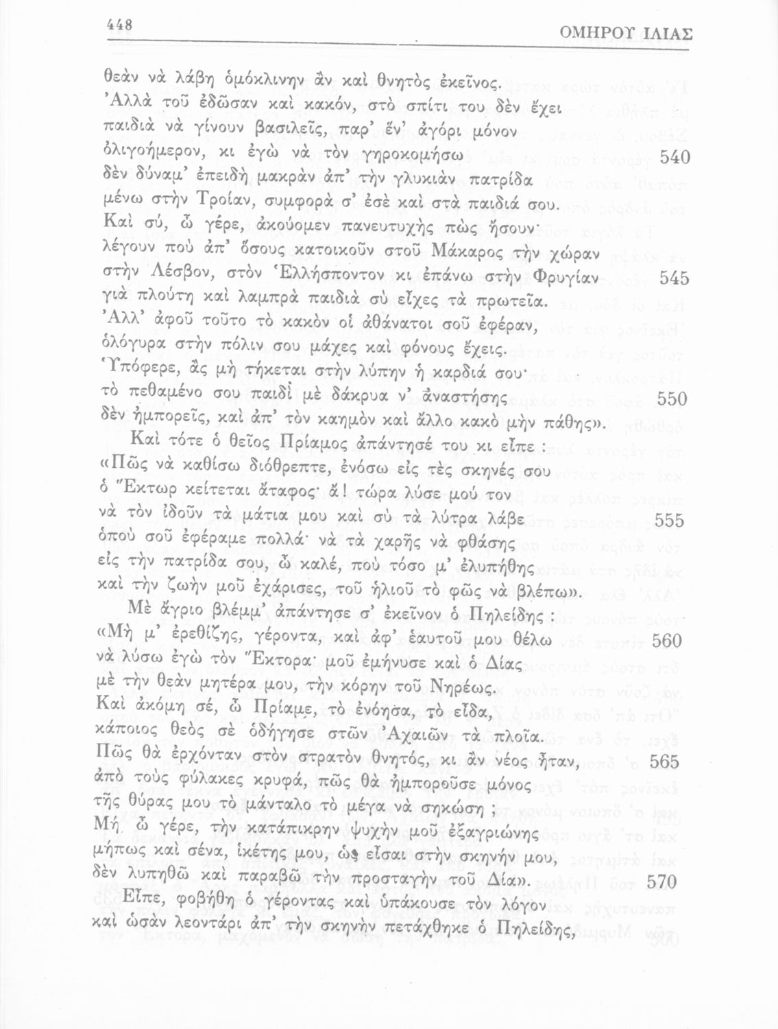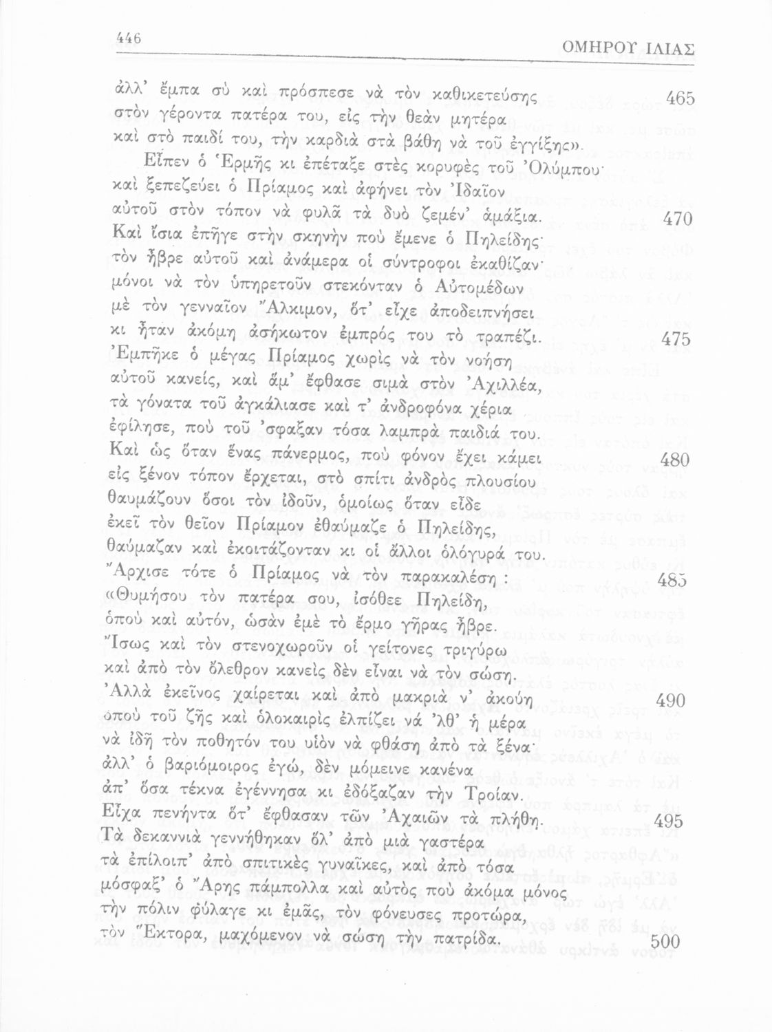 Σχολικό εγχειρίδιο της Δευτεροβάθμιας Εκπαίδευσης για το μάθημα των Αρχαίων Ελληνικών. Πρόκειται για το κείμενο της Ιλιάδας μεταφρασμένο, με πραγματολογικές παρατηρήσεις. Στο τέλος περιλαμβάνει λεξιλόγιο.