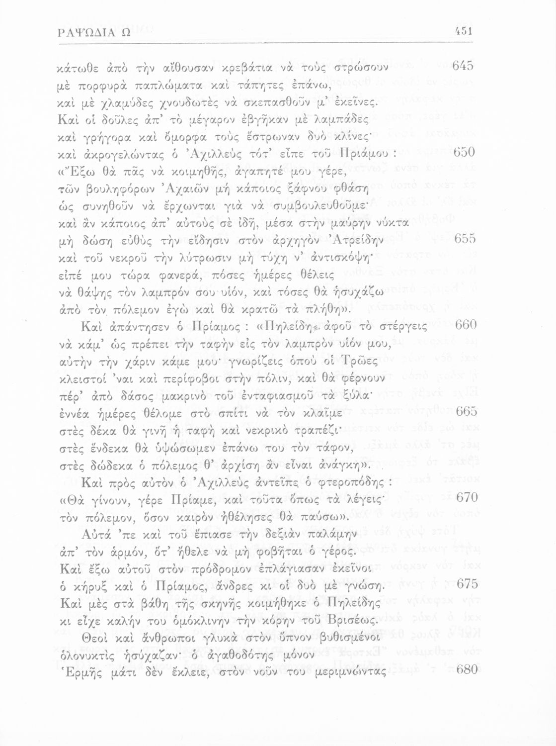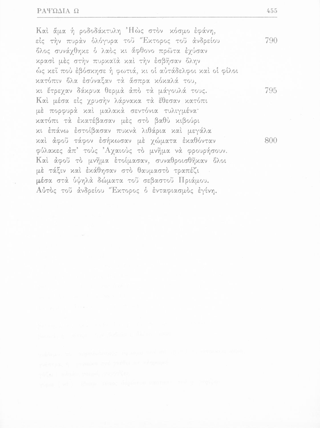 Μαθητικό βοήθημα του Ελληνικού Σχολείου, των Παρθεναγωγείων και του Γυμνασίου για το μάθημα των Αρχαίων Ελληνικών. Περιέχει τις ραψωδίες Ο, Π, Ρ, Σ, Τ, Χ, ψ, Ω από το πρωτότυπο με σχόλια και ερμηνευτικές ...