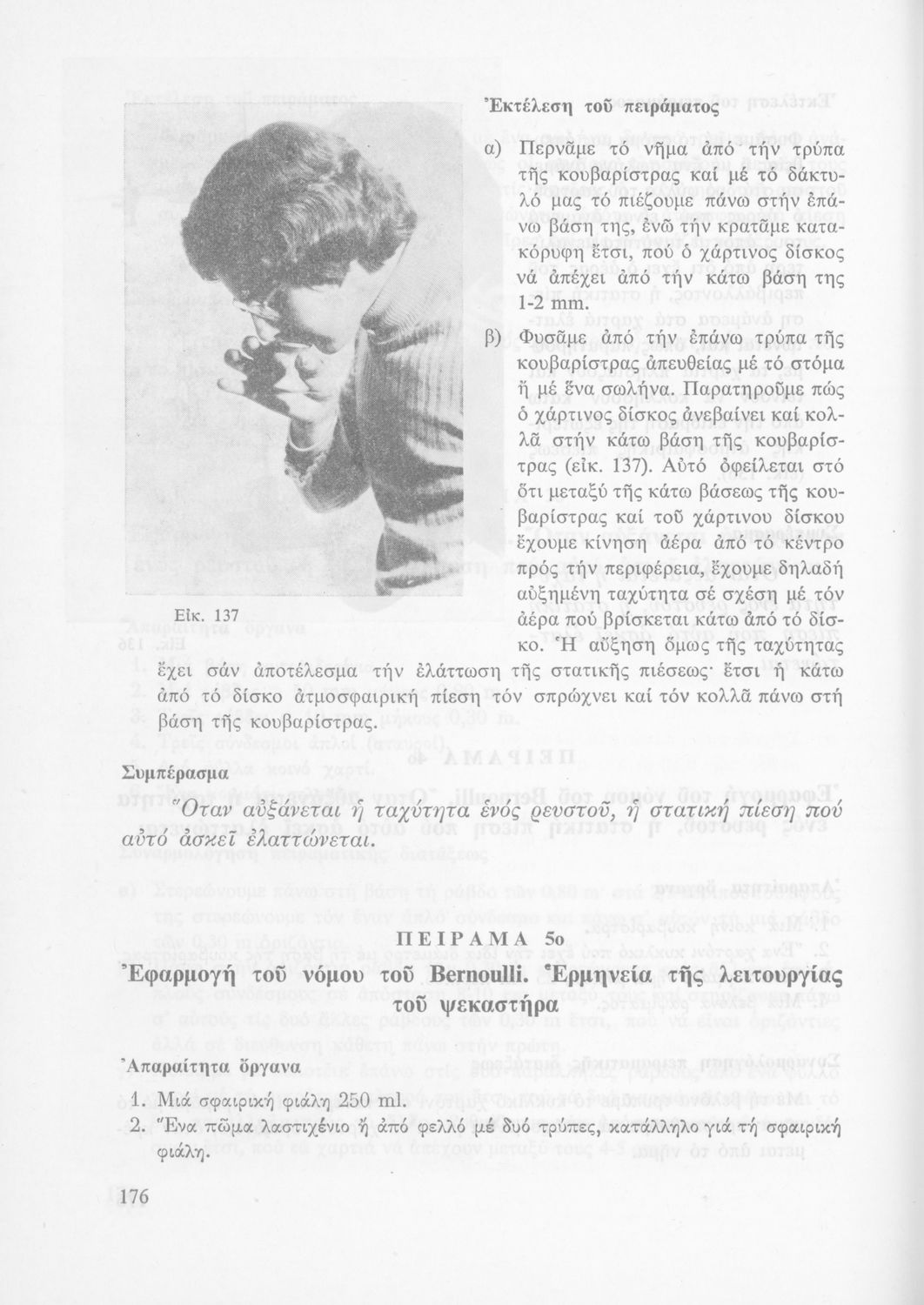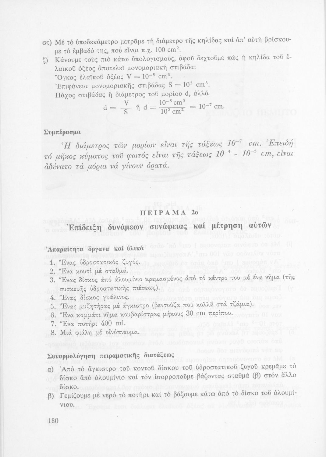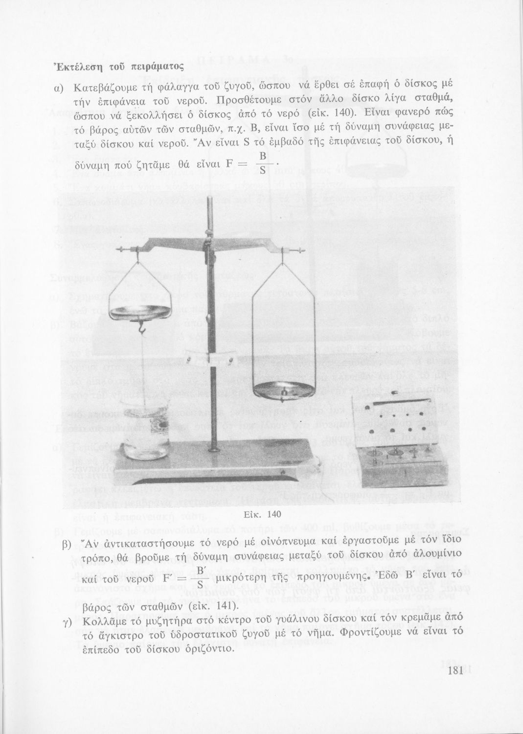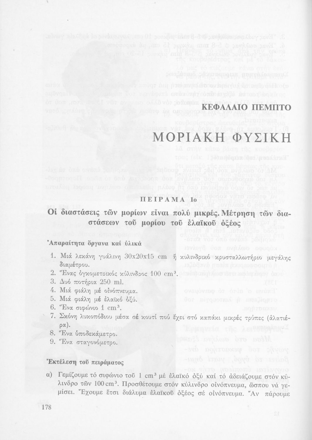 Παρουσίαση περιεχομένου: Σχολικό εγχειρίδιο Φυσικής που περιλαμβάνει πειράματα στον τομέα της μηχανικής και των κινήσεων στερεών και υγρών σωμάτων καθώς και πειράματα που μελετούν την μεταβολή των σωμάτων αυτών στις αλλαγές της θερμοκρασίας.