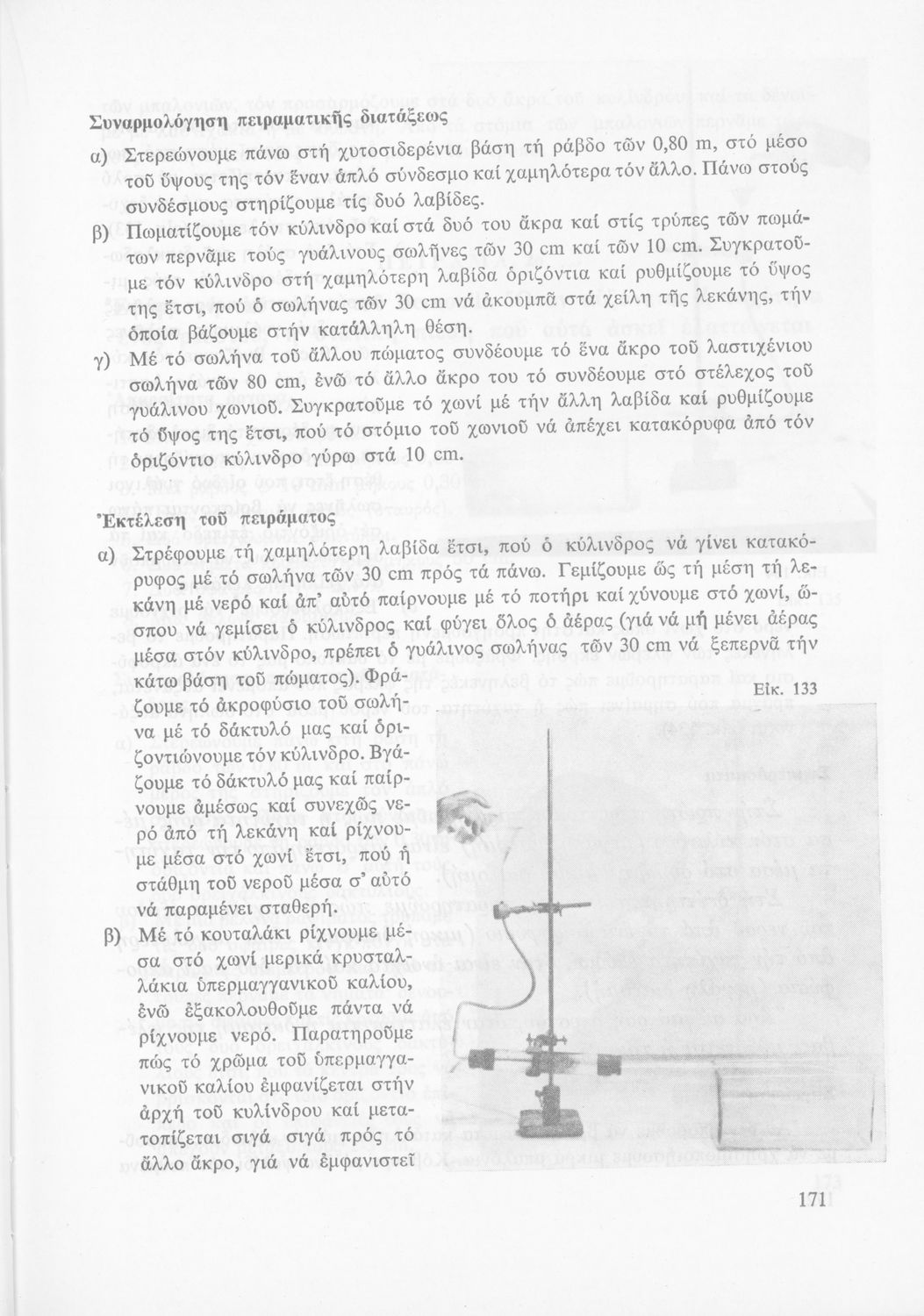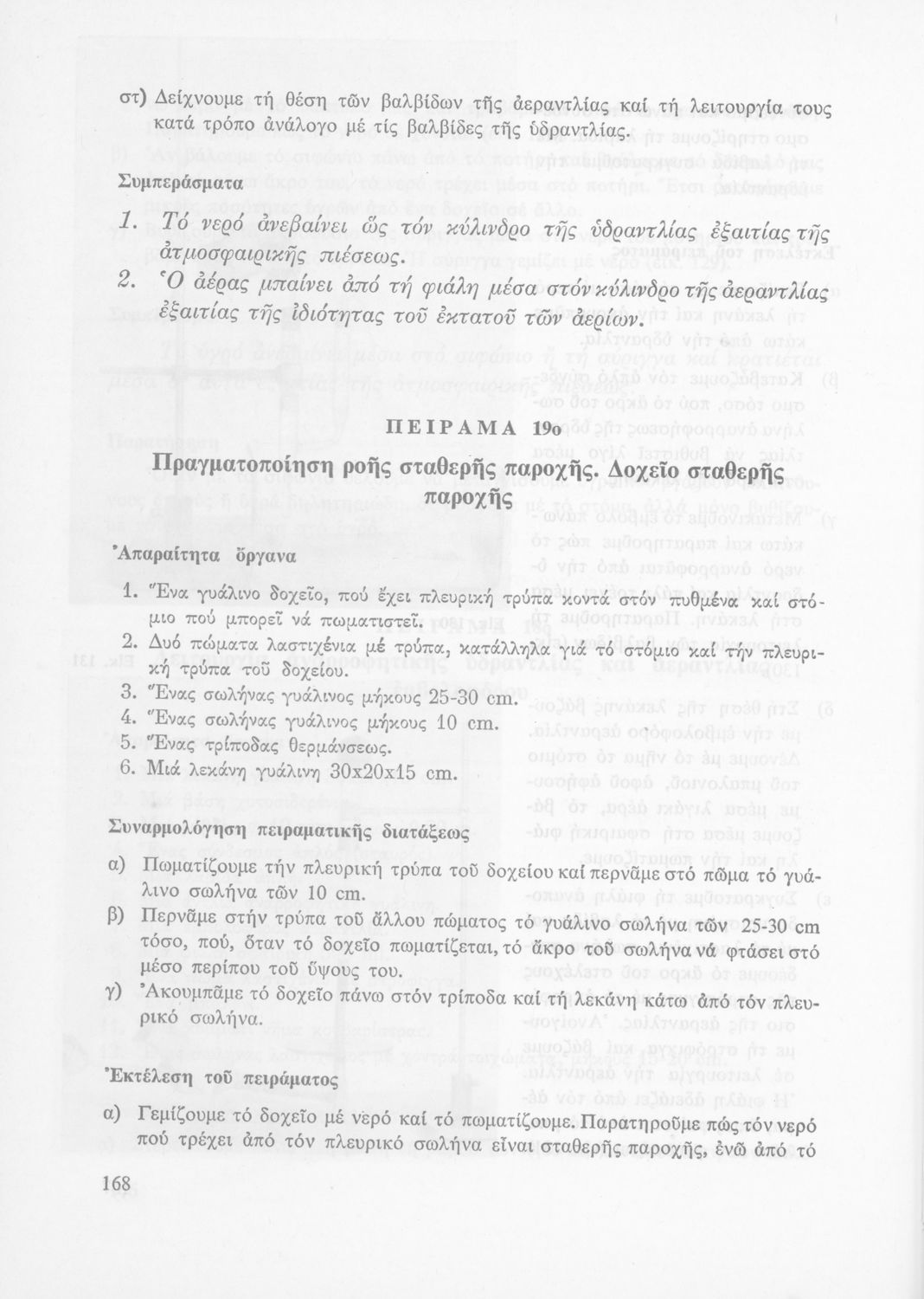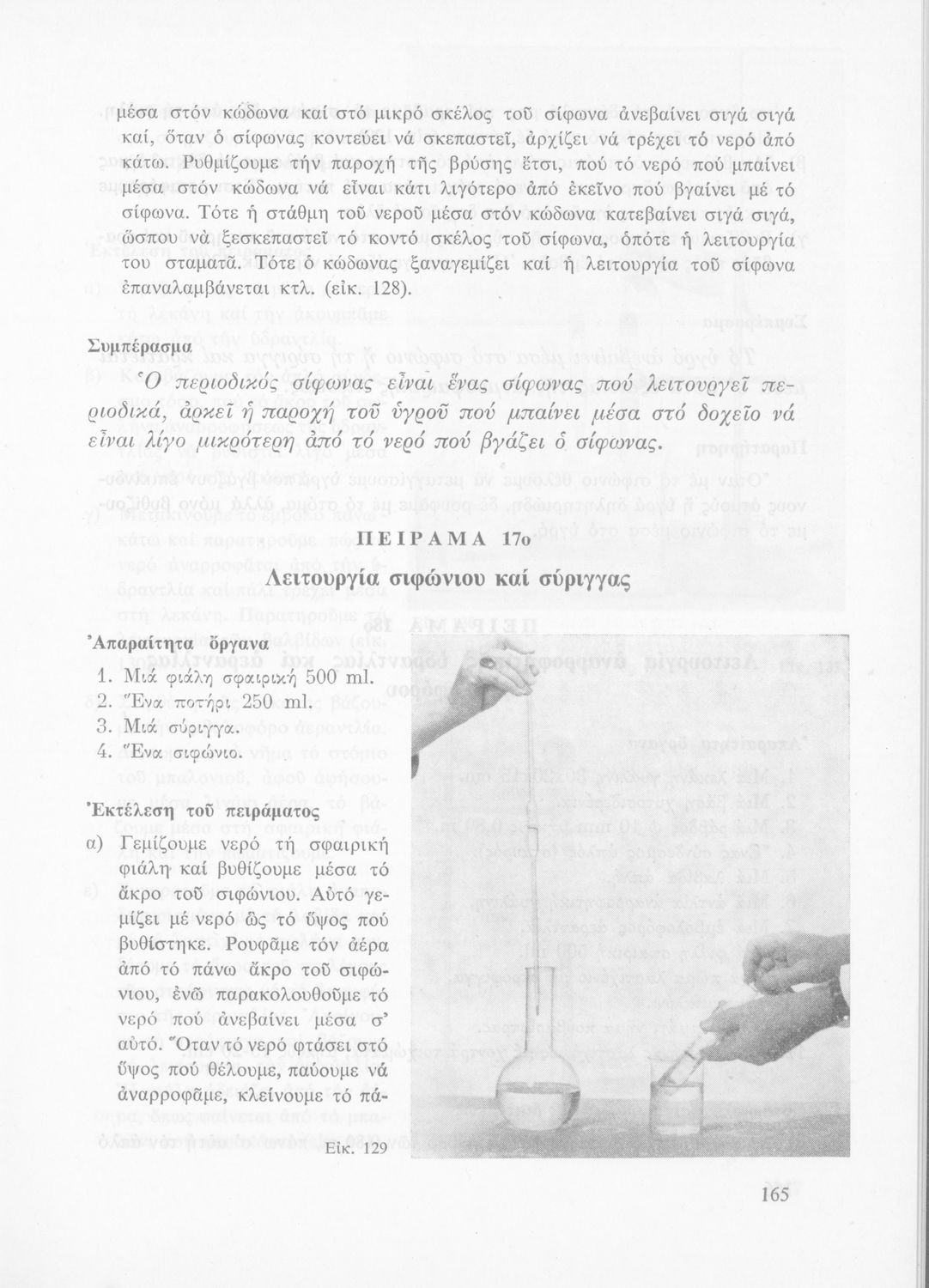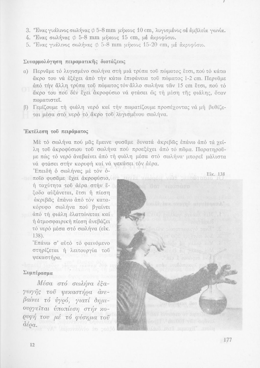 Παρουσίαση περιεχομένου: Σχολικό εγχειρίδιο Φυσικής που περιλαμβάνει πειράματα στον τομέα της μηχανικής και των κινήσεων στερεών και υγρών σωμάτων καθώς και πειράματα που μελετούν την μεταβολή των σωμάτων αυτών στις αλλαγές της θερμοκρασίας.