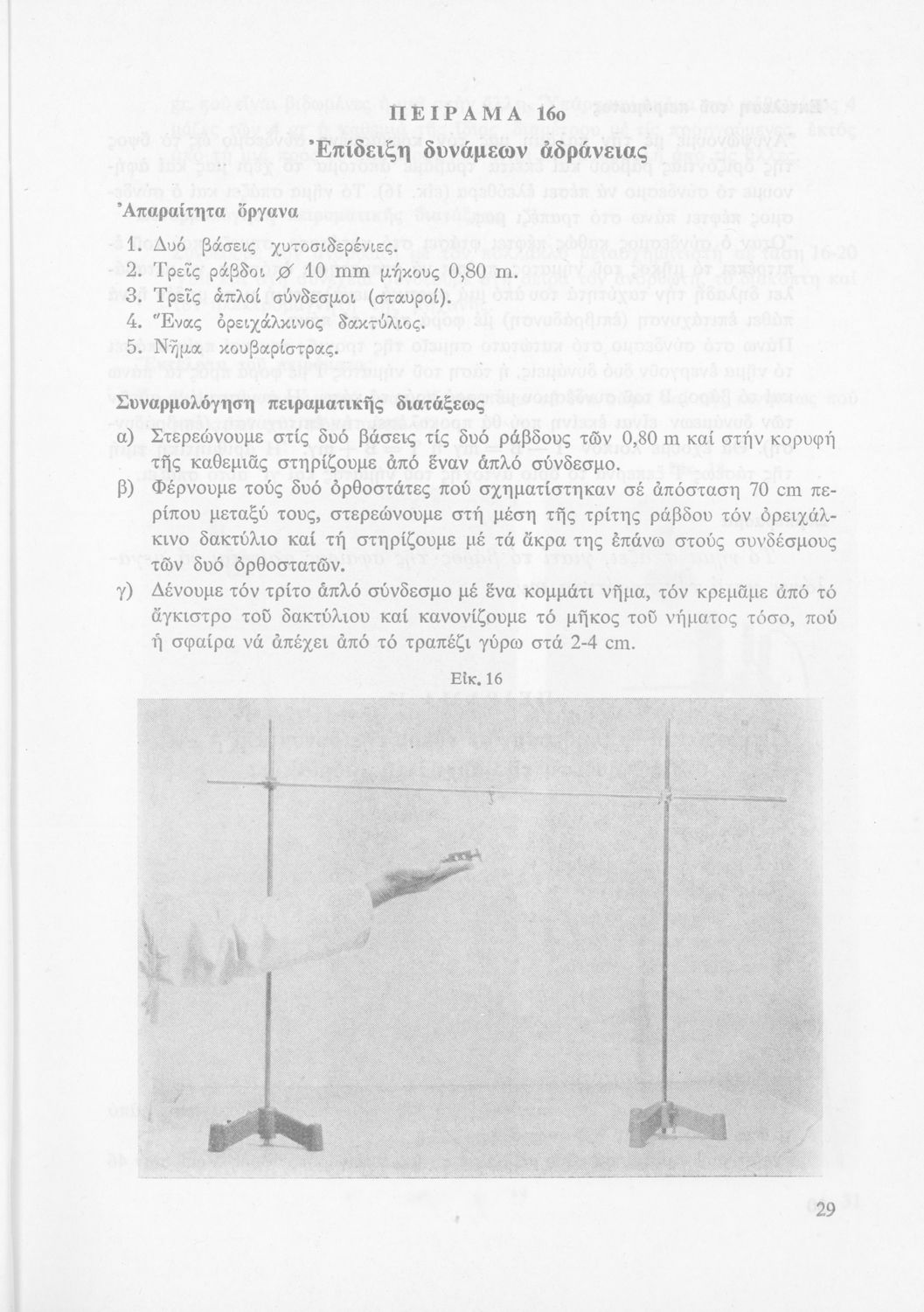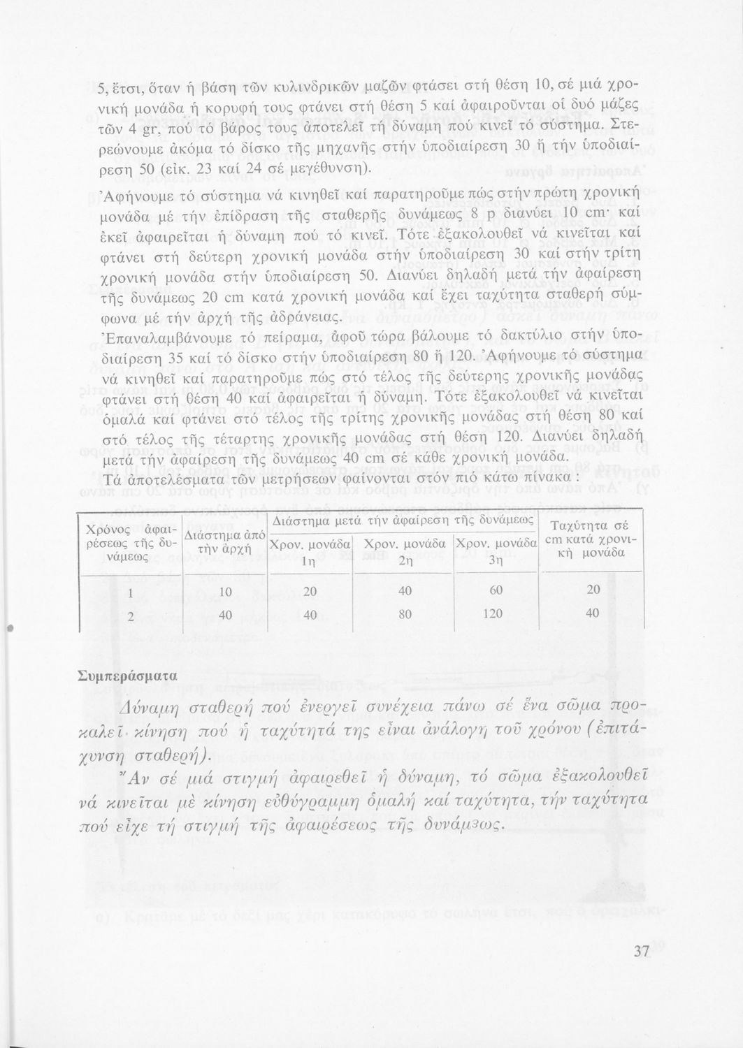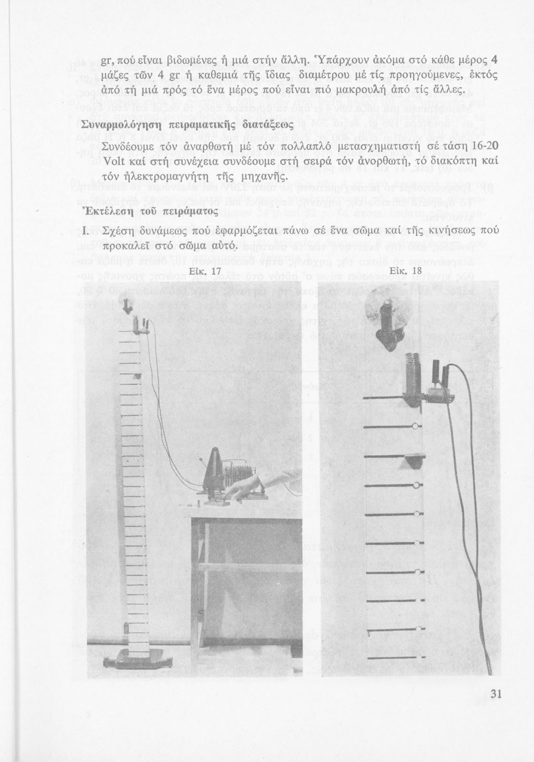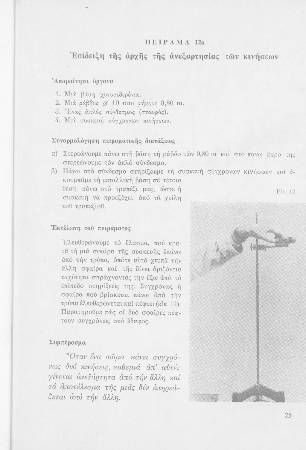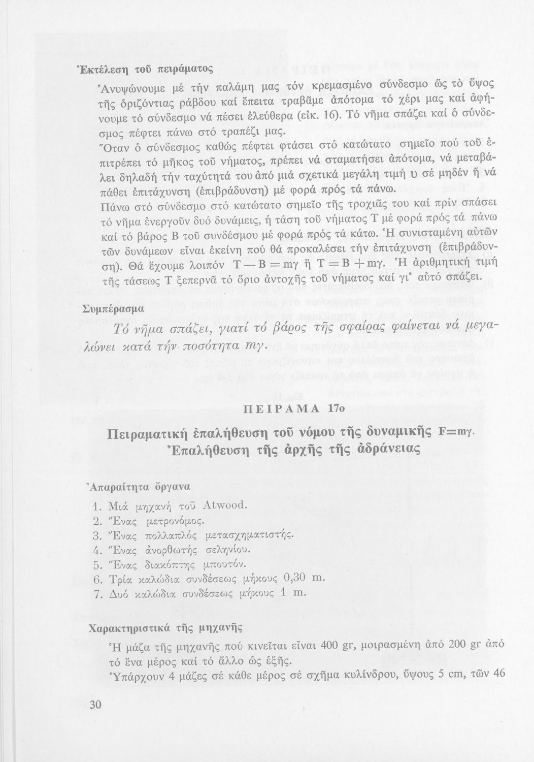 Παρουσίαση περιεχομένου: Σχολικό εγχειρίδιο Φυσικής που περιλαμβάνει πειράματα στον τομέα της μηχανικής και των κινήσεων στερεών και υγρών σωμάτων καθώς και πειράματα που μελετούν την μεταβολή των σωμάτων αυτών στις αλλαγές της θερμοκρασίας.