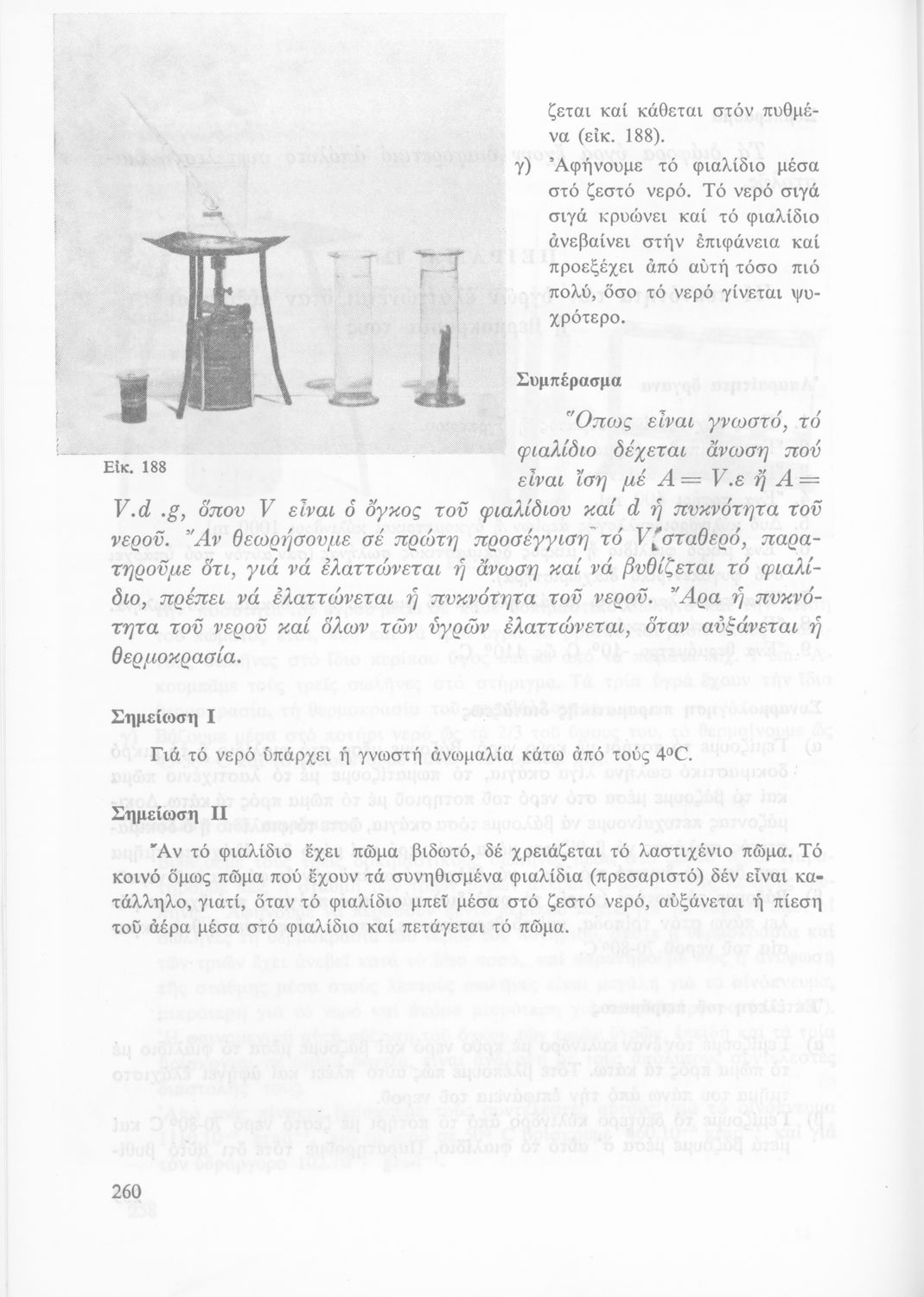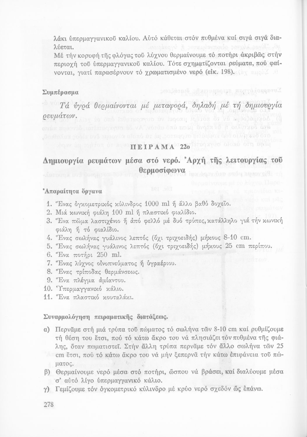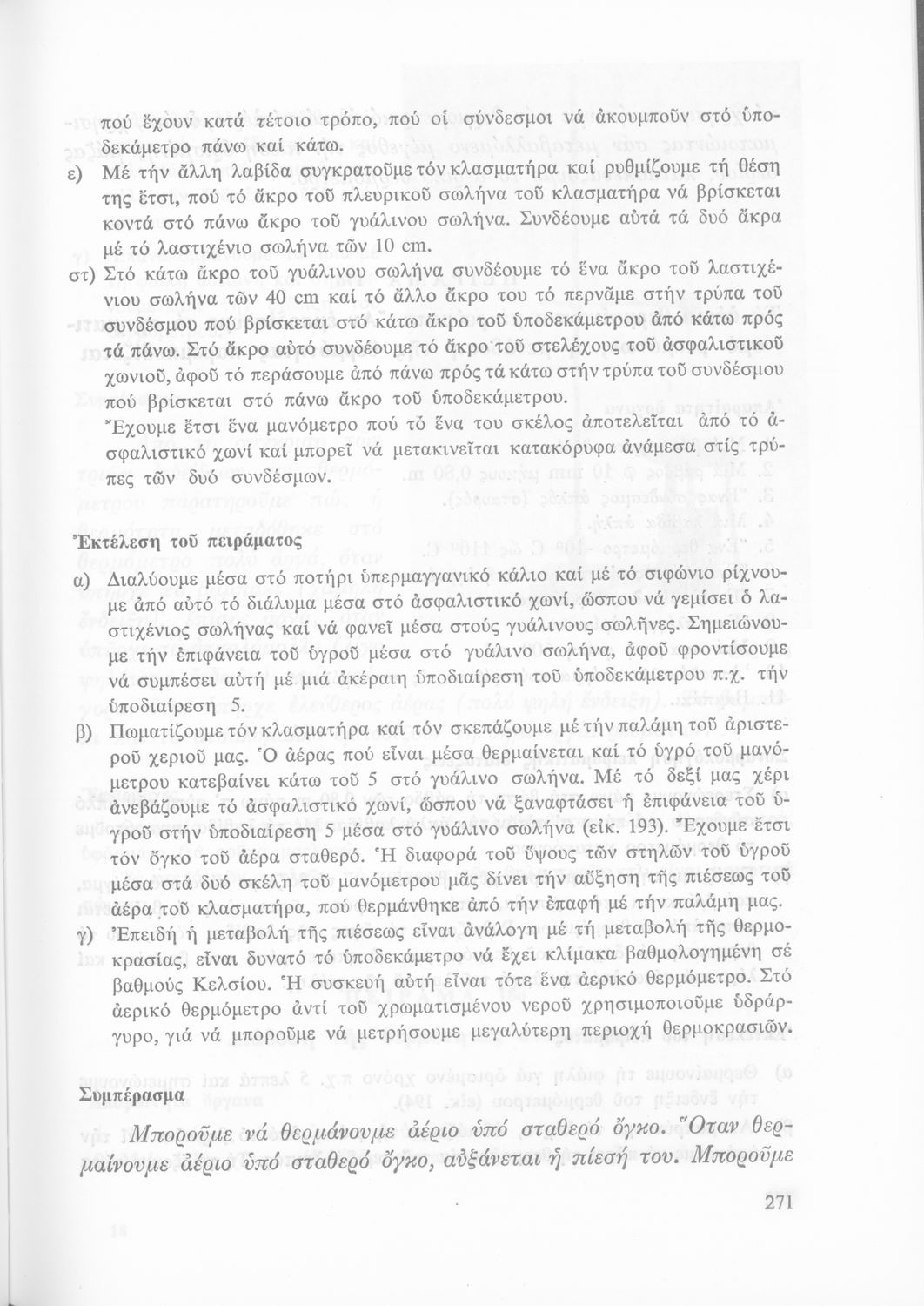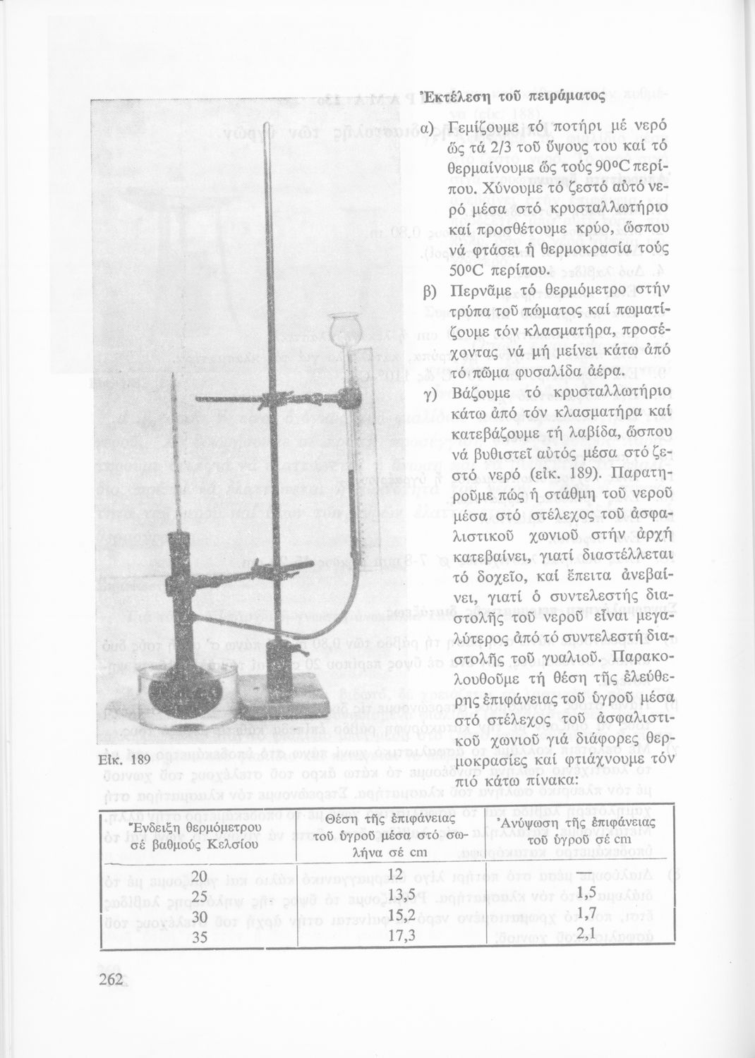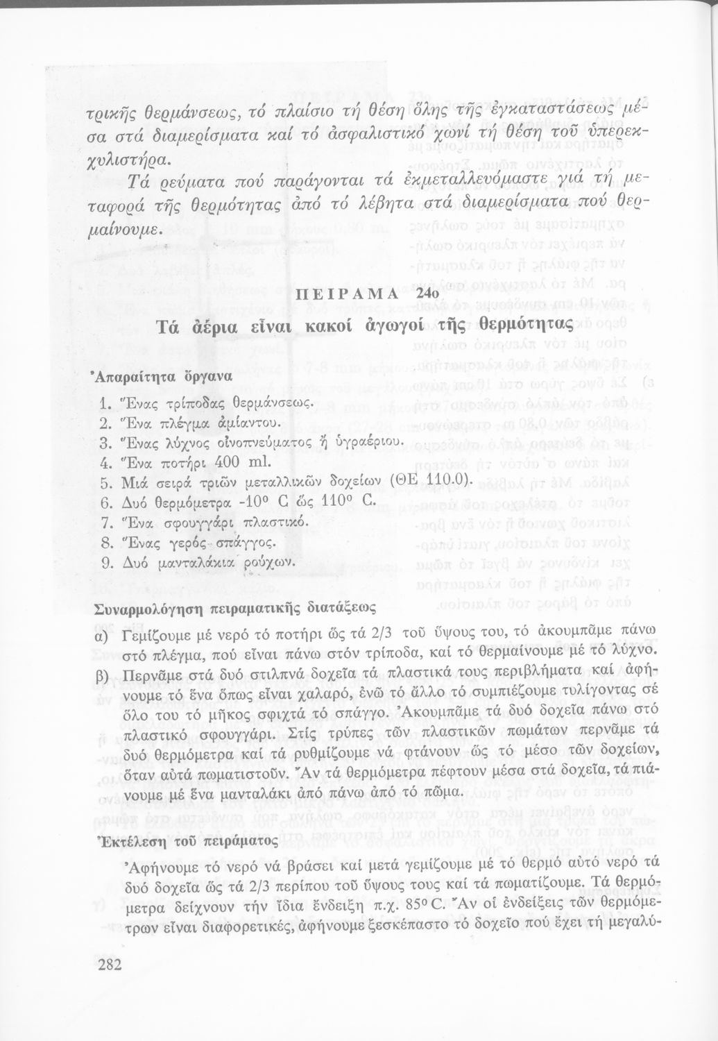 Παρουσίαση περιεχομένου: Σχολικό εγχειρίδιο Φυσικής που περιλαμβάνει πειράματα στον τομέα της μηχανικής και των κινήσεων στερεών και υγρών σωμάτων καθώς και πειράματα που μελετούν την μεταβολή των σωμάτων αυτών στις αλλαγές της θερμοκρασίας.
