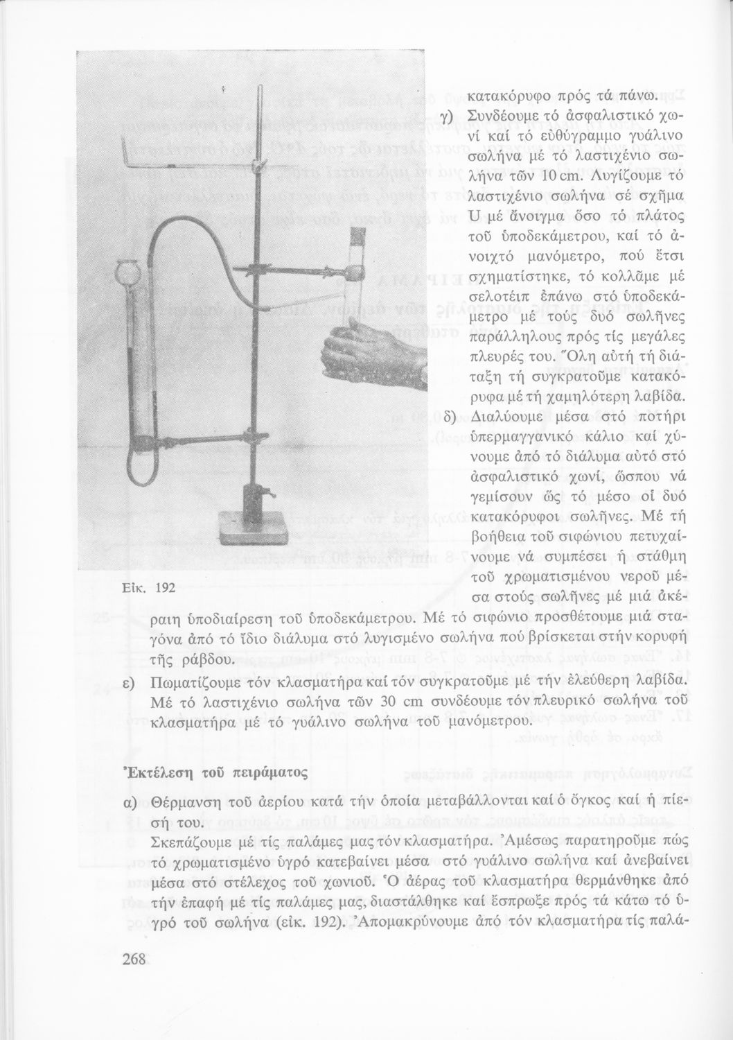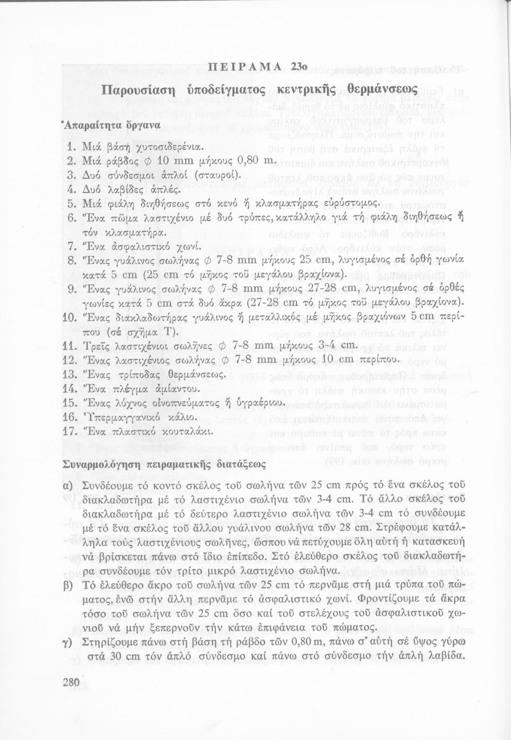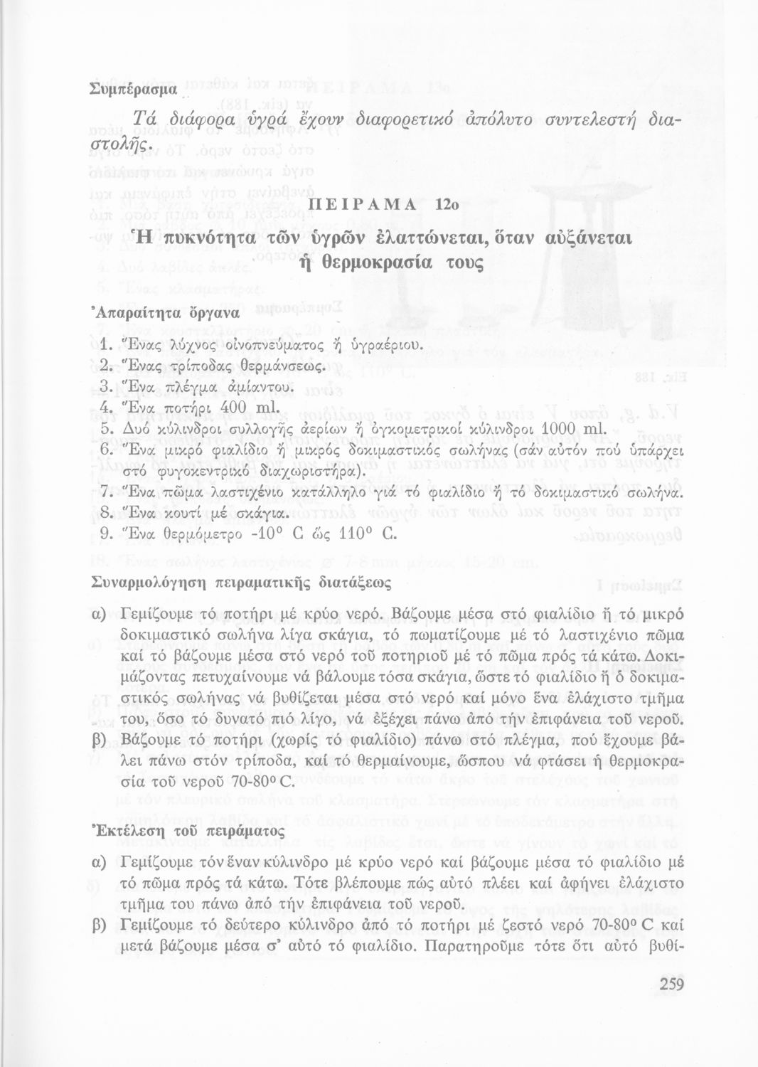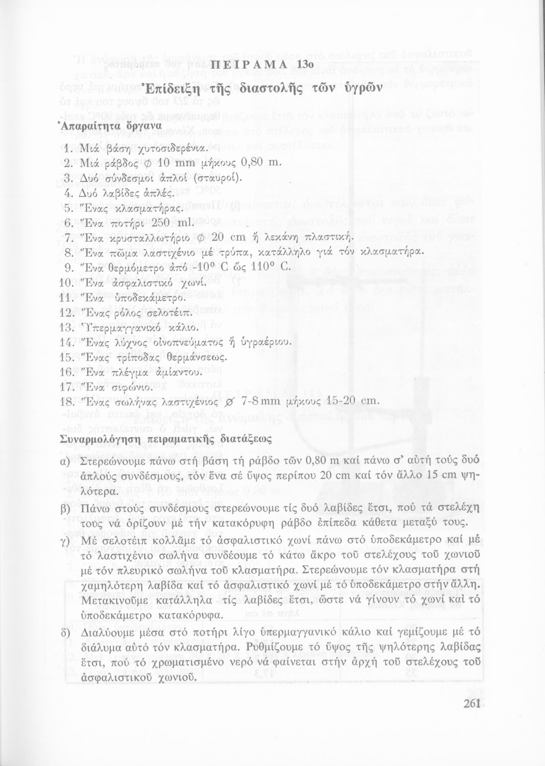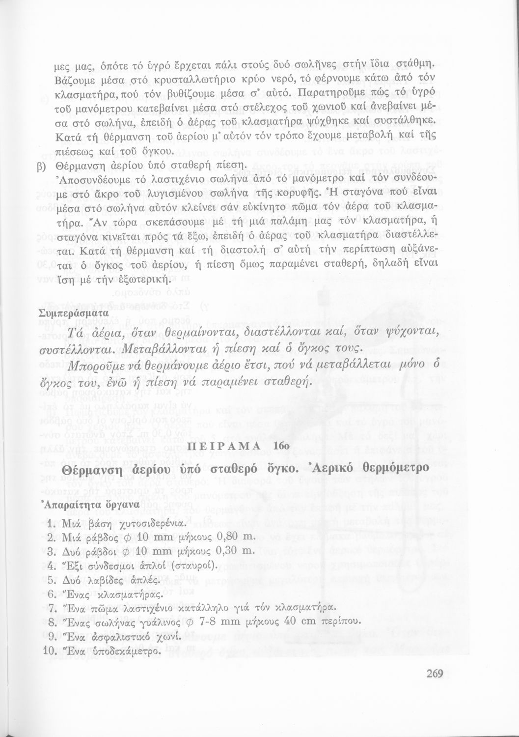 Παρουσίαση περιεχομένου: Σχολικό εγχειρίδιο Φυσικής που περιλαμβάνει πειράματα στον τομέα της μηχανικής και των κινήσεων στερεών και υγρών σωμάτων καθώς και πειράματα που μελετούν την μεταβολή των σωμάτων αυτών στις αλλαγές της θερμοκρασίας.