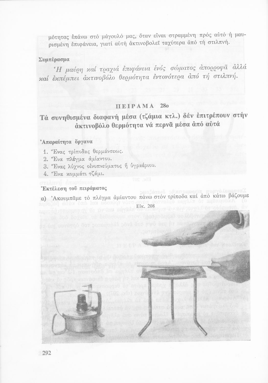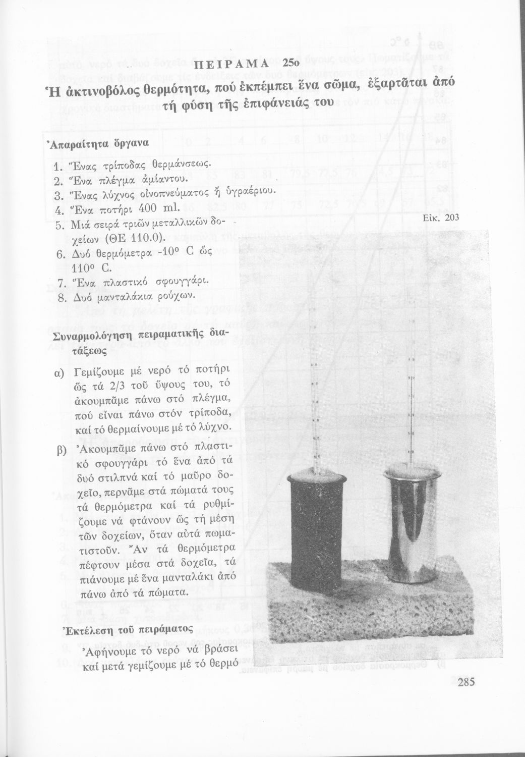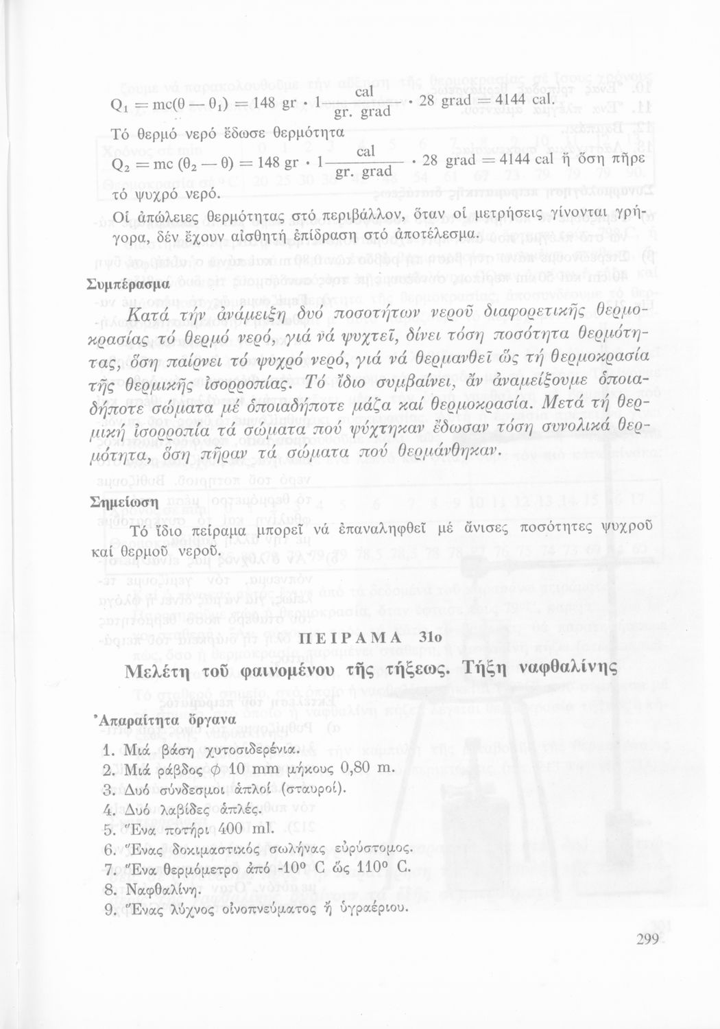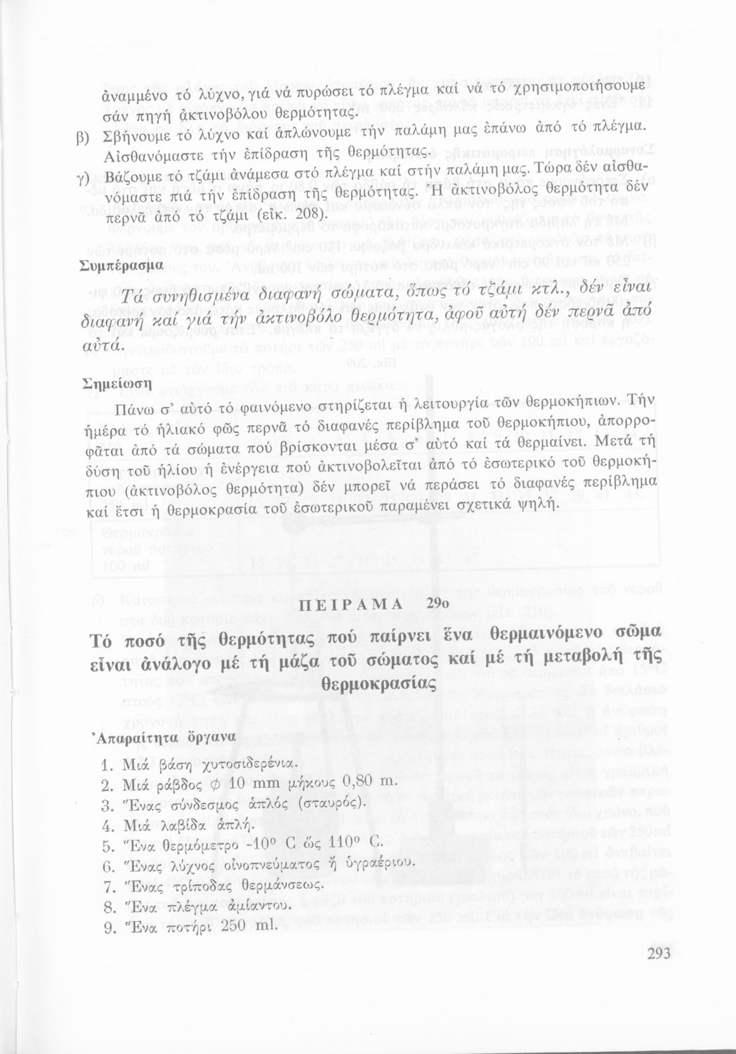 Παρουσίαση περιεχομένου: Σχολικό εγχειρίδιο Φυσικής που περιλαμβάνει πειράματα στον τομέα της μηχανικής και των κινήσεων στερεών και υγρών σωμάτων καθώς και πειράματα που μελετούν την μεταβολή των σωμάτων αυτών στις αλλαγές της θερμοκρασίας.