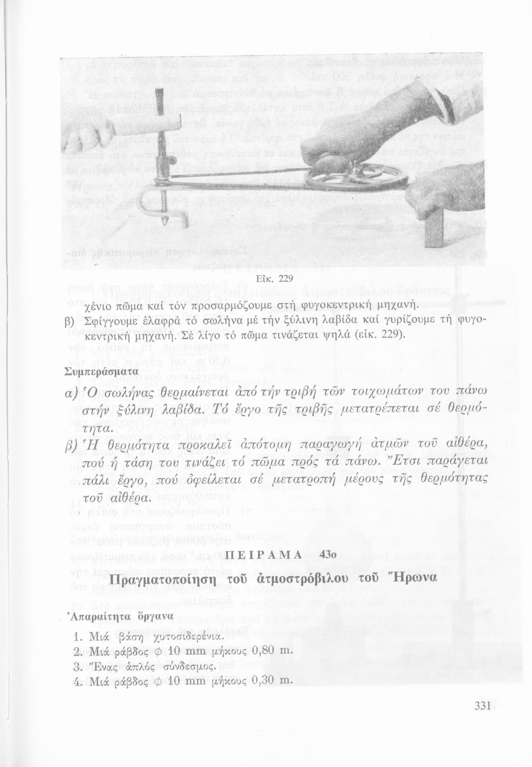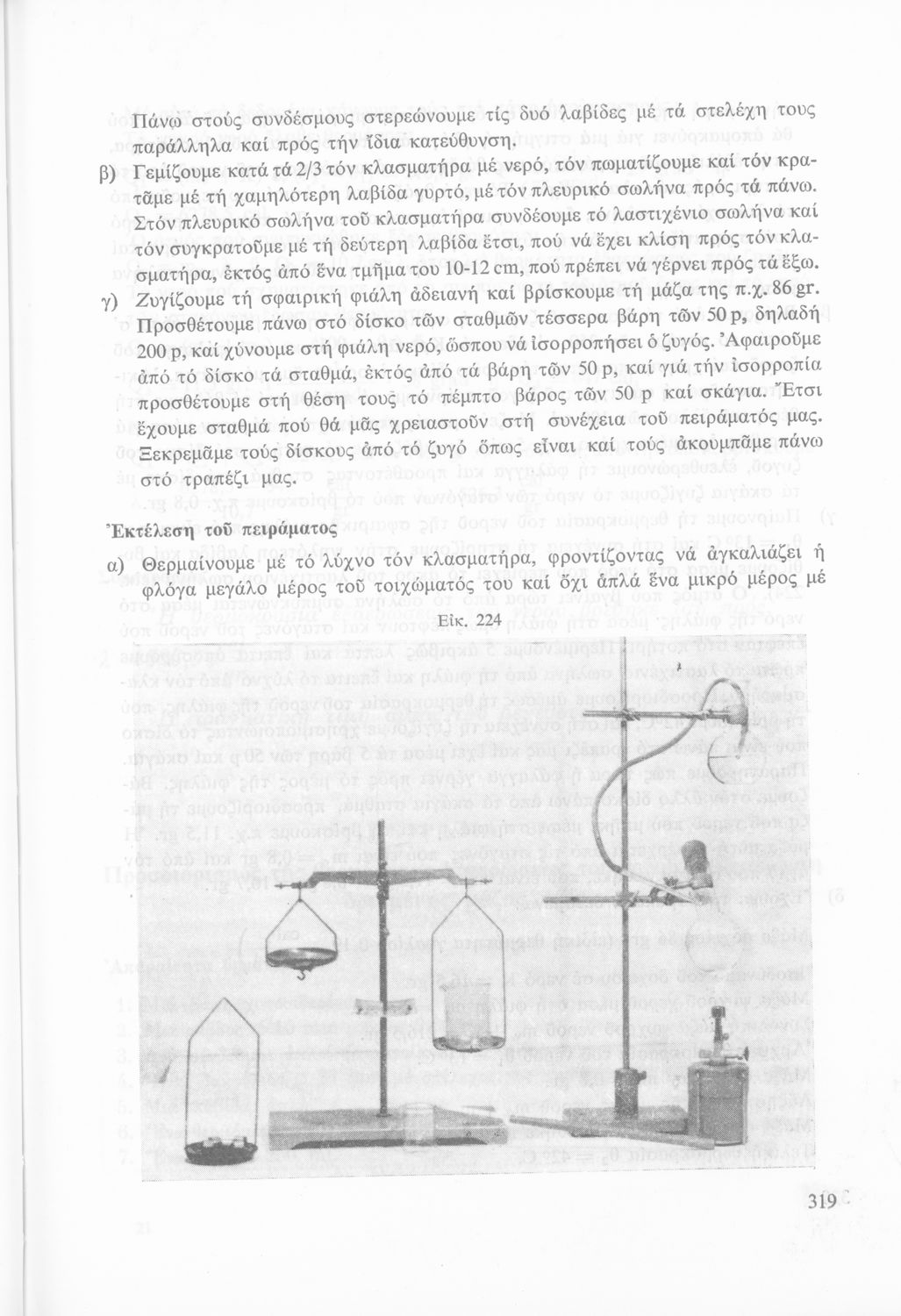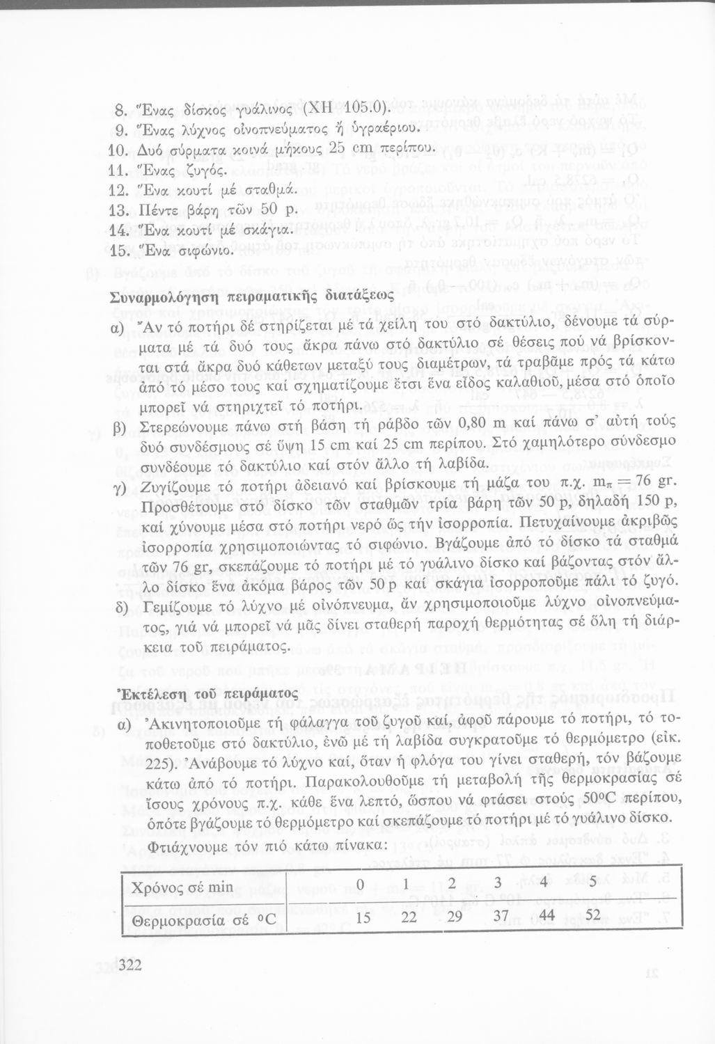 Παρουσίαση περιεχομένου: Σχολικό εγχειρίδιο Φυσικής που περιλαμβάνει πειράματα στον τομέα της μηχανικής και των κινήσεων στερεών και υγρών σωμάτων καθώς και πειράματα που μελετούν την μεταβολή των σωμάτων αυτών στις αλλαγές της θερμοκρασίας.