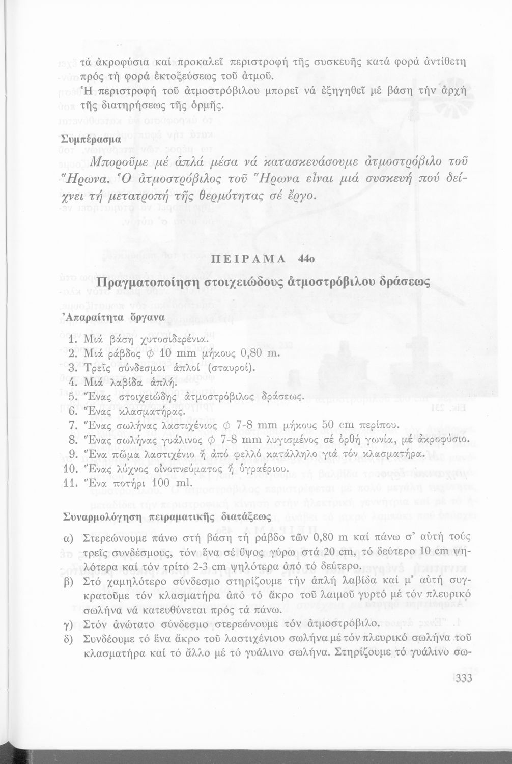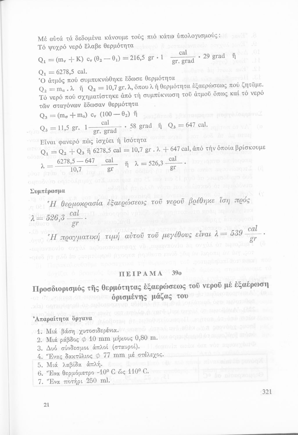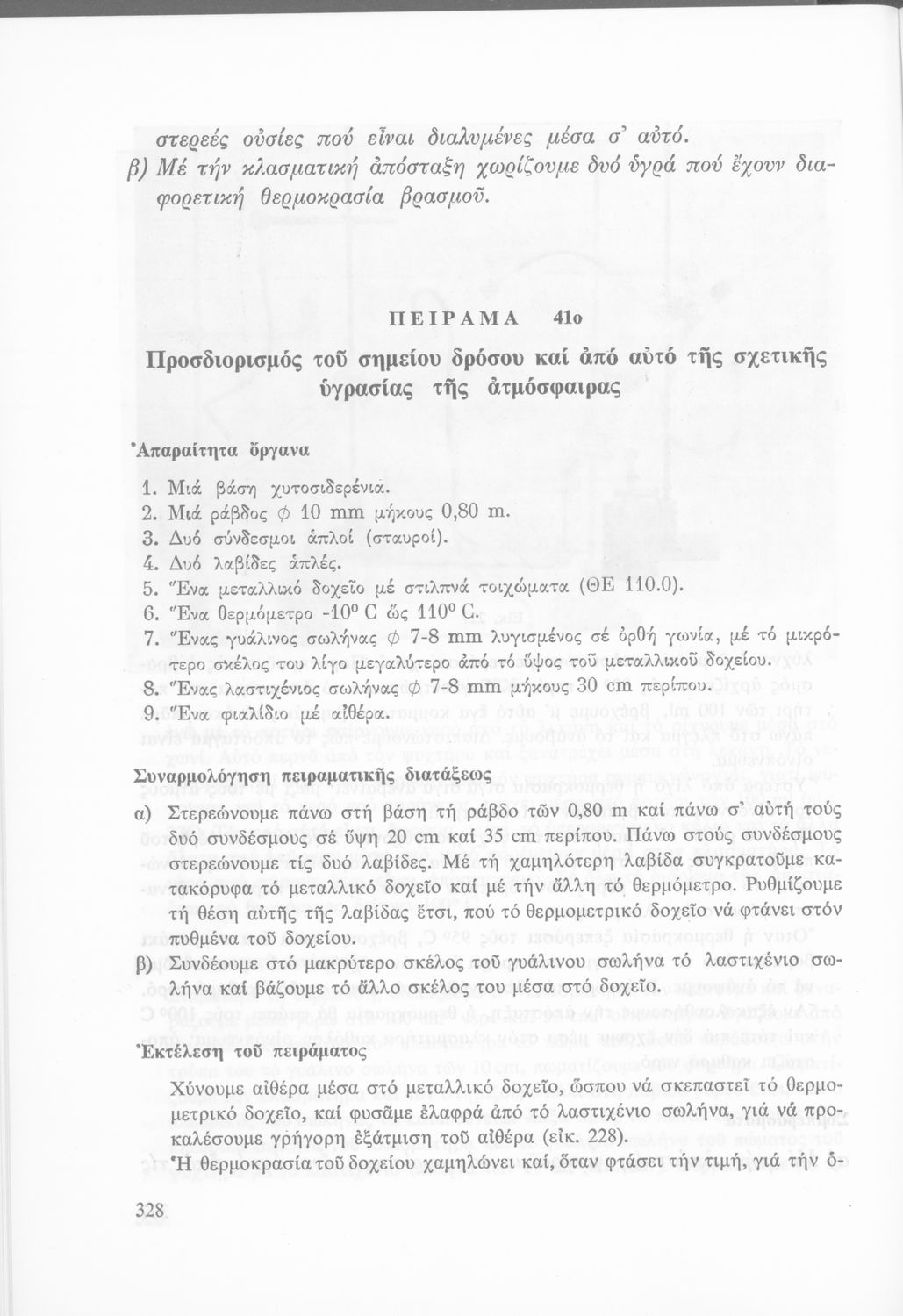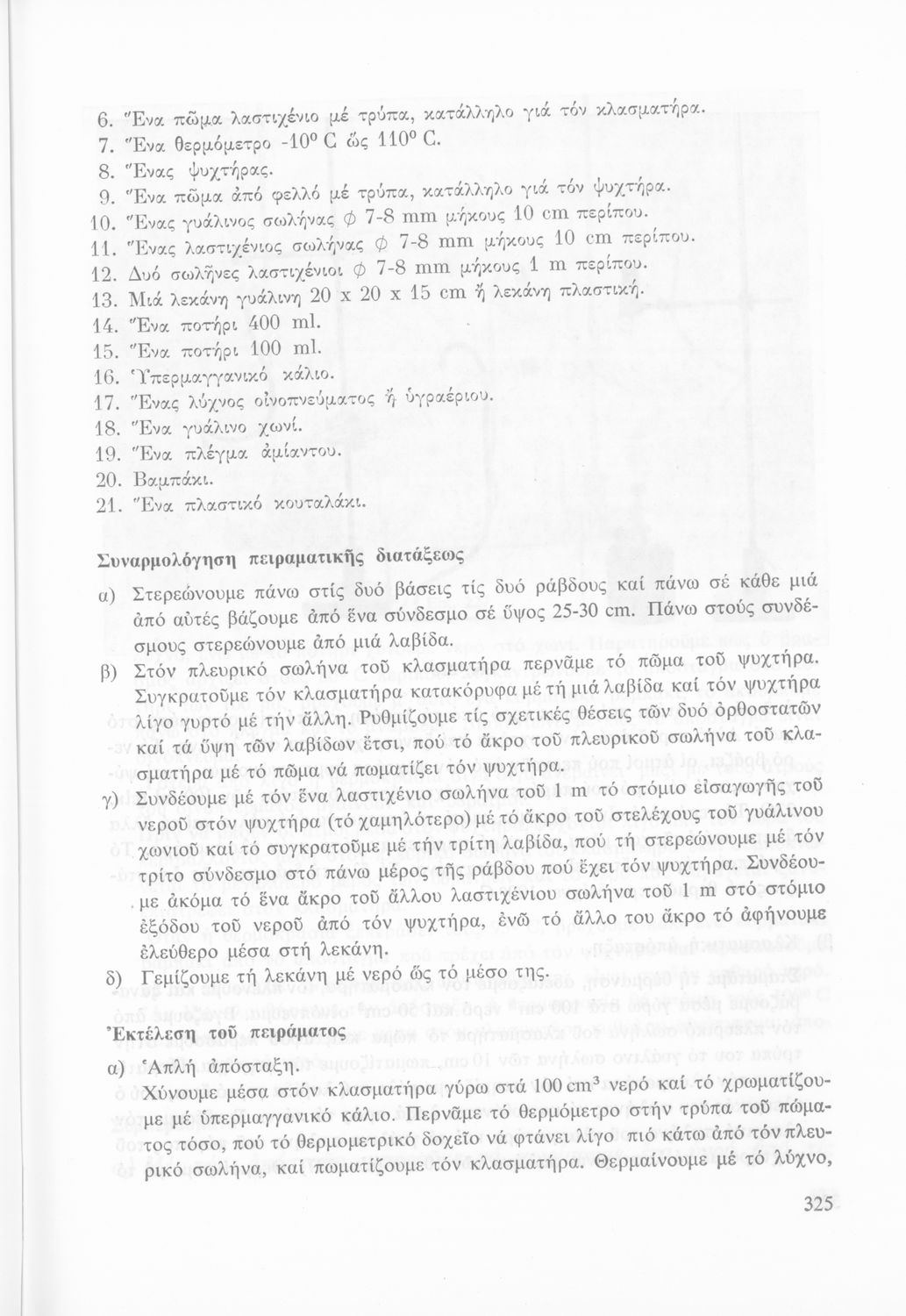 Παρουσίαση περιεχομένου: Σχολικό εγχειρίδιο Φυσικής που περιλαμβάνει πειράματα στον τομέα της μηχανικής και των κινήσεων στερεών και υγρών σωμάτων καθώς και πειράματα που μελετούν την μεταβολή των σωμάτων αυτών στις αλλαγές της θερμοκρασίας.